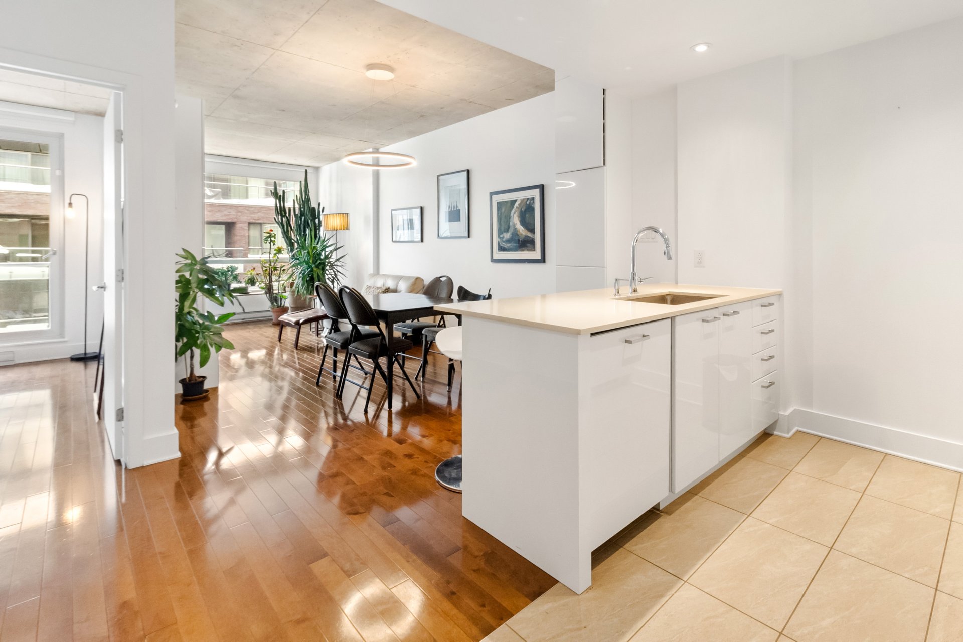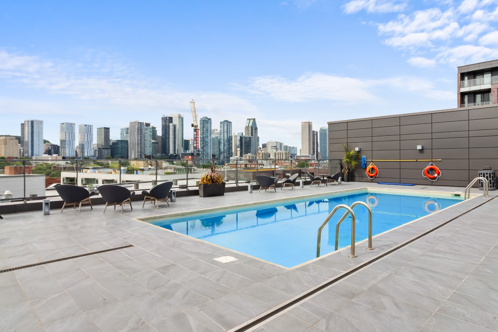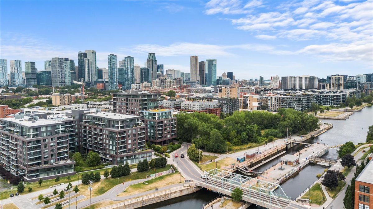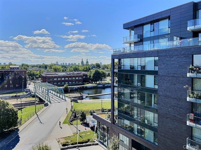 LE CANAL GRIFFINTOWN | Superbe condo au 8e étage, directement sur les berges du canal Lachine, le long de la piste cyclable, à quelques minutes du Marché Atwater, des parcs, ainsi que des restaurants et cafés prisés du quartier. Aire de vie ouverte et lumineuse. Cuisine urbaine avec îlot et comptoirs de quartz. Une chambre fermée. Rangements intégrés ajoutés. Terrasse privée avec vue sur le canal et le Pont des Seigneurs. Climatisation centrale. Rangement et garage avec borne de recharge pour voiture électrique. Espaces communs : terrasse sur le toit et piscine extérieure, piscine intérieure, salle d'exercice.