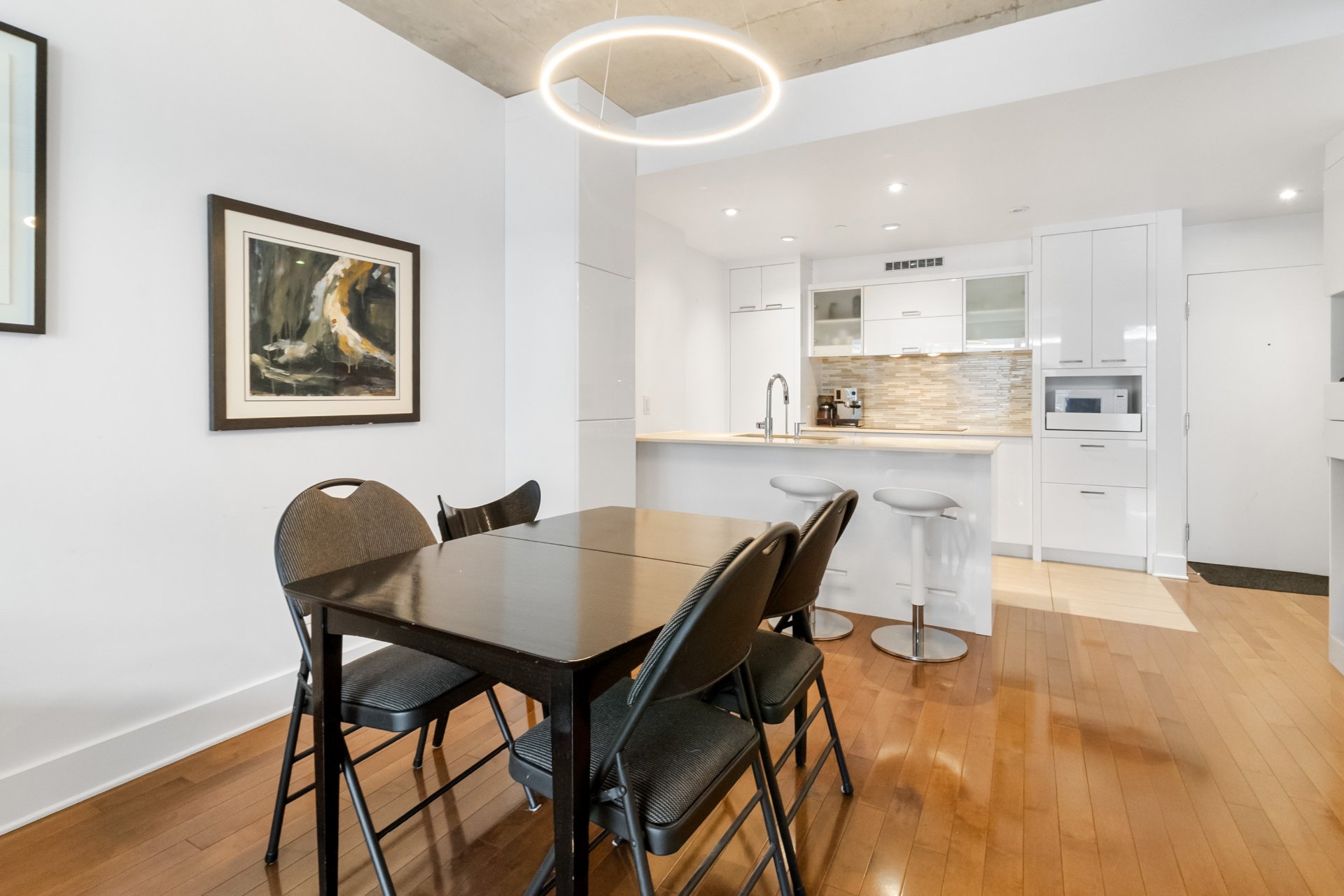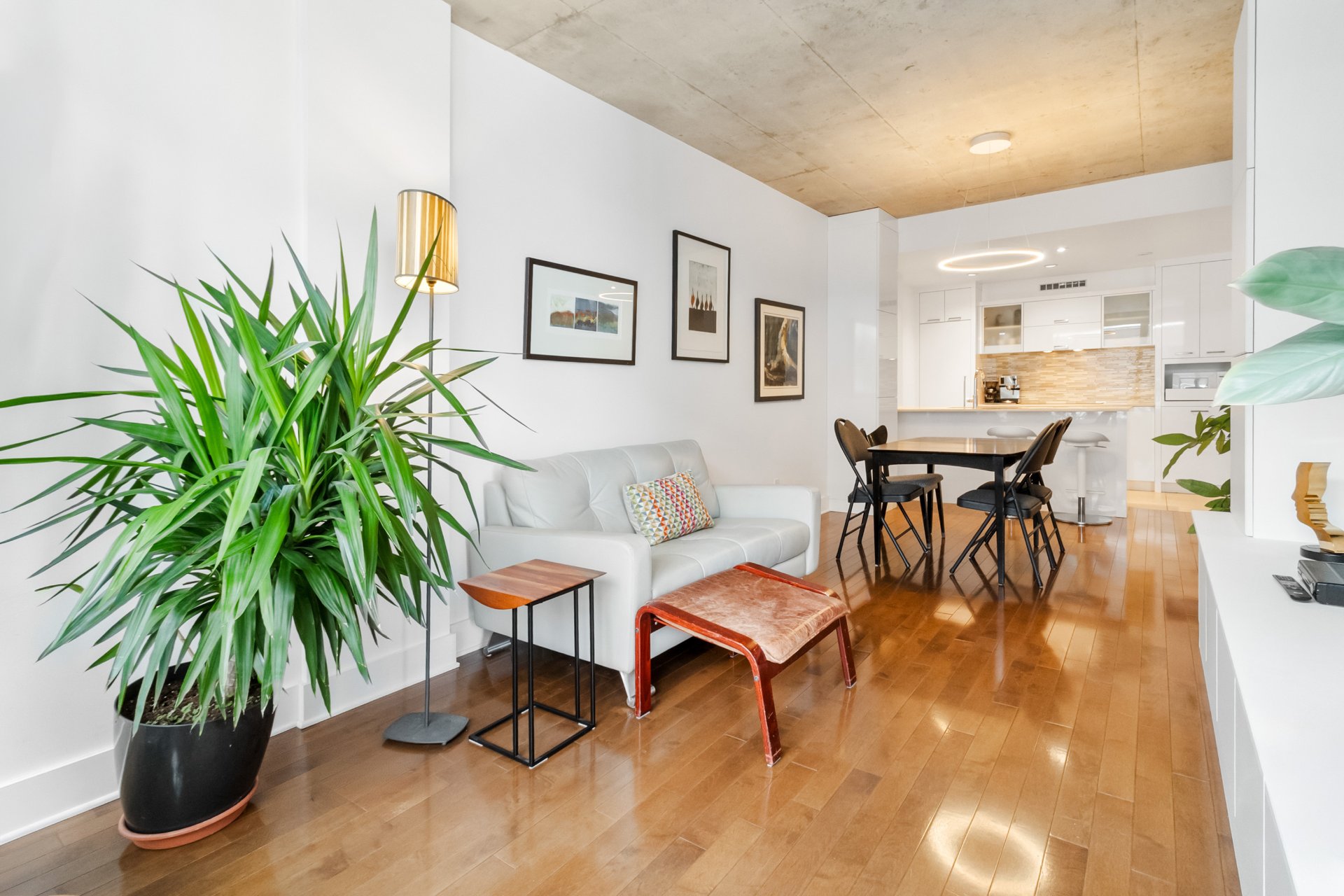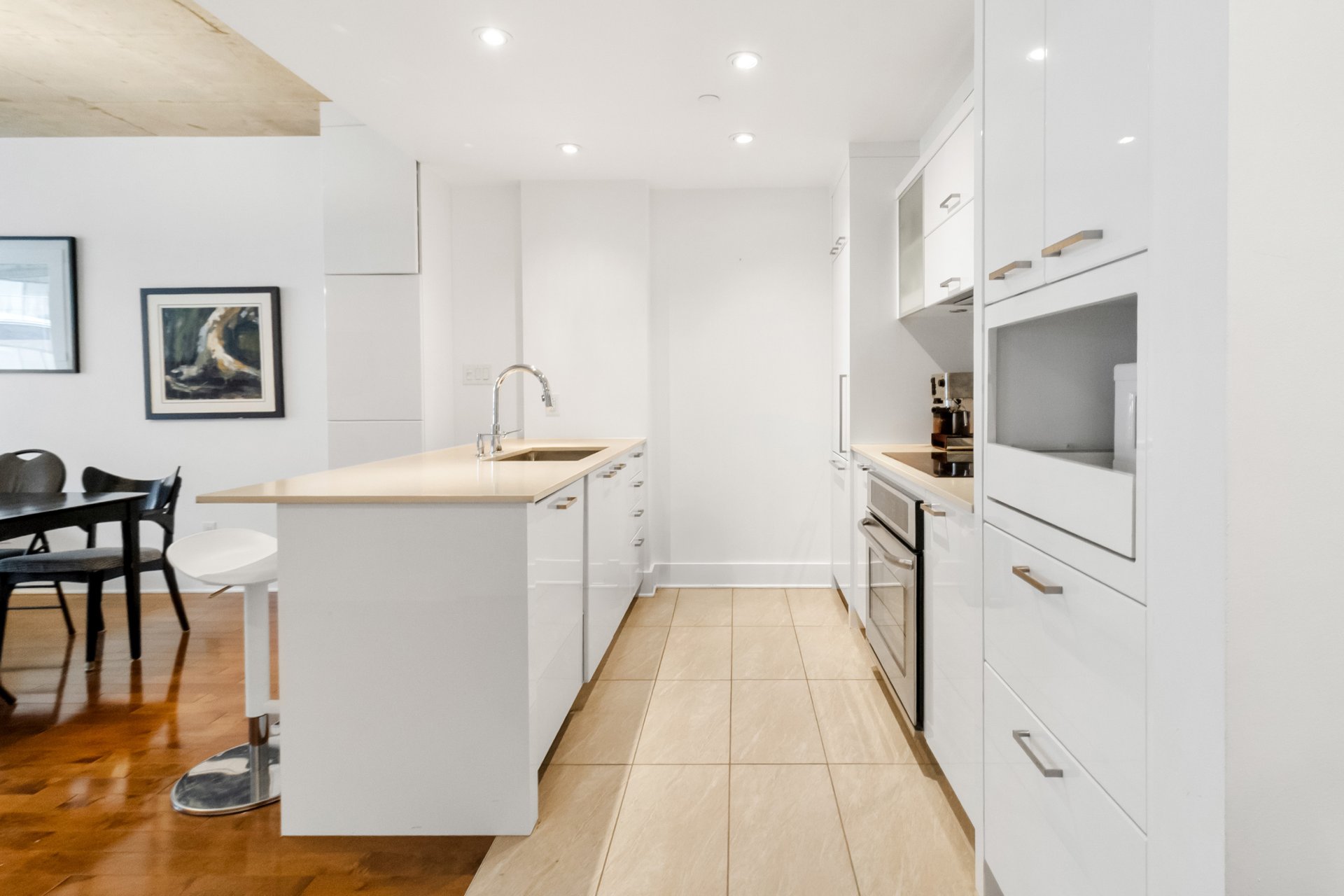 LE CANAL GRIFFINTOWN | Superbe condo au 8e étage, directement sur les berges du canal Lachine, le long de la piste cyclable, à quelques minutes du Marché Atwater, des parcs, ainsi que des restaurants et cafés prisés du quartier. Aire de vie ouverte et lumineuse. Cuisine urbaine avec îlot et comptoirs de quartz. Une chambre fermée. Rangements intégrés ajoutés. Terrasse privée avec vue sur le canal et le Pont des Seigneurs. Climatisation centrale. Rangement et garage avec borne de recharge pour voiture électrique. Espaces communs : terrasse sur le toit et piscine extérieure, piscine intérieure, salle d'exercice.