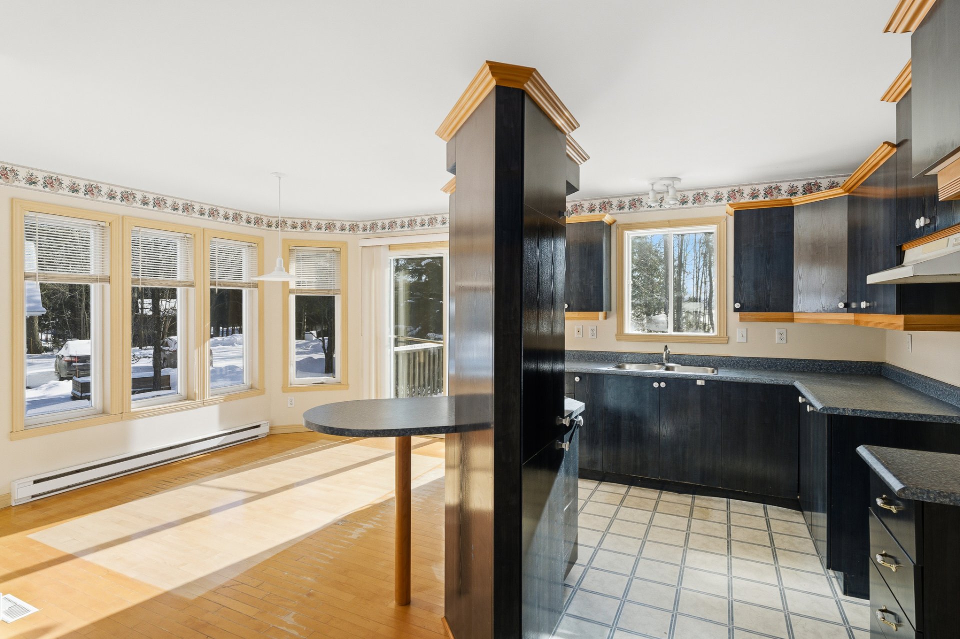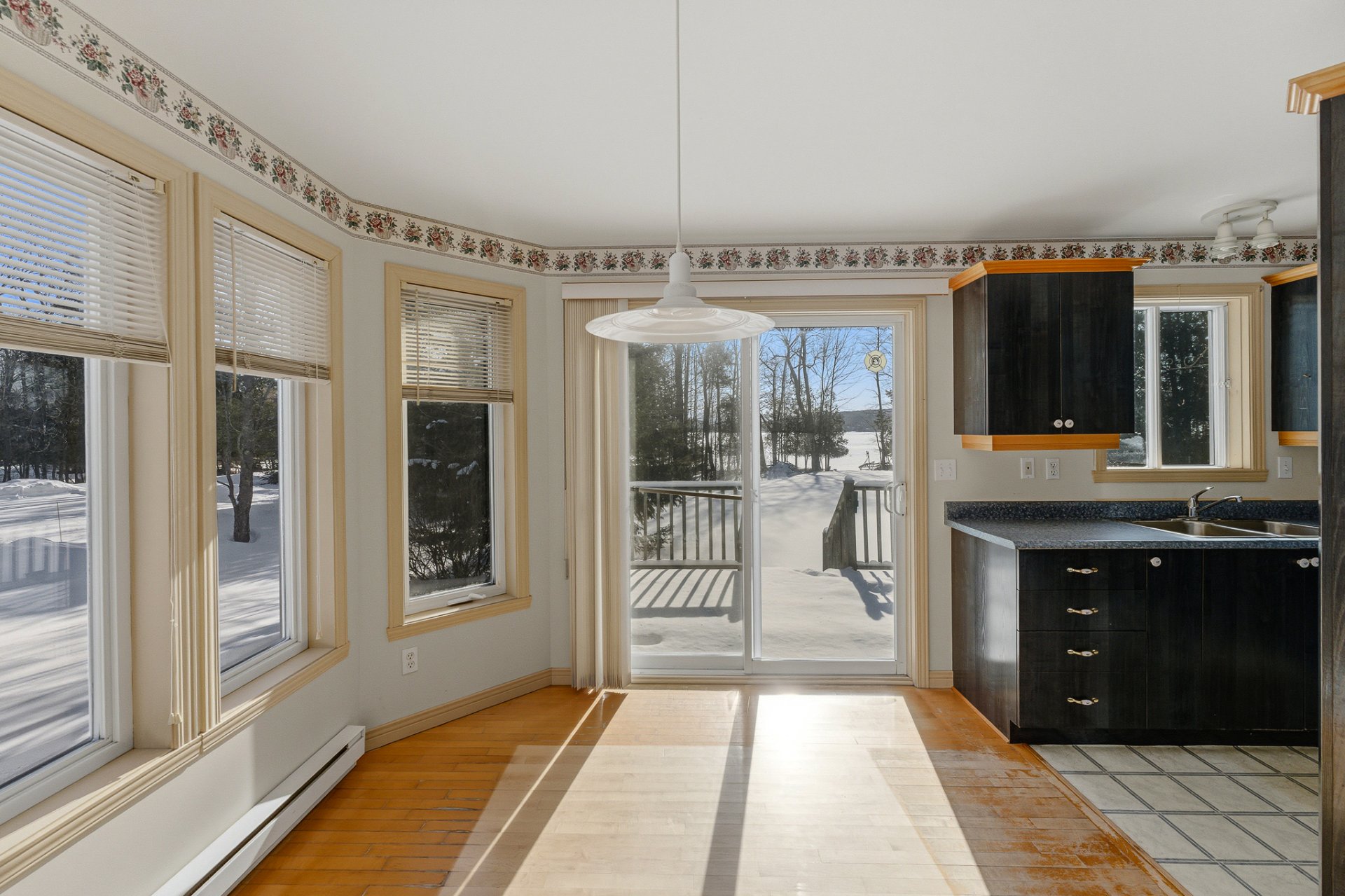L'implantation actuelle permet déjà de profiter pleinement du site. La maison, construite en 2000 et bien entretenue, propose une configuration à aire ouverte où la fenestration crée un dialogue naturel entre l'intérieur et le lac. Les espaces de vie sont lumineux, fonctionnels et invitent à la contemplation, tandis que les deux chambres à coucher offrent confort et simplicité.