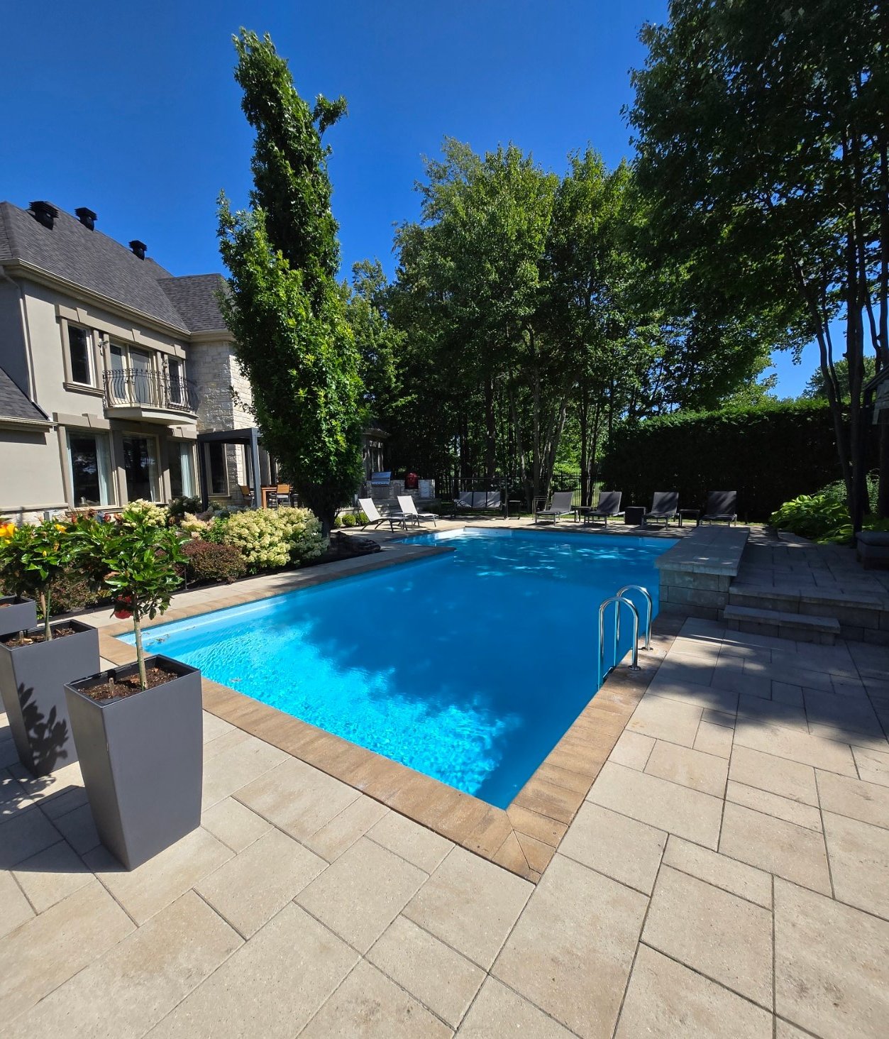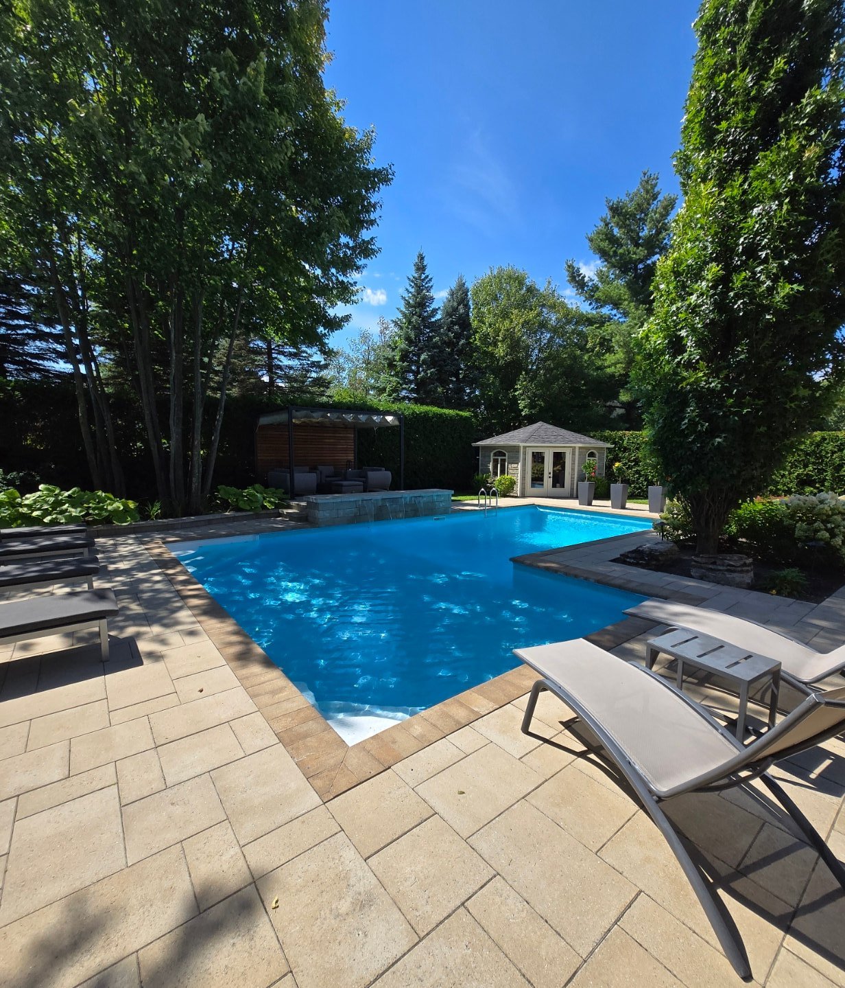 - Grande piscine creusée au sel avec ensemble de chutes d'eau.