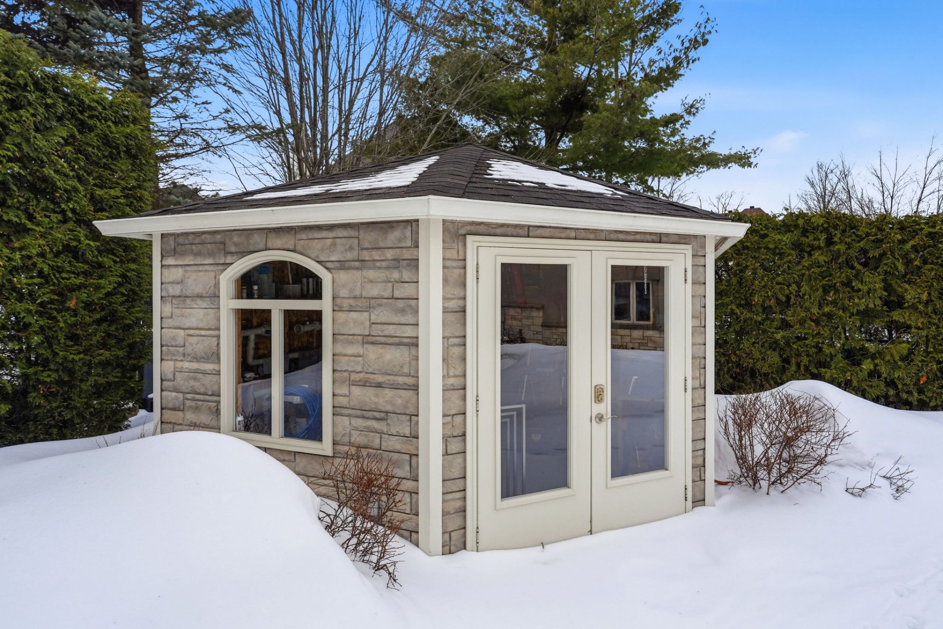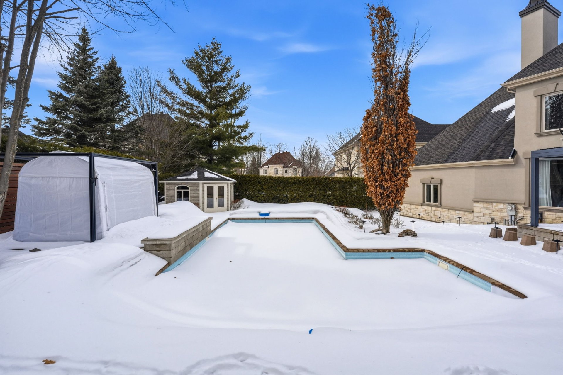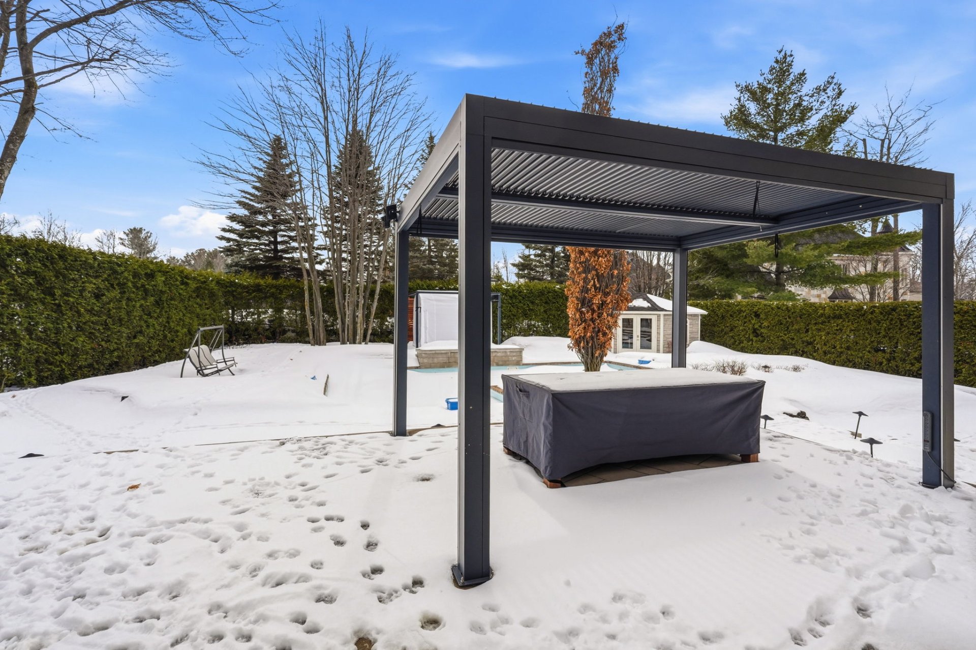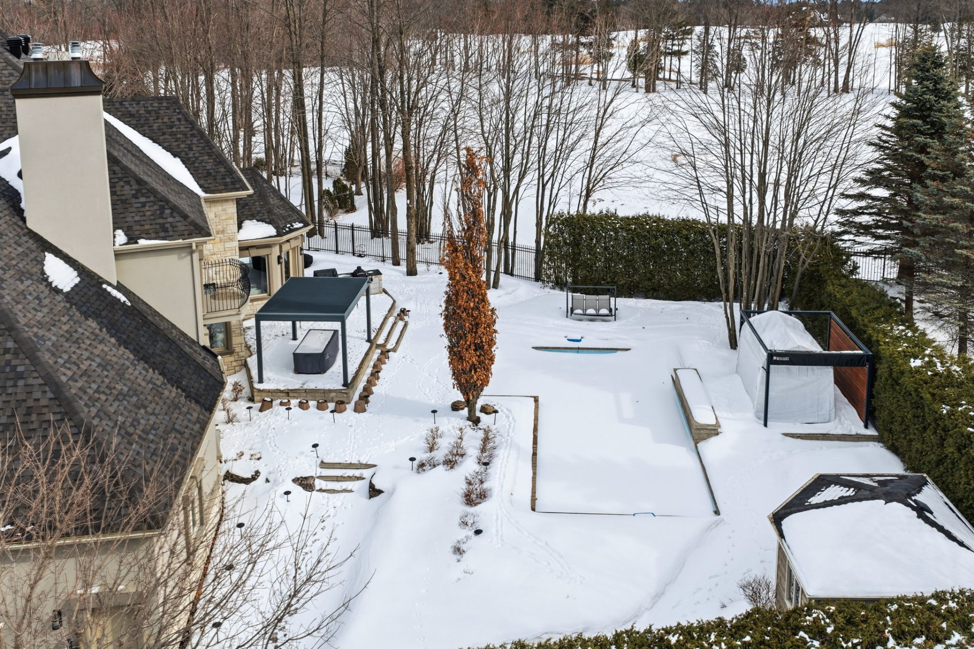 - Rideaux et stores, Luminaires, Frigo et congélateur, Cuisinière, Laveuse-sécheuse, Fauteuils cinéma maison, Équipement audio-vidéo cinéma maison, Étagère en acier dans la salle de rangement, Modules armoires en acier dans le garage, Étagères en acier sur la mézanine, Accessoires complet de piscine, Pergolas, BBQ encastré et Komado.