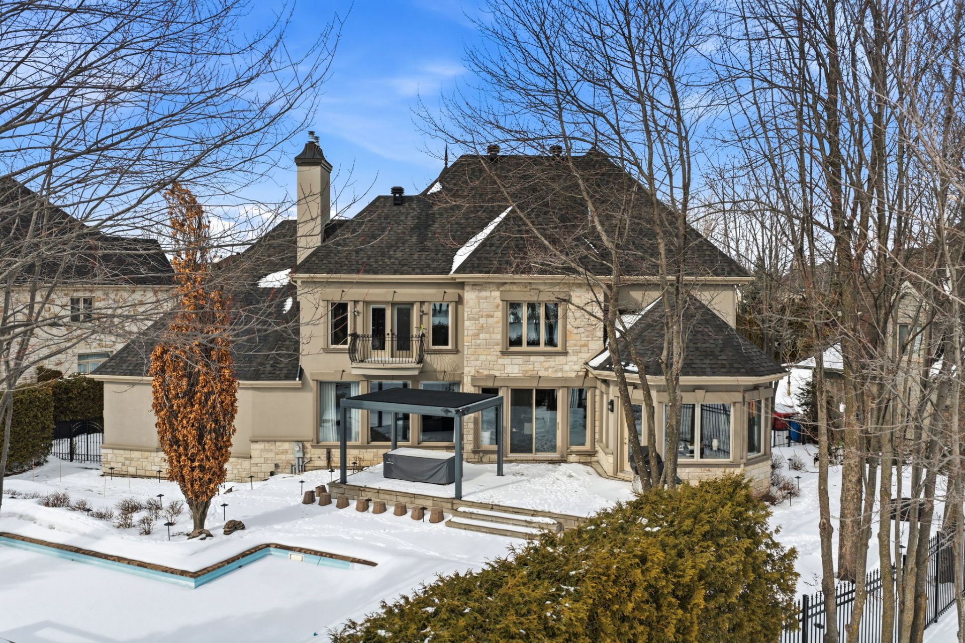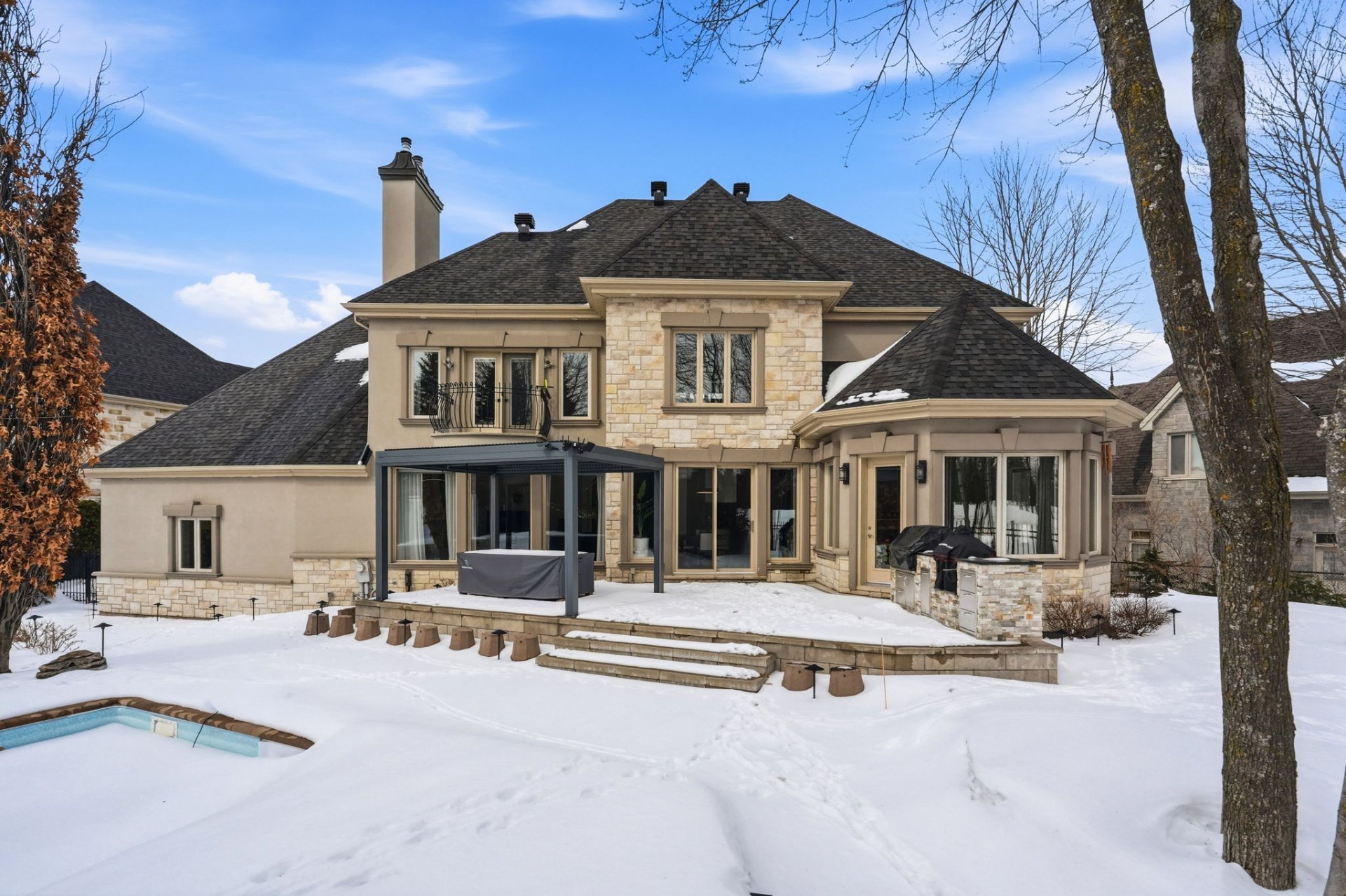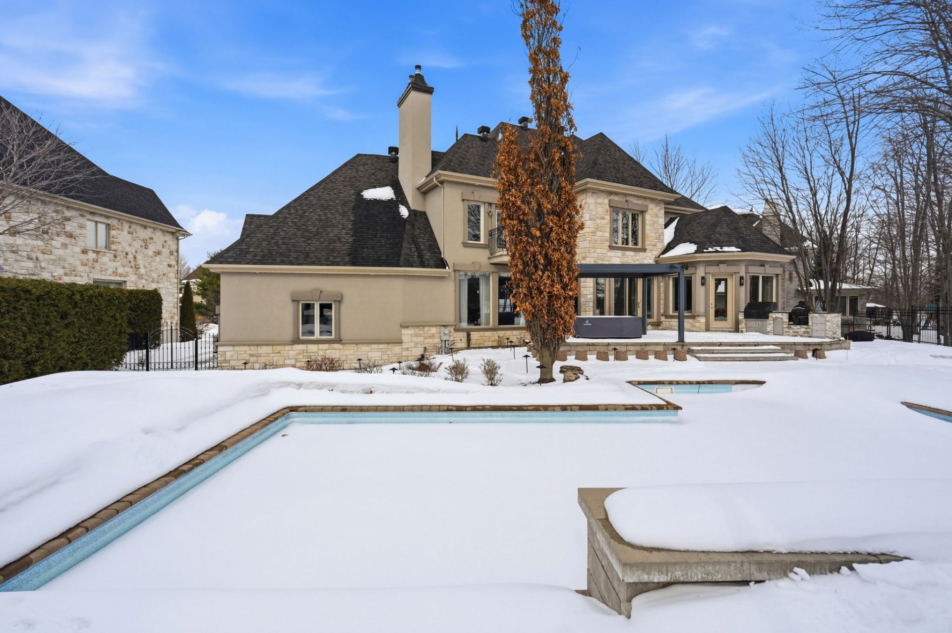 Propriété exceptionnelle sur une des rues les plus recherchées adossée au prestigieux golfe offrant une qualité de vie inégalé. Maison élégante et luxueuse ayant subi de nombreuses rénovations, se démarquant par son imposante façade en pierre, un terrain spectaculaire, garage pouvant accueillir jusqu'à 4 voitures, une fenestration abondante, ainsi que des espaces de vies bien réparties idéal pour les réceptions et la vie en famille. Finitions haut de gamme, 3 salles de bains complètes attenantes à l'étage des chambres, immense cuisine, piscine creusée, cuisine extérieur, jardin paysagé bordé de haies matures. Coup de coeur assuré!