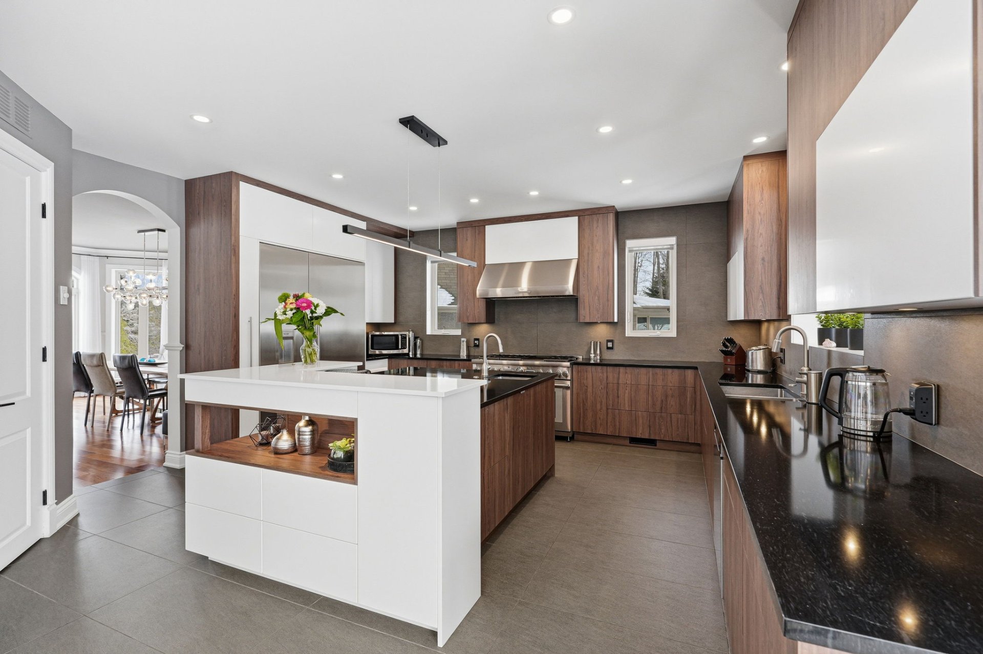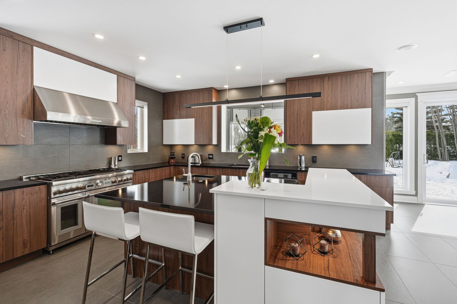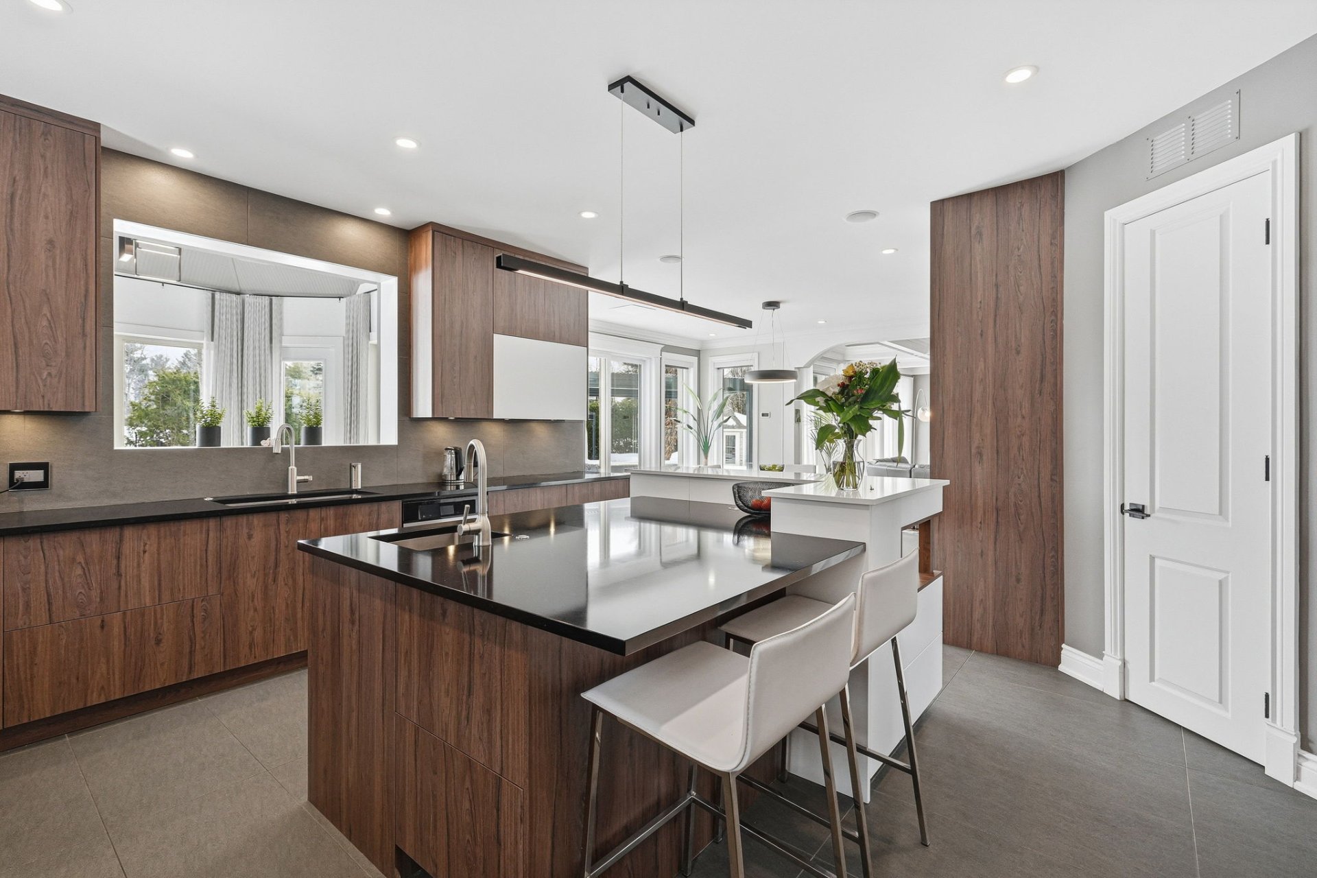 - Magnifique cuisine haut de gamme avec un immense îlot central muni d'un lavabo, comptoirs en Quartz, coin bar, et beaucoup de rangement.
