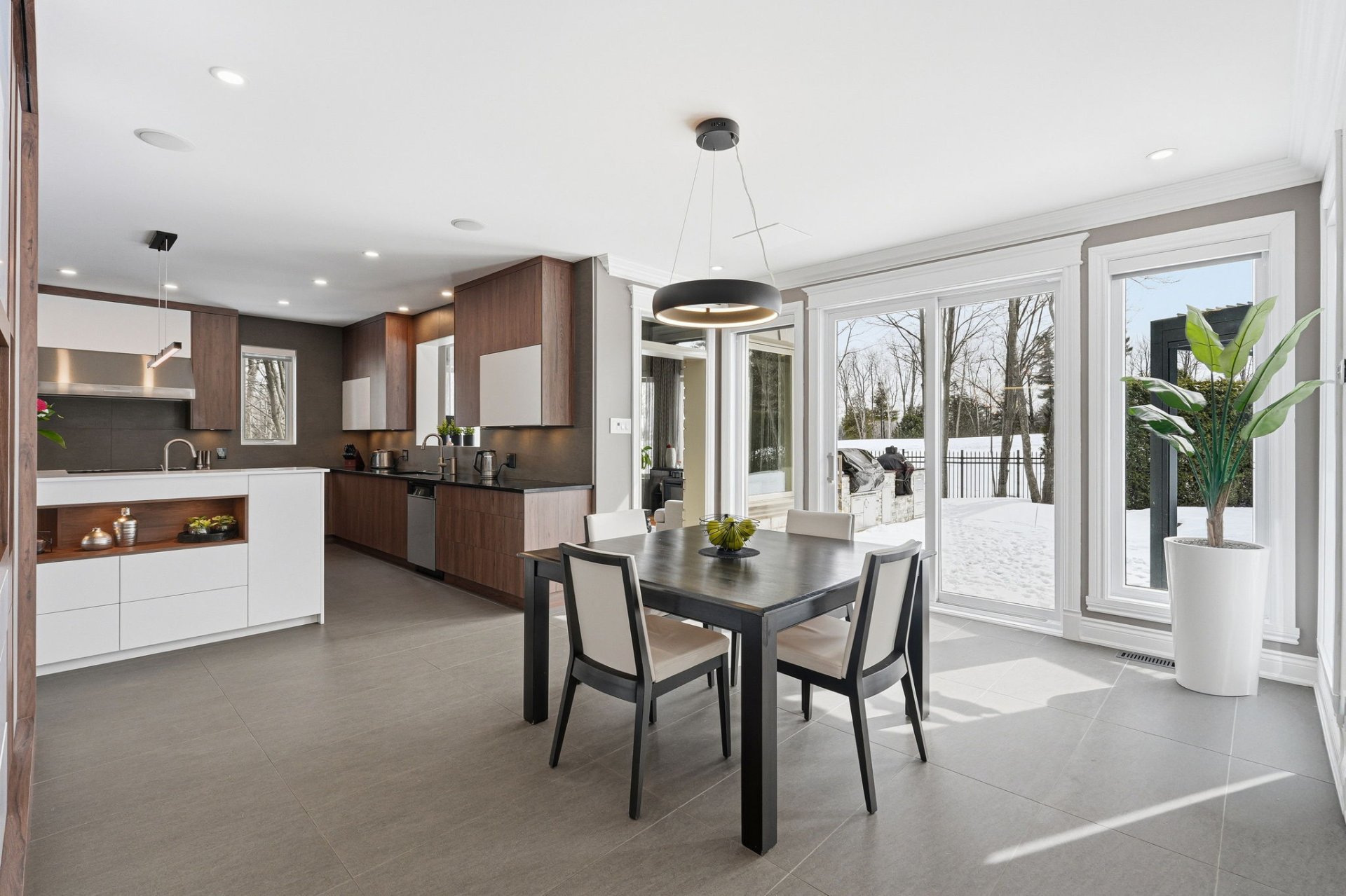 - Coin repas attenant à la cuisine avec porte coulissante donnant sur la cour arrière.