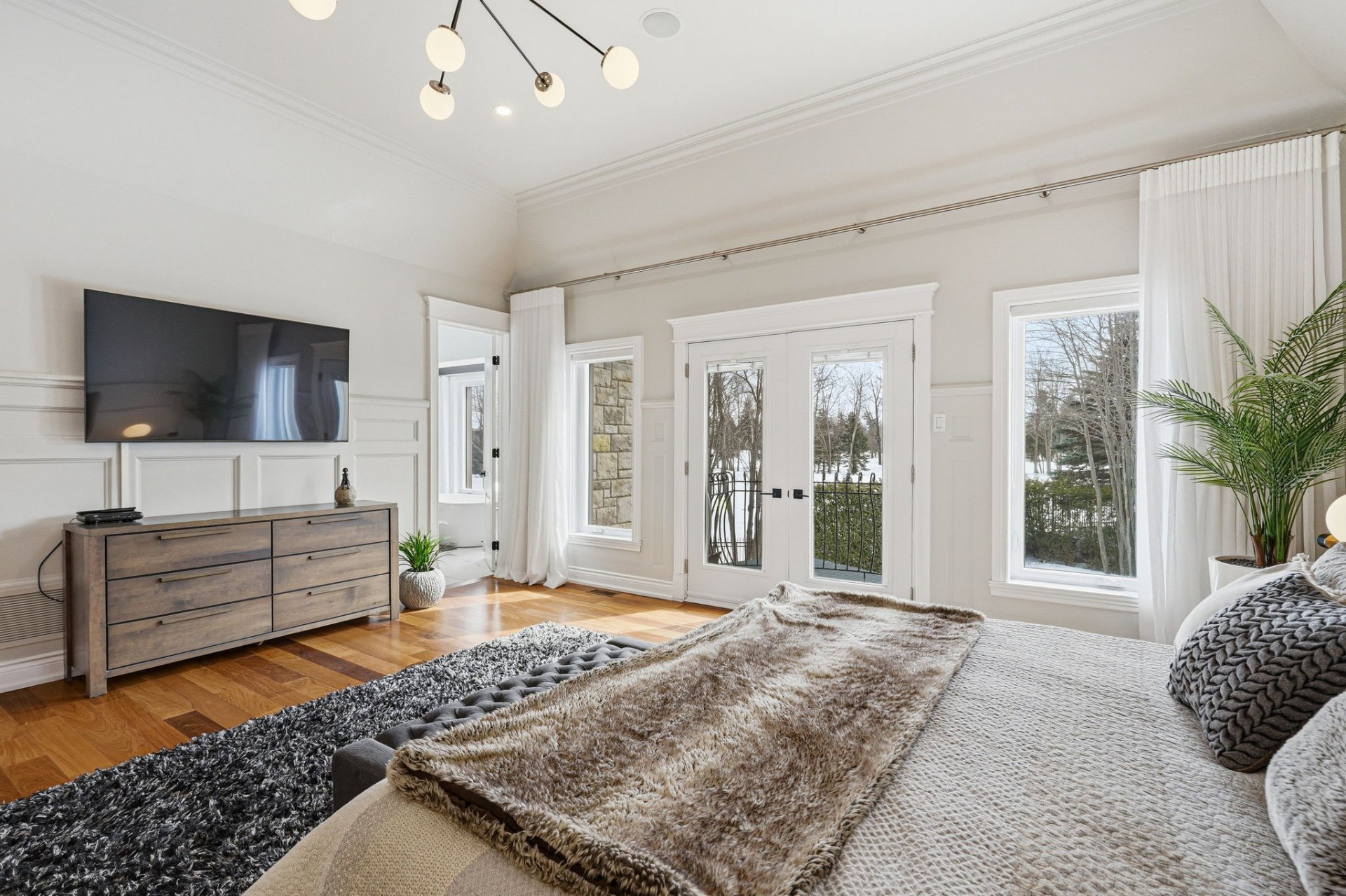 -Somptueuse et grande suite des maîtres avec plafonds cathédrales et portes françaises menant à un balcon idéalement orienté dont la vue est à couper le souffle.