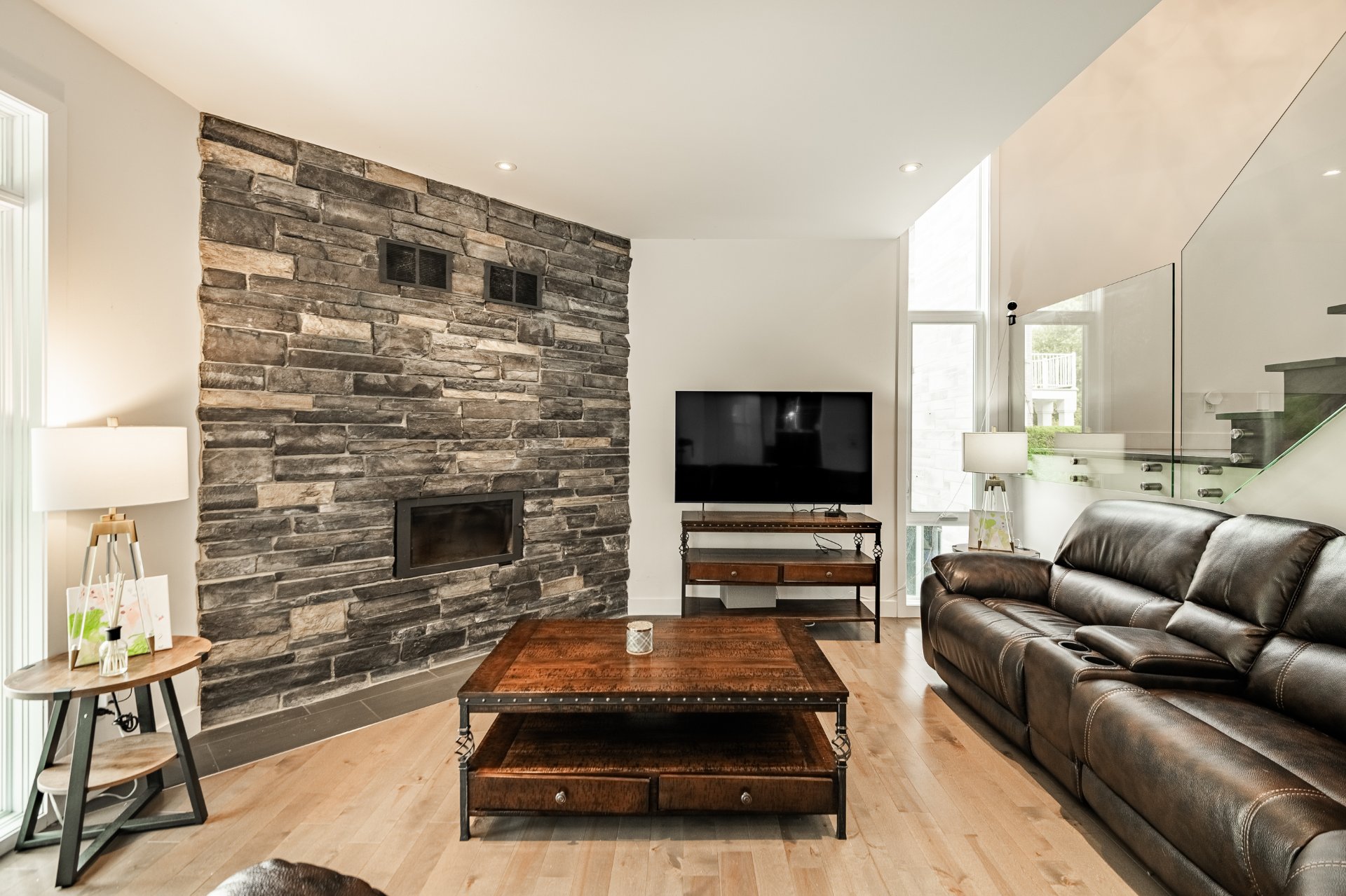 -Salon lumineux avec poêle au bois