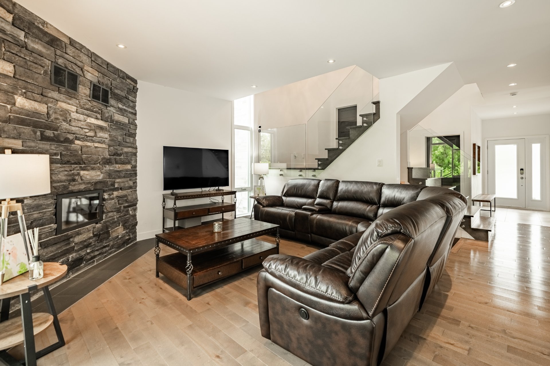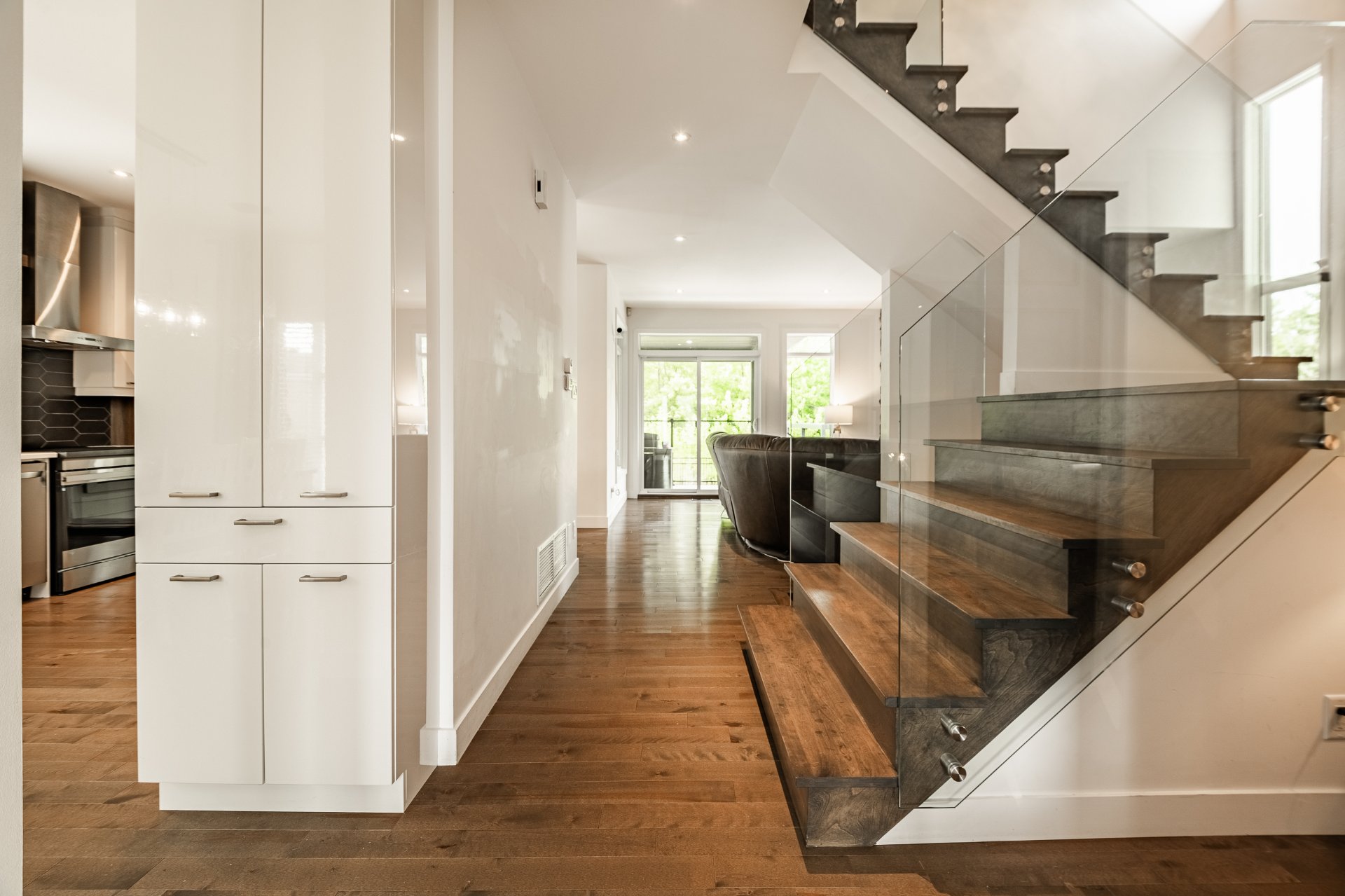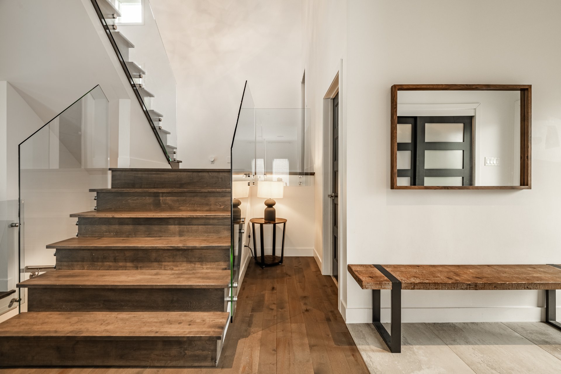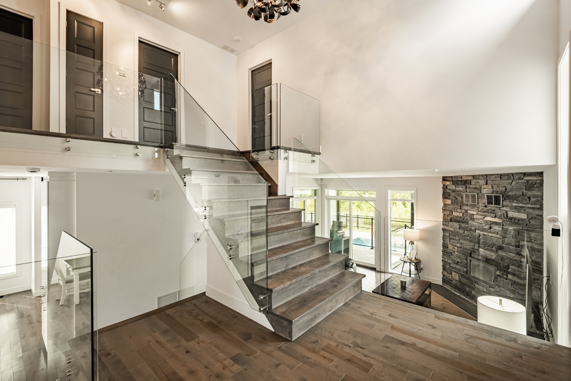 -Escalier central avec rampe en verre
