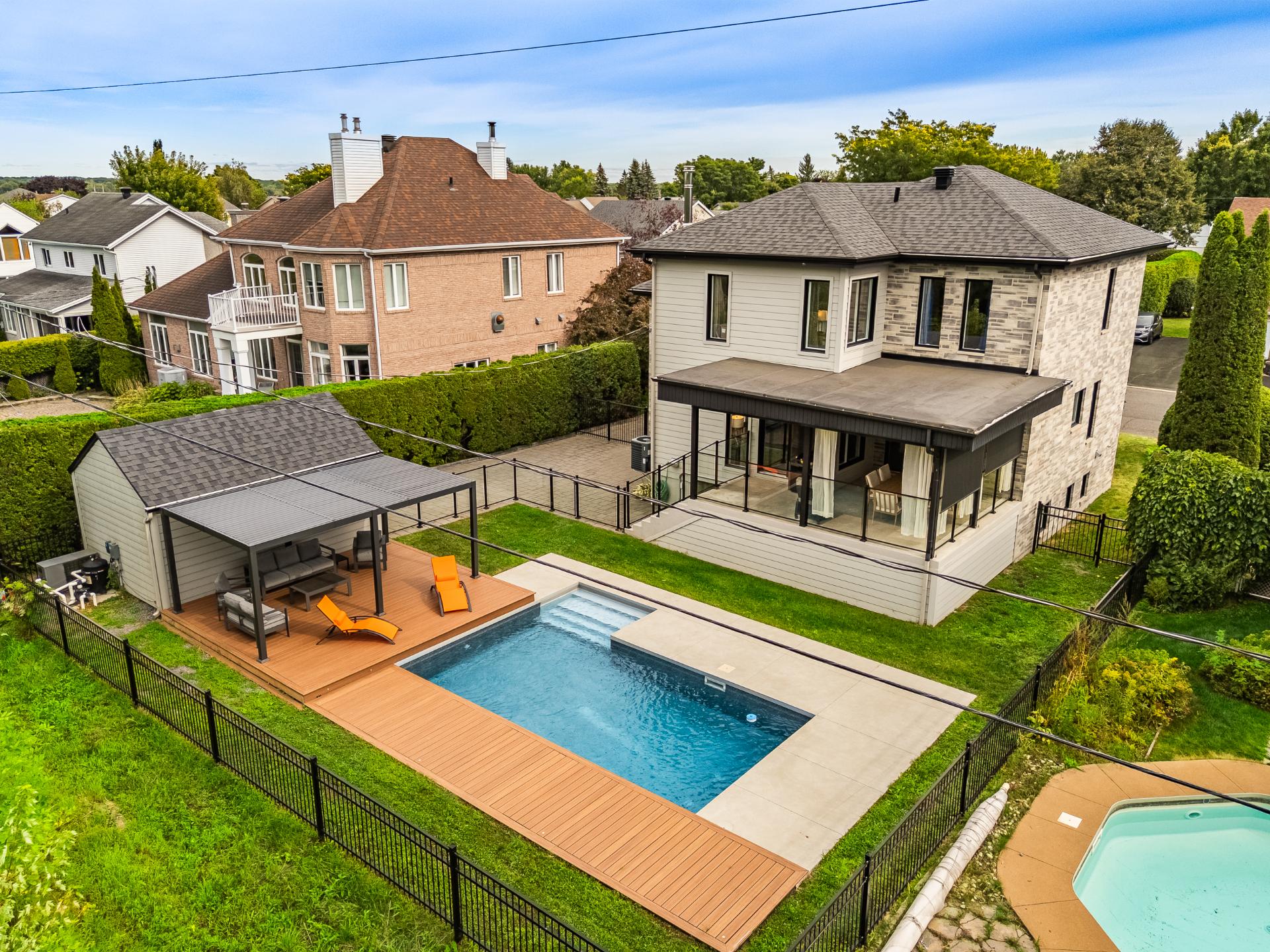Élégante propriété à Chambly, situé à quelques pas du bassin. Construite en 2015, elle offre 6 chambres, dont 4 à l'étage, 3 salles de bain et 1 salle d'eau. L'aile parentale, aménagée sur un niveau distinct, propose une salle de bain privée et une intimité appréciable. La cuisine haut de gamme séduit par ses comptoirs en quartz et ses armoires pleine hauteur. L'escalier central avec rampe en verre ajoute une touche de modernité. Le sous-sol est entièrement aménagé avec dalle chauffante. Cour intime sans voisin arrière, piscine creusée chauffée, terrasse couverte et double garage. Un parfait équilibre entre luxe, confort et tranquillité.