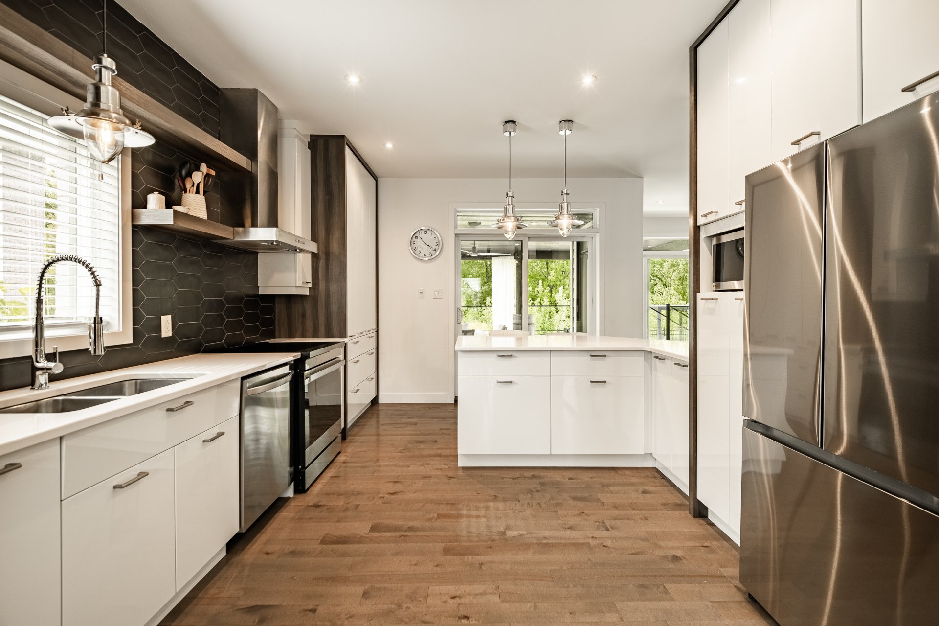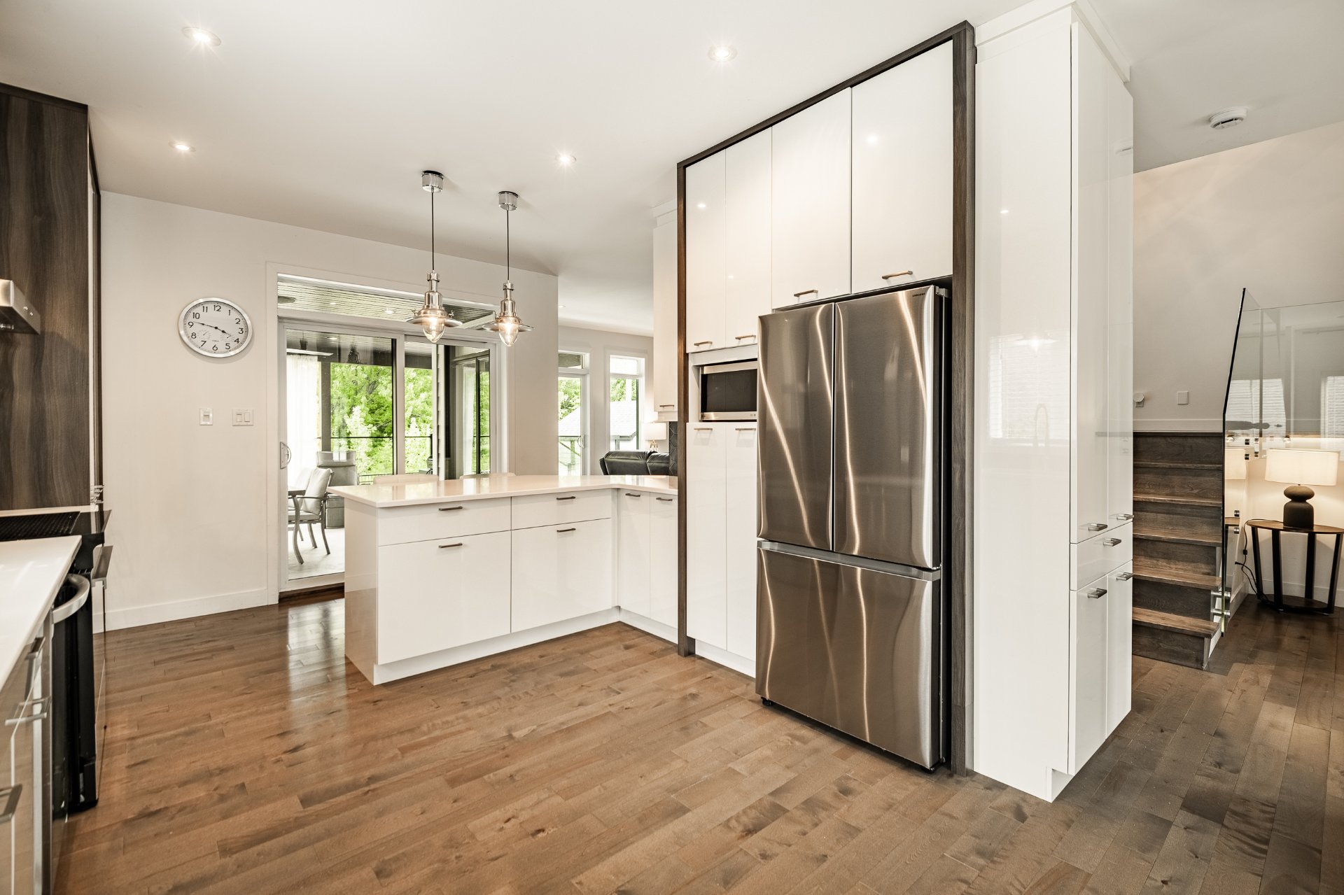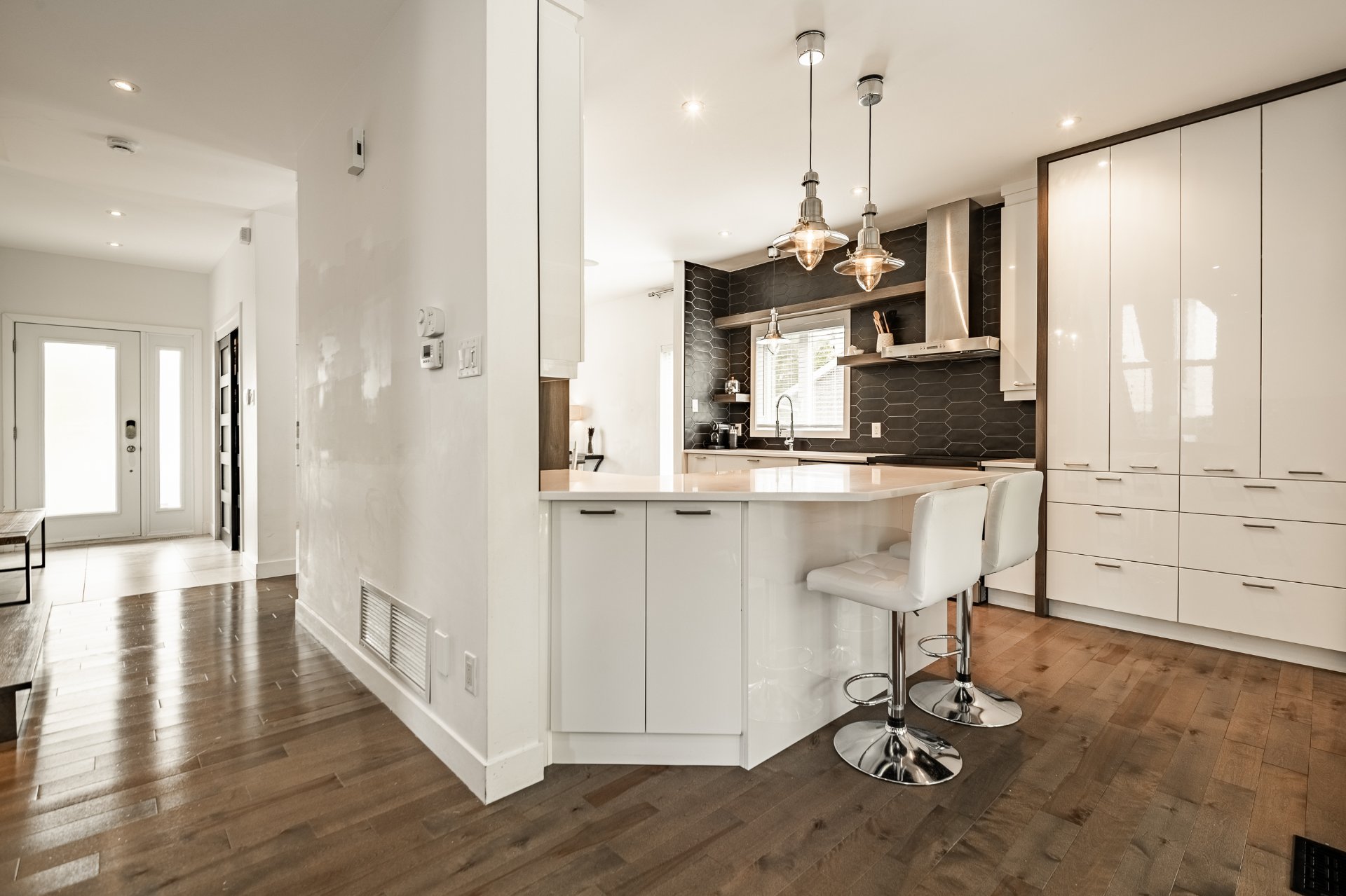 -Cuisine haut de gamme avec comptoirs en quartz, armoires pleine hauteur et comptoir-lunch