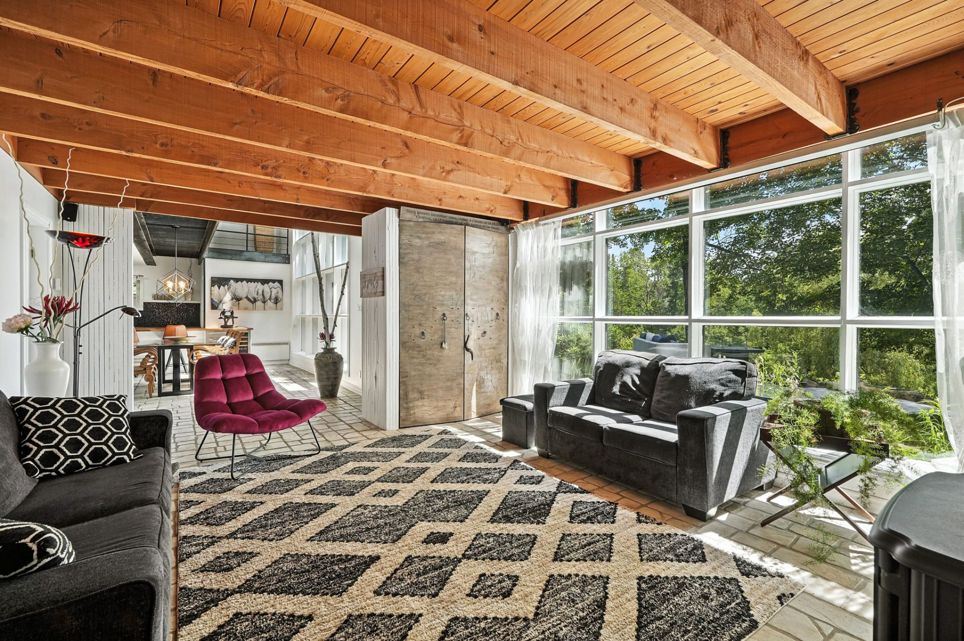 À l'intérieur, l'architecture moderne et épurée séduit par ses fenestrations pleine hauteur qui inondent les espaces de lumière naturelle, et par le choix de matériaux nobles. Avec plus de 4 000 pi² habitables, chaque détail a été conçu pour marier confort, élégance et fonctionnalité.