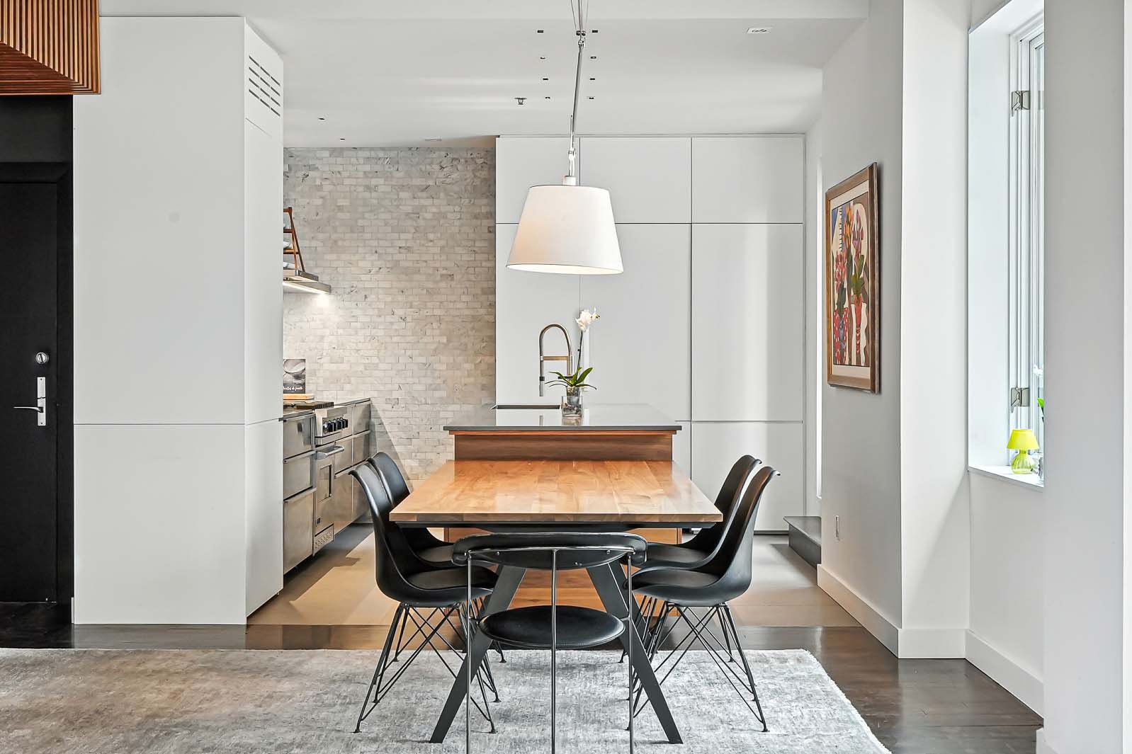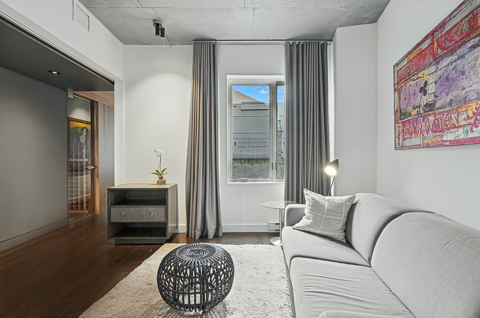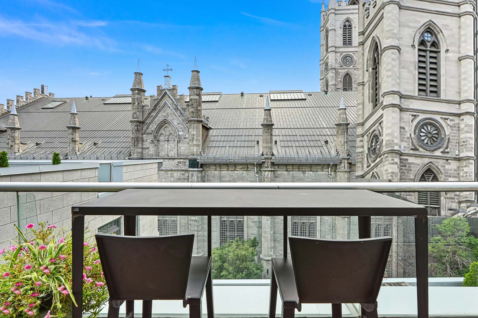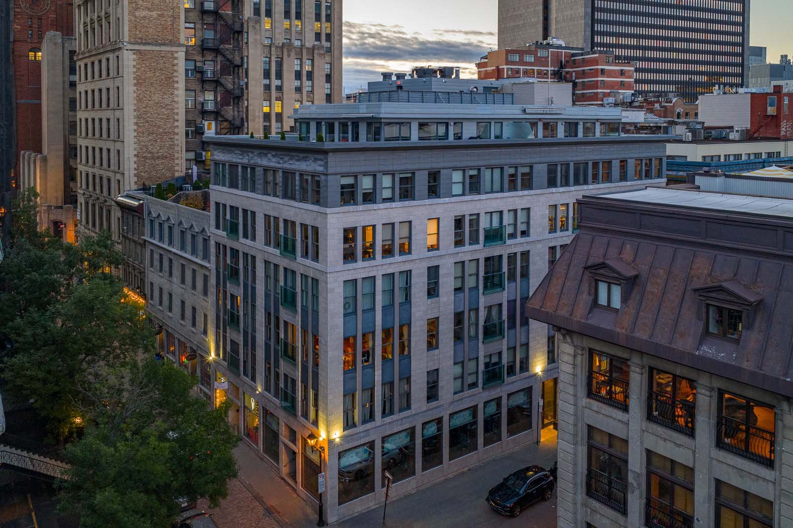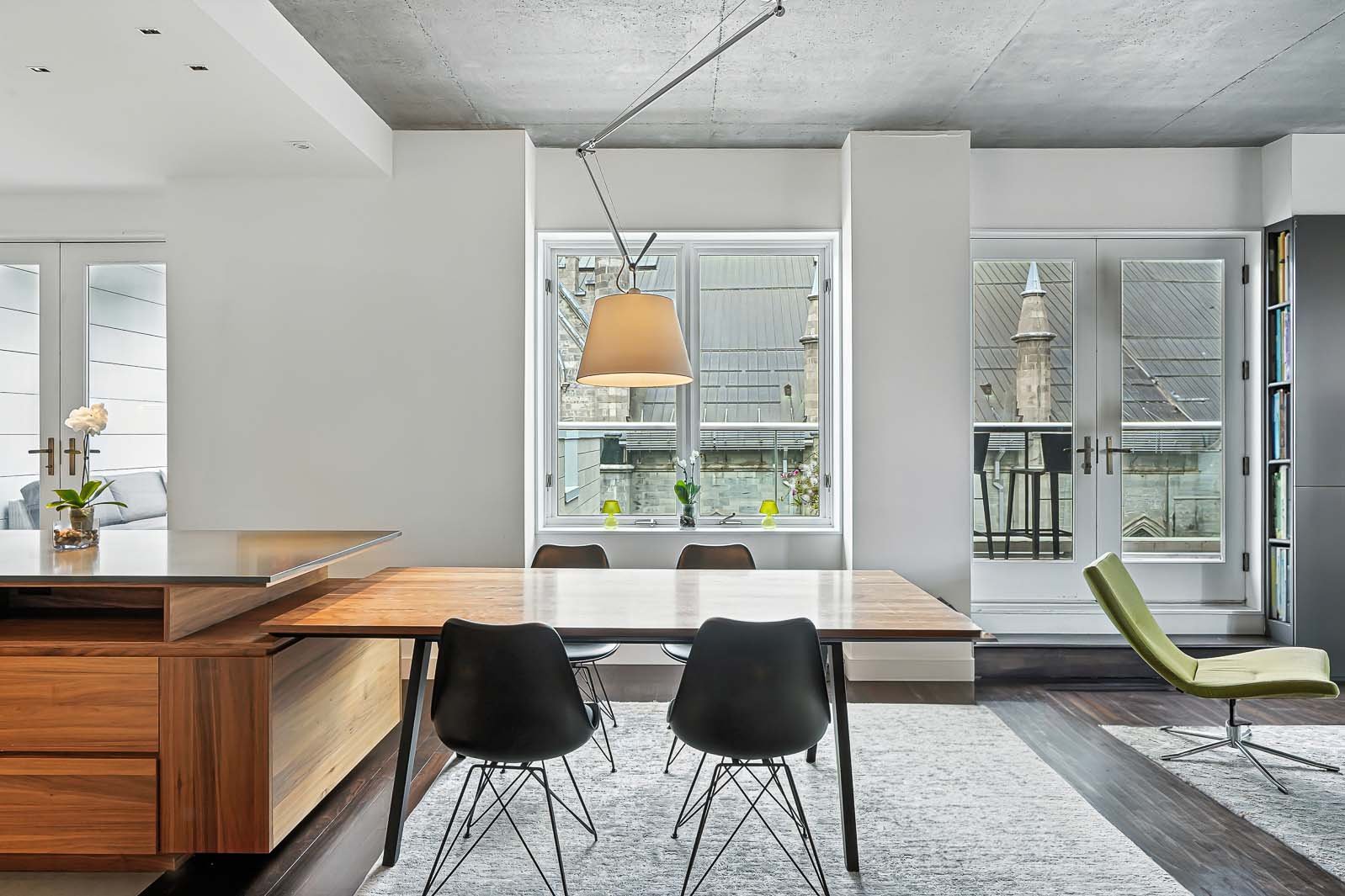 Deux garages & deux terrasses privées pour une vie urbaine sans compromis! Unité de coin inondée de lumière, offrant des vues féériques sur les toits emblématiques de la basilique Notre-Dame. Rénovation contemporaine d'exception signée Nathalie Dionne, avec éclairage architectural de qualité muséale, cuisine (gazinière inox !) et salles de bains aux finitions irréprochables. Plan idéal avec suite principale à l'écart des réceptions, ambiance feutrée façon hôtel-boutique. Walk-in cellier (car il y aura des réceptions, évidemment!). Le Vieux-Montréal à son apogée.