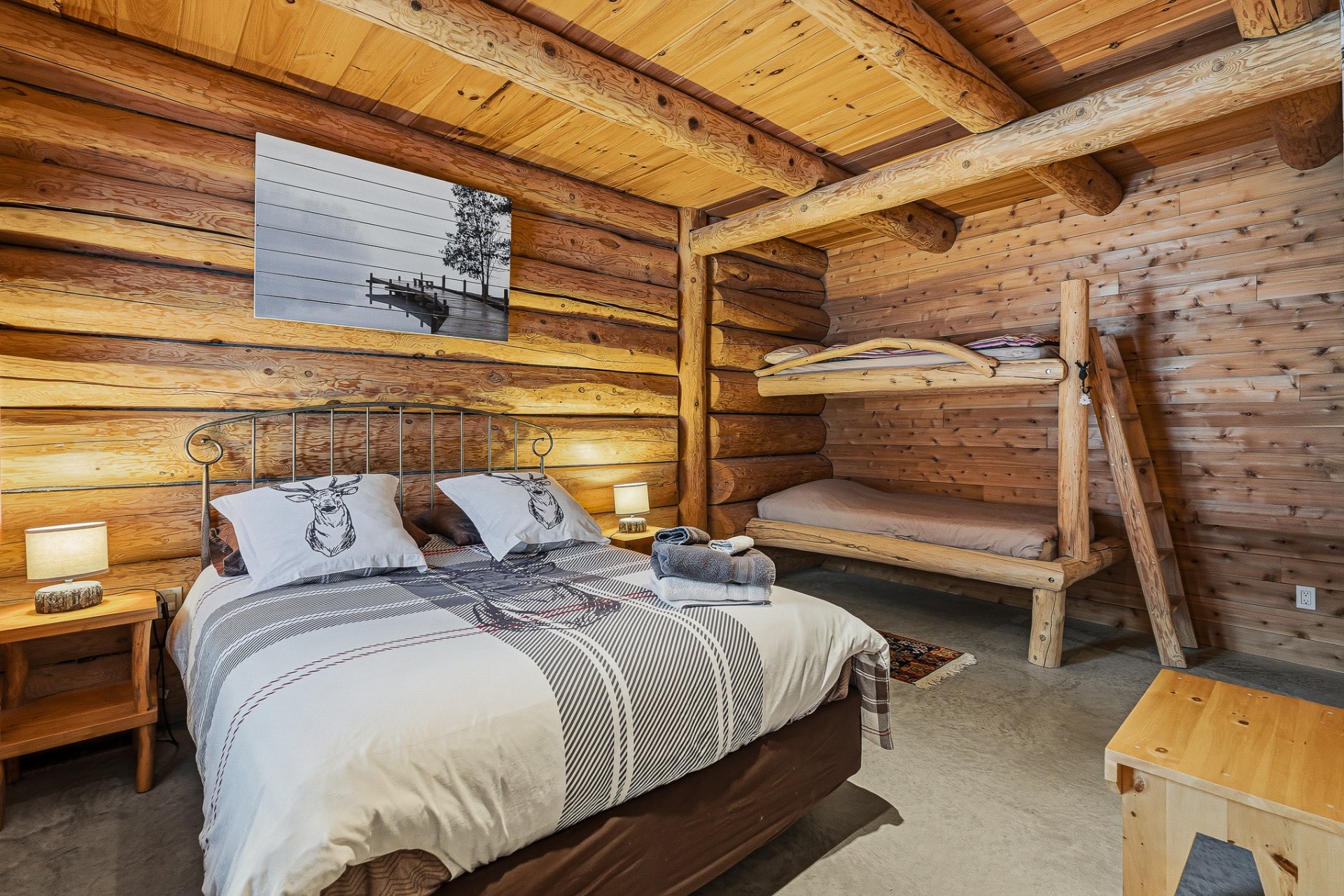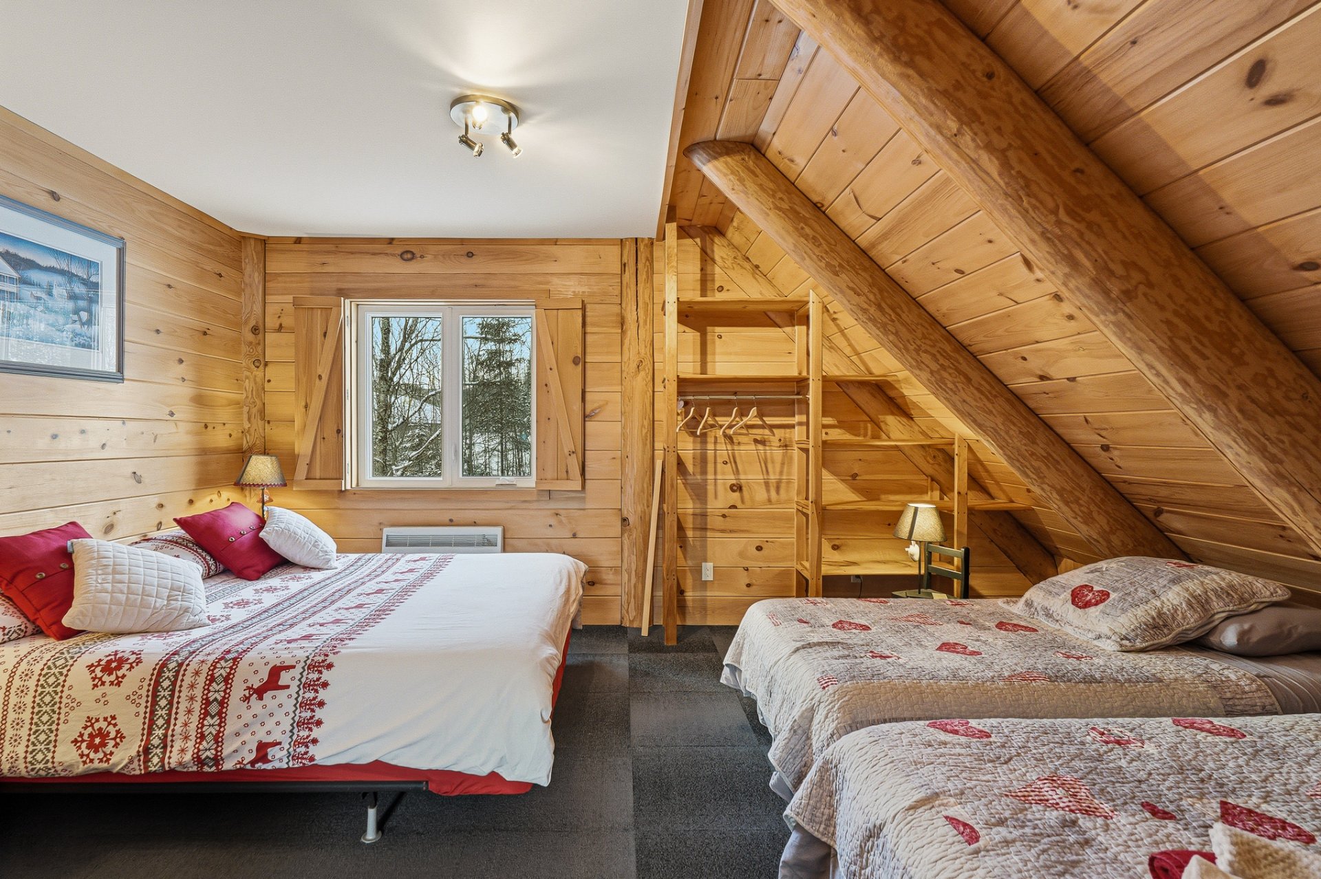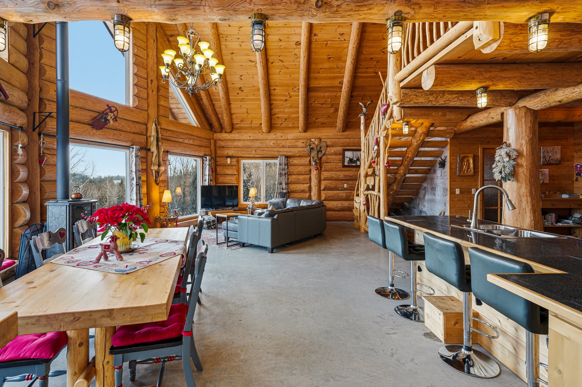 Le Chalet Bois de Coeur à Saint-Côme est une propriété exceptionnelle offrant une multitude de possibilités. Actuellement exploité comme petite auberge Bed & Breakfast, ce bâtiment en bois rond dégage un charme authentique et chaleureux.