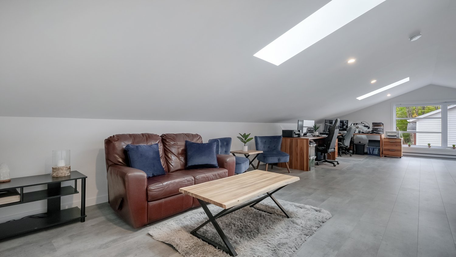 L'intérieur propose 3 chambres à coucher, 2 salles de bains complètes ainsi que plusieurs espaces de bureau, parfaits pour le télétravail ou vos projets personnels.