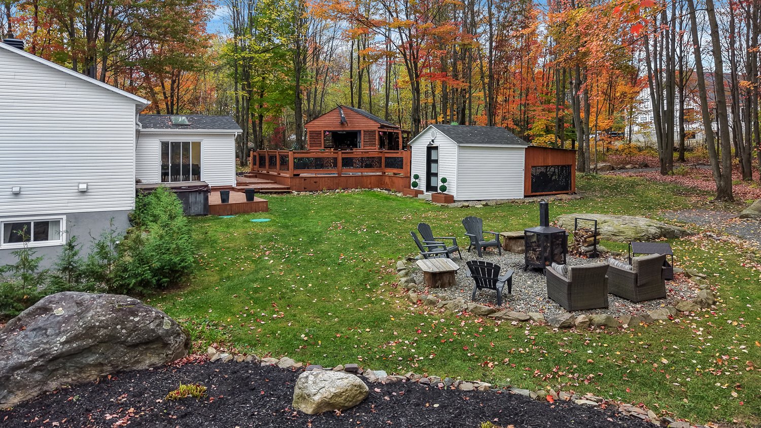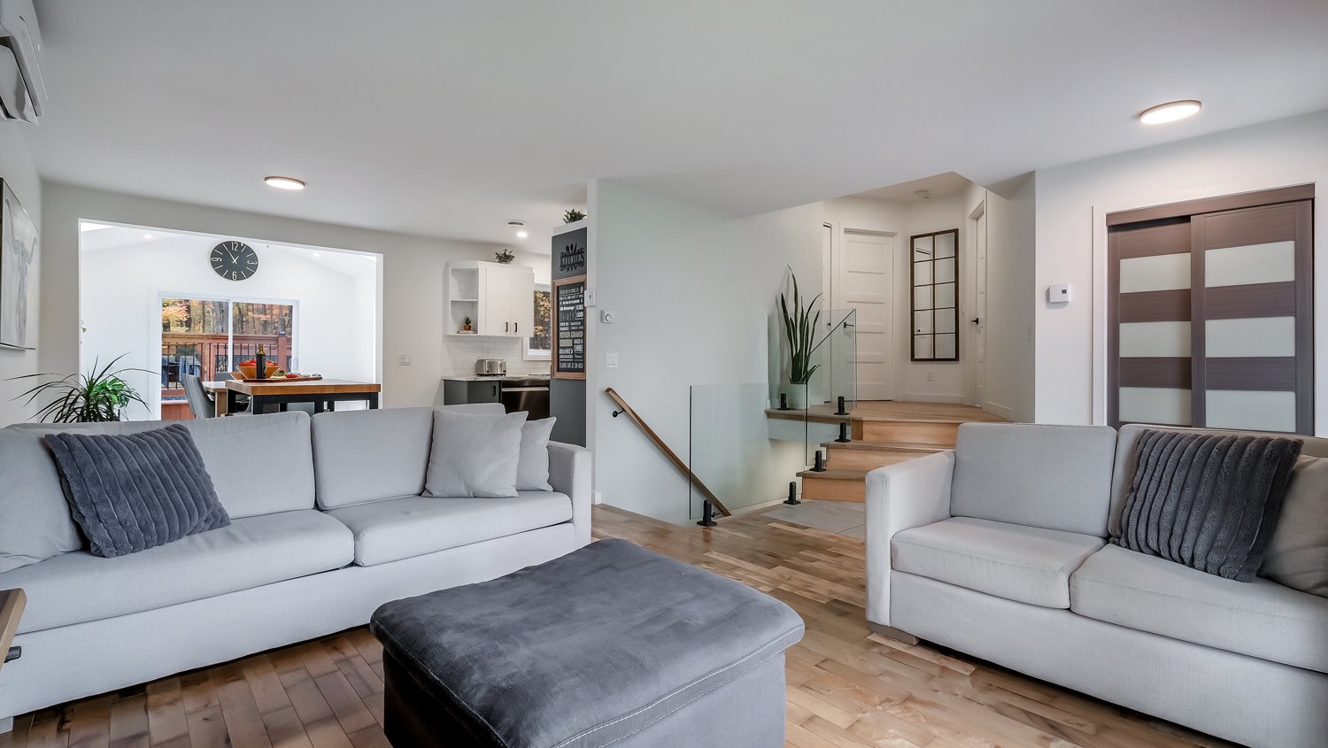 Découvrez cette superbe propriété entièrement rénovée au goût du jour, offrant un cadre de vie paisible et lumineux sur un vaste terrain intime de plus de 43 000 pi².