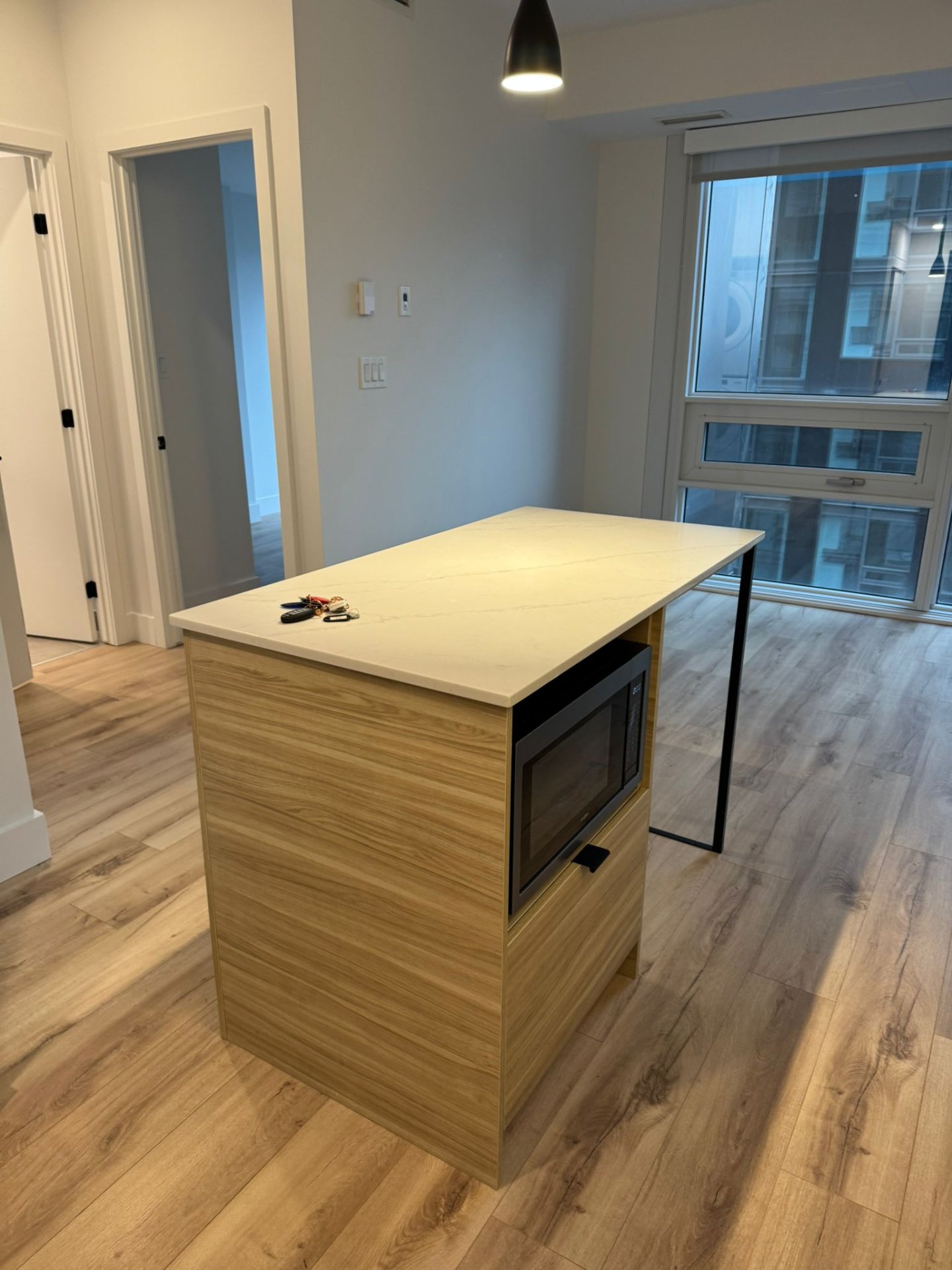 Superbe condo d'une chambre offrant une luminosité exceptionnelle grâce à ses grandes fenêtres et sa vue dégagée. Espace de vie moderne et bien agencé, avec une chambre confortable et une salle de bain élégante. Situé au 1180 Bleury, au coeur du centre-ville, à proximité du métro, des restaurants, commerces et services. Parfait pour un professionnel ou un couple recherchant confort et accessibilité.