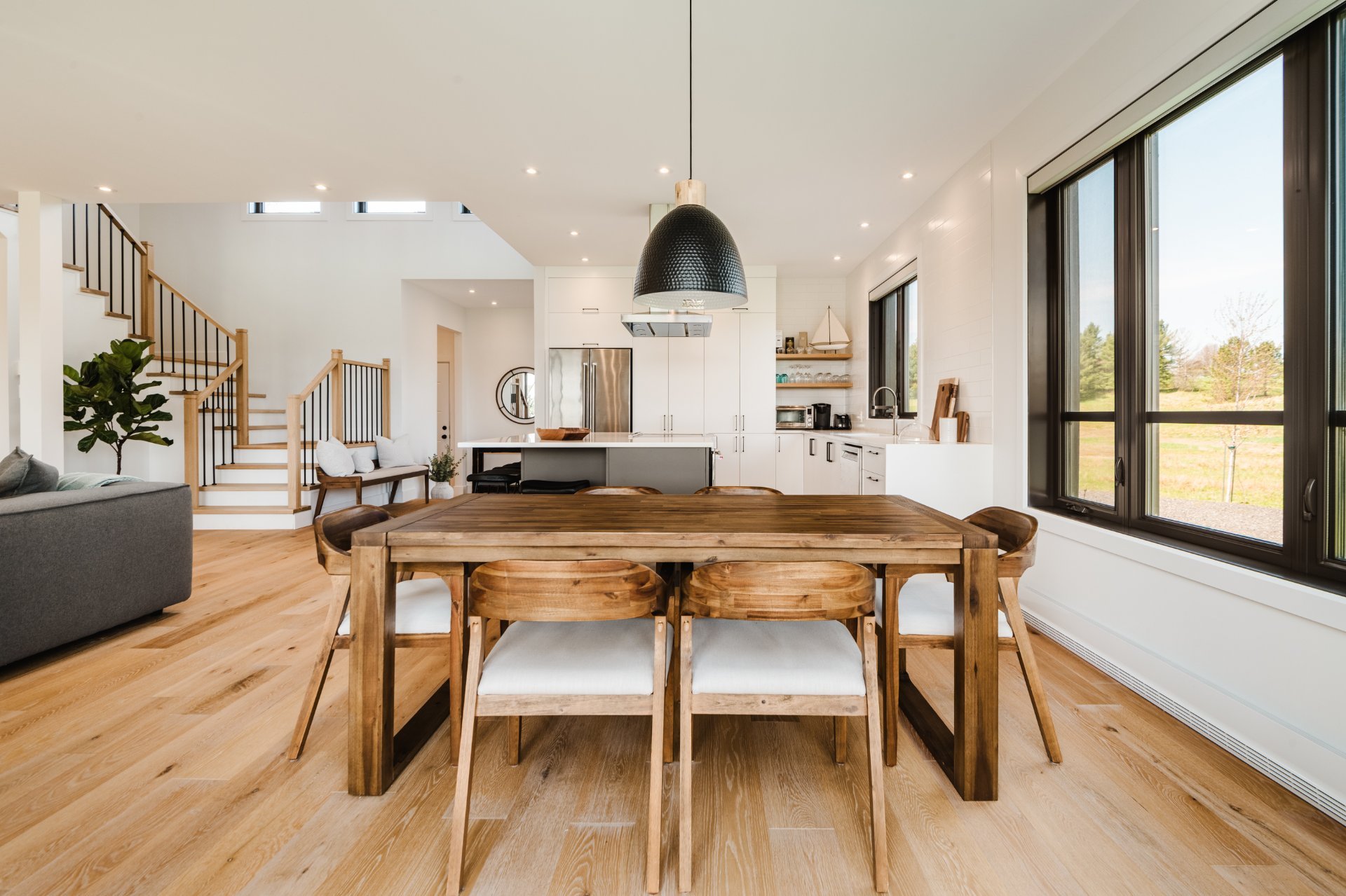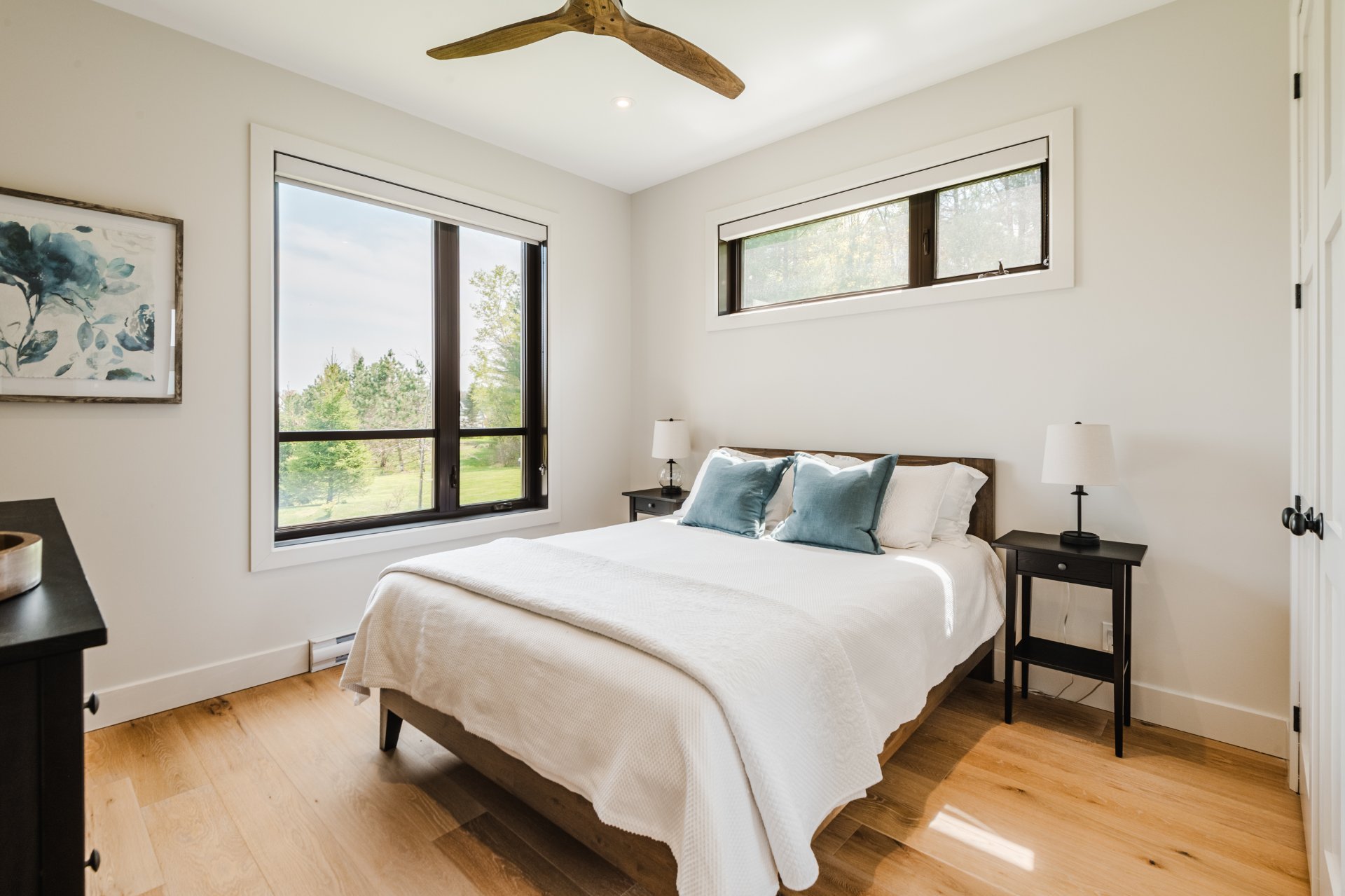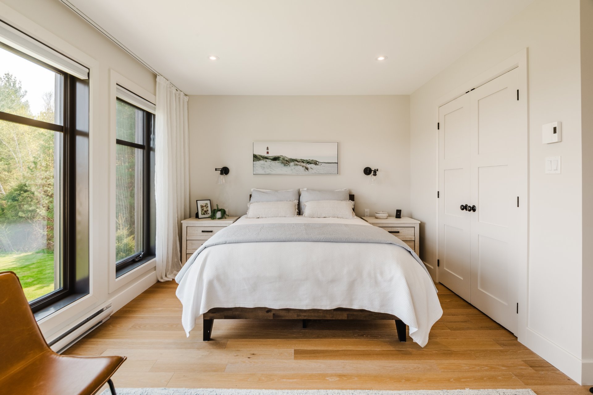La construction incorpore des matériaux nobles et durables, tels que le cèdre et l'acier, et le confort y est optimal grâce à des planchers radiants (eau chaude) sur tout le rez-de-chaussée ainsi que la salle de bain au 2ème. Une thermopompe permet une chaleur diffuse et de la fraîcheur en été.