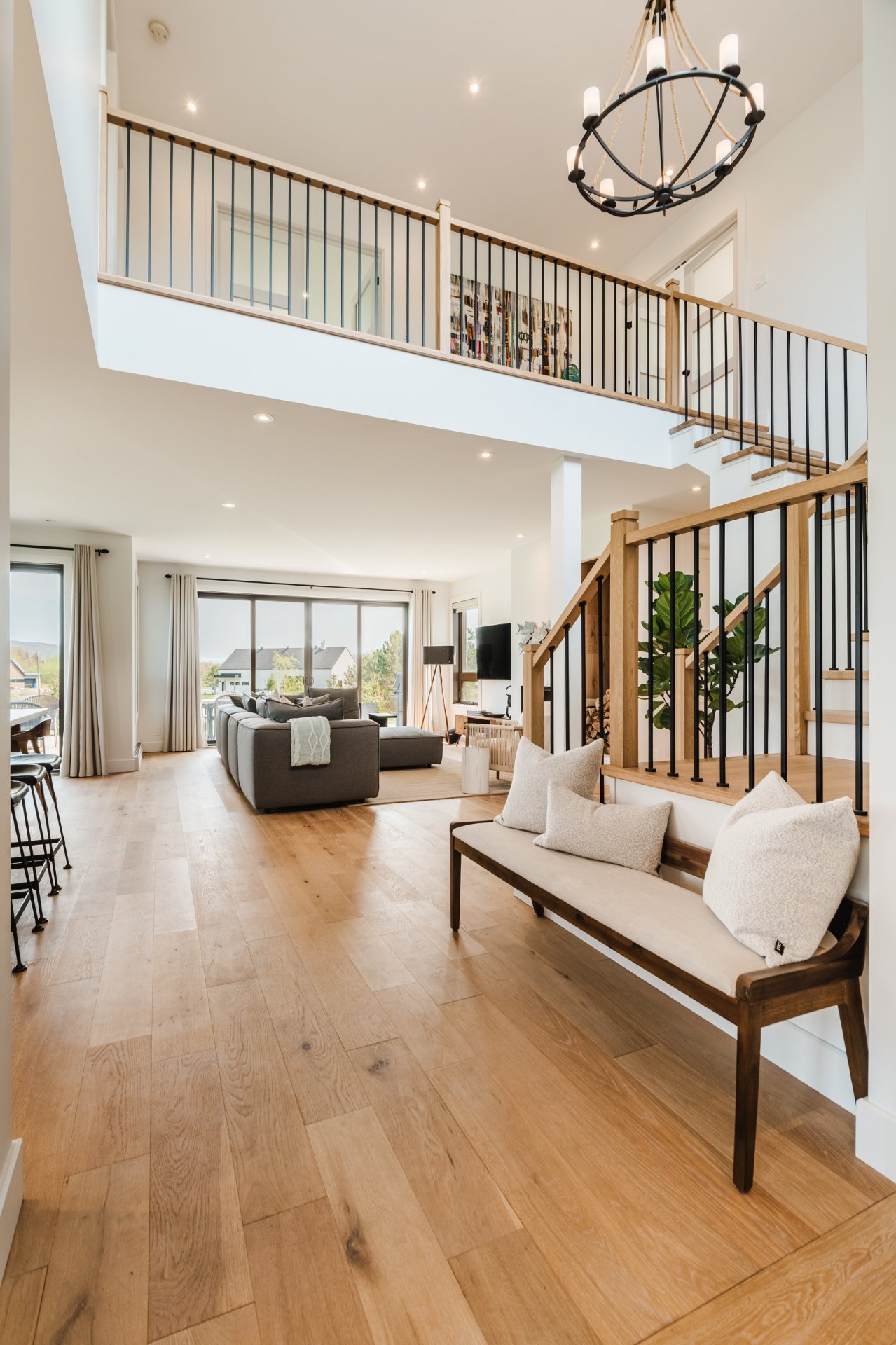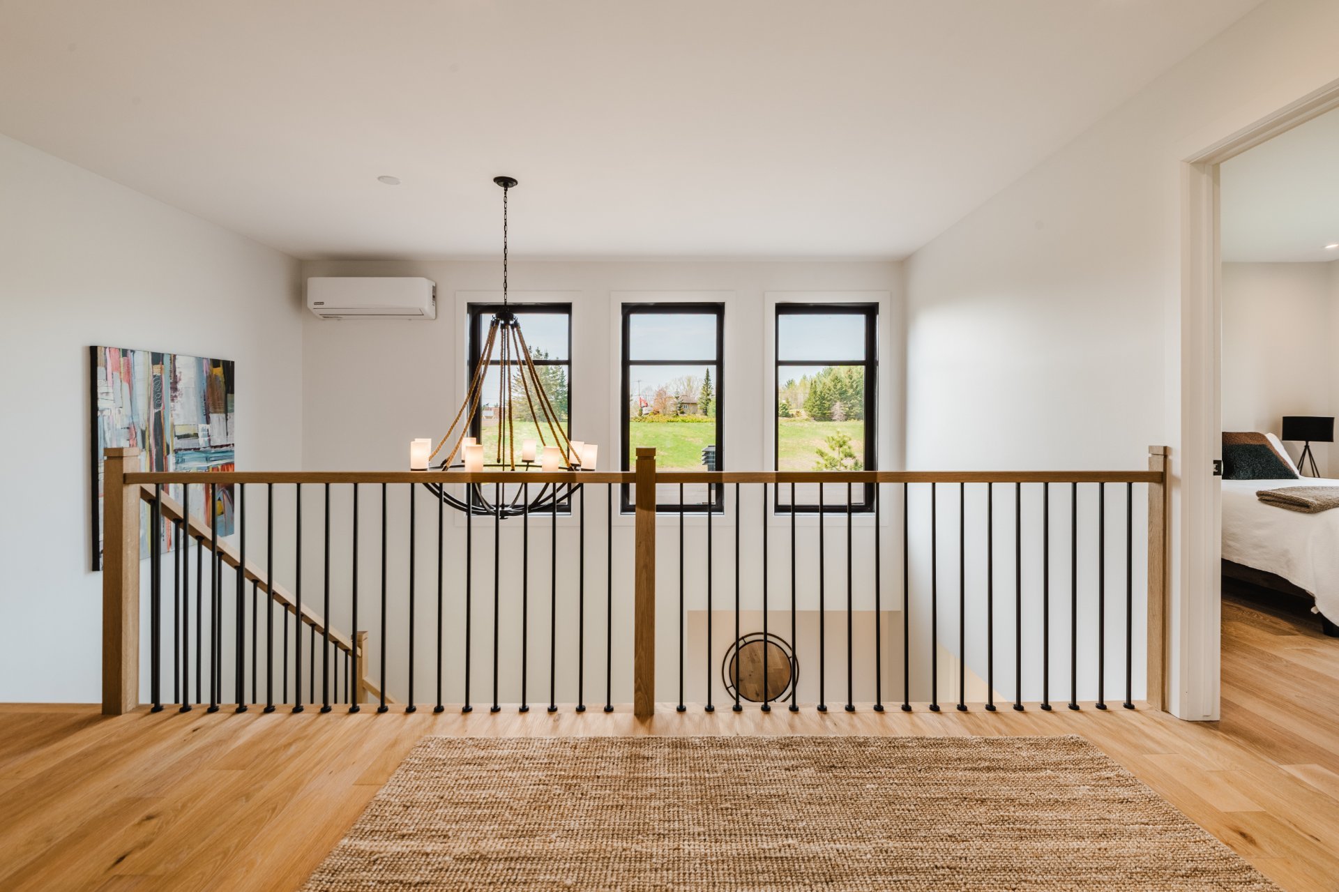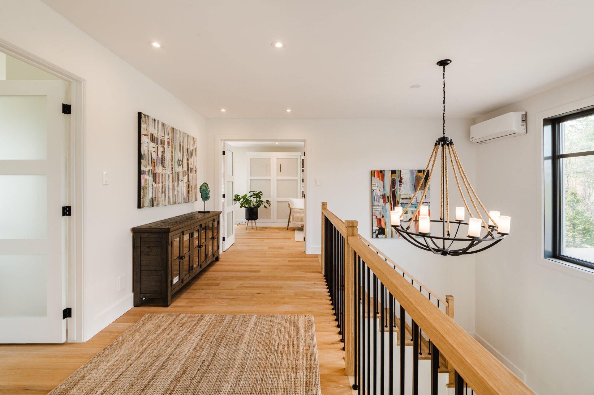 Dès l'entrée, vous serez accueilli dans un hall s'ouvrant sur un espace en toit cathédrale de plus de 18 pieds où l'escalier conçu en deux paliers favorise une grande luminosité. De ce hall, un mud room charmant accède au garage chauffé.