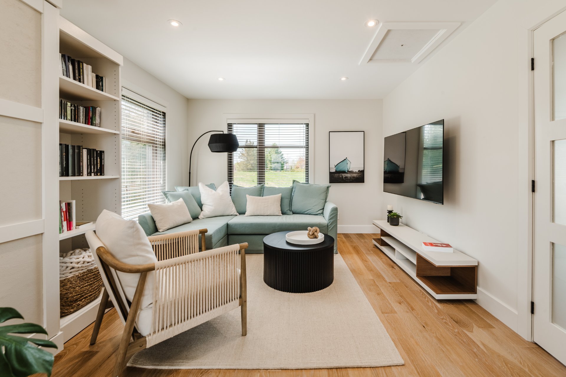 - Cuisinière, réfrigérateur, lave-vaisselle, laveuse, sécheuse, lit escamotable, luminaires, habillage des fenêtres, aspirateur central et accessoires, système alarme + système caméras surveillance, adoucisseur d'eau, échangeur d'air, ouvre porte garage, borne de recharge électrique, foyer extérieur.