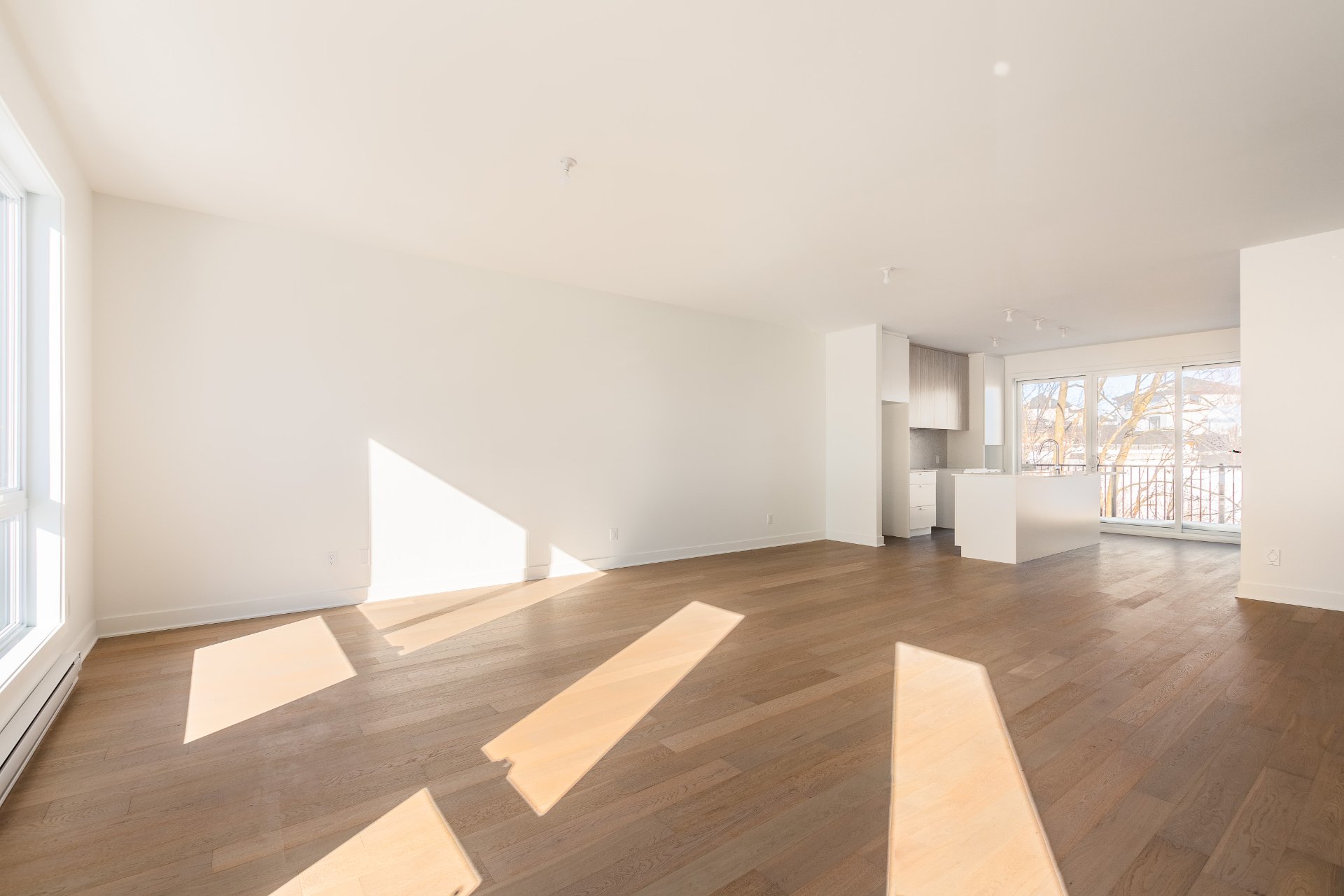 Les grandes fenêtres offrent une abondance de lumière naturelle dans les aires de vie à aire ouverte, idéales pour recevoir en toute élégance.