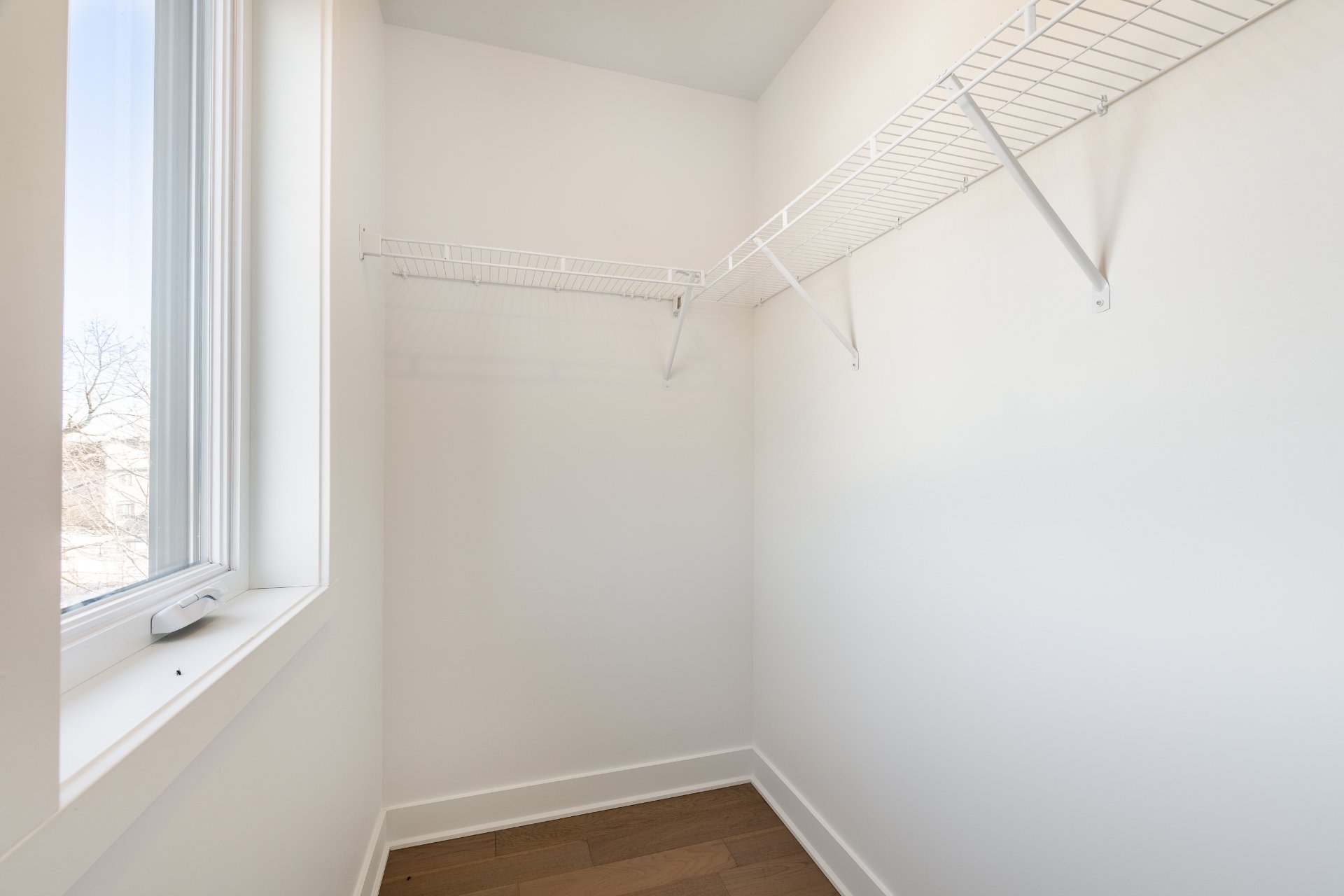 - Rêvetement de plancher bois d'ingénierie, Dosseret en ceramique, rêvetement de plancher de céramique, escalier en bois, armoires de cuisine en mélamine de couleur, comptoir de quartz dans la cuisine, espace lave-vaisselle, vanité et comptoir en mélamine pour salle de bain et salle d'eau, rangement de garde-robe en grillage