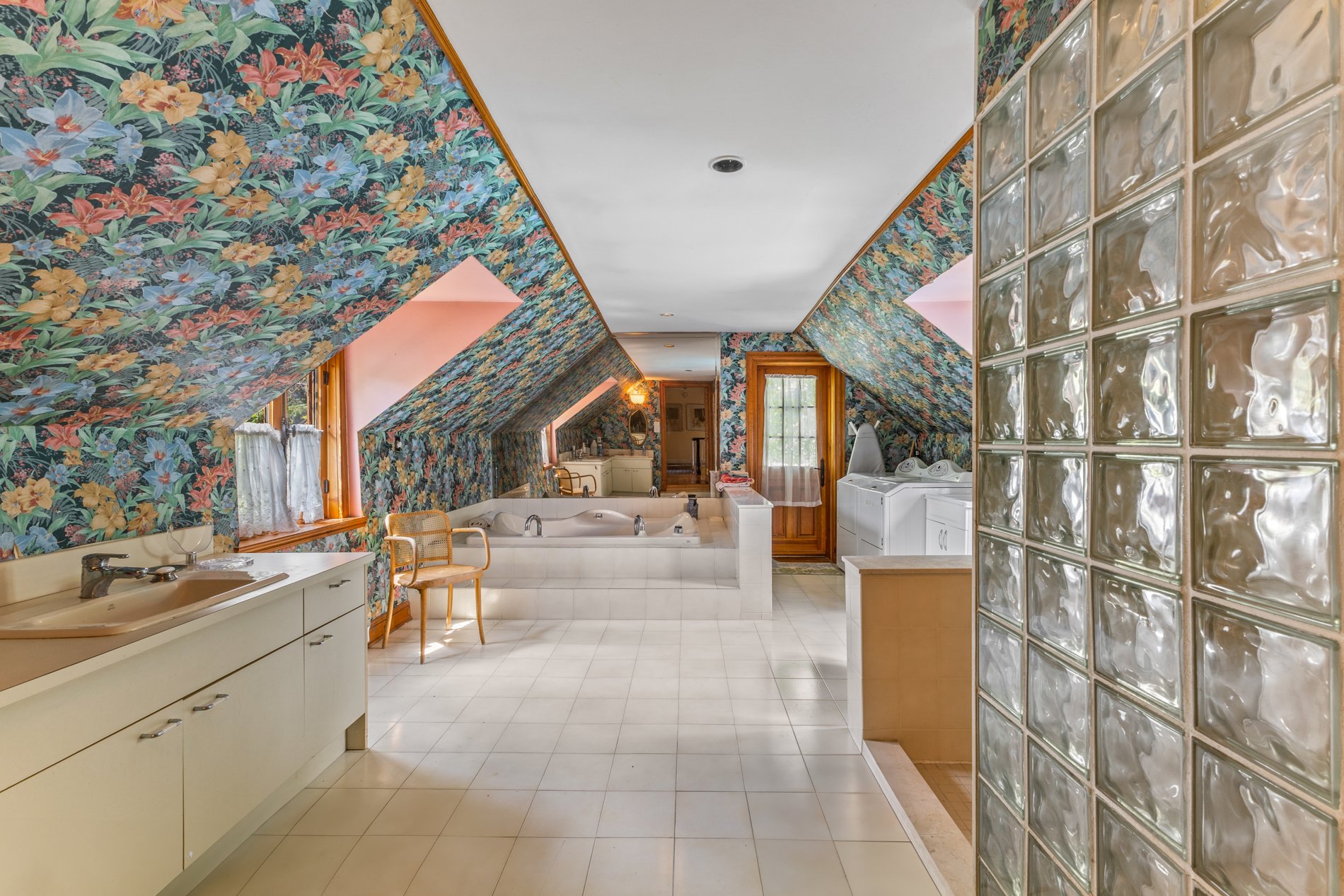 * Grande salle de bain familiale. La salle de bain familiale a été aménagée à partir d'une ancienne chambre. Elle peut facilement être reconvertie en une plus petite salle de bain avec une chambre supplémentaire ou un bureau.