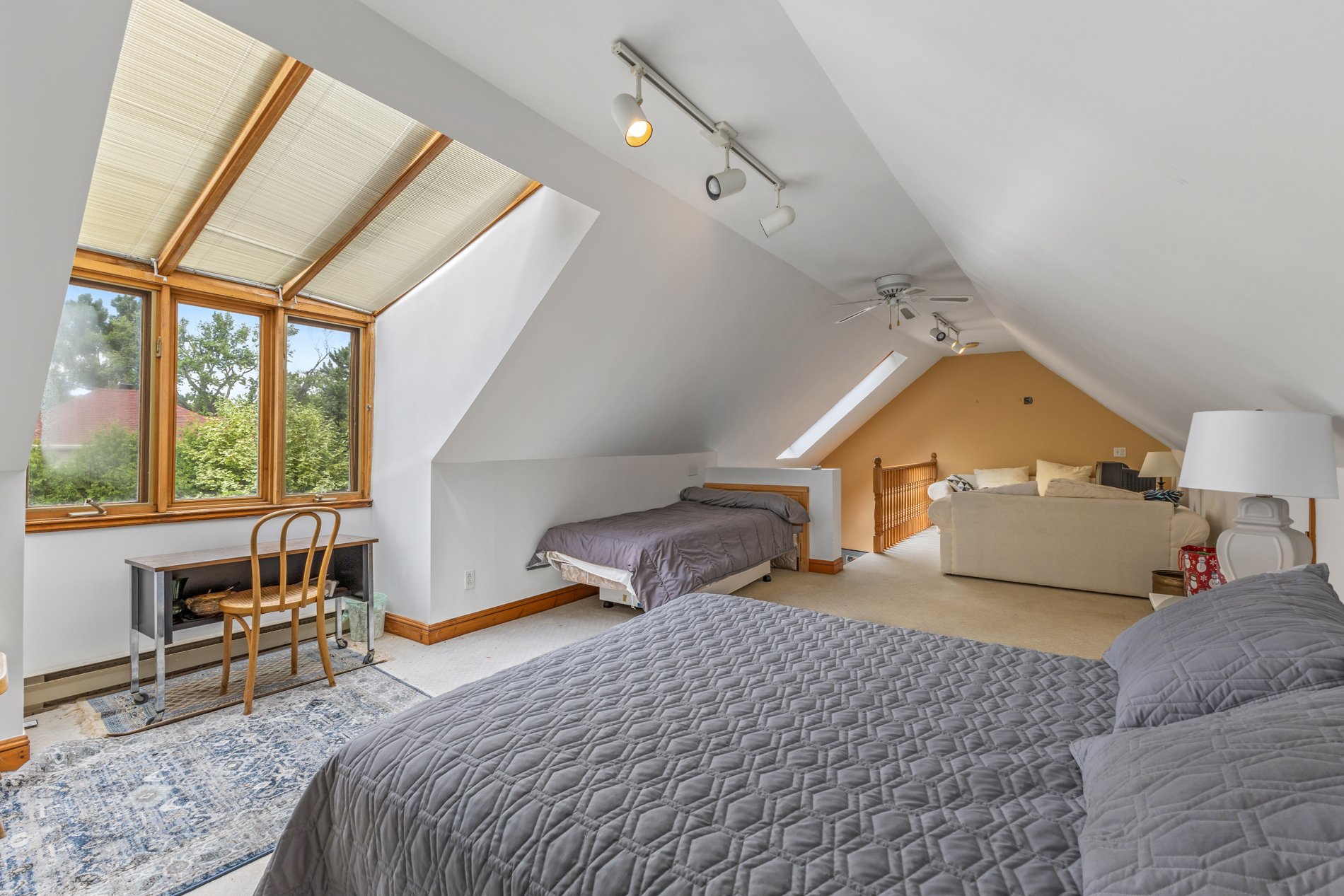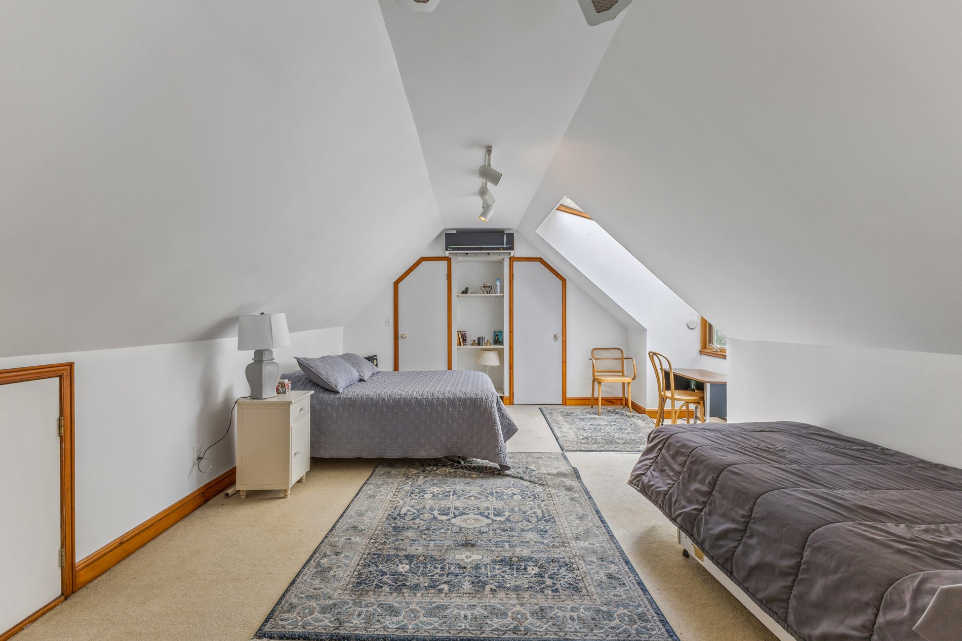 * Troisième chambre réaménagée avec un escalier intégré menant à un grenier fini généreux comprenant un coin chambre et un salon.