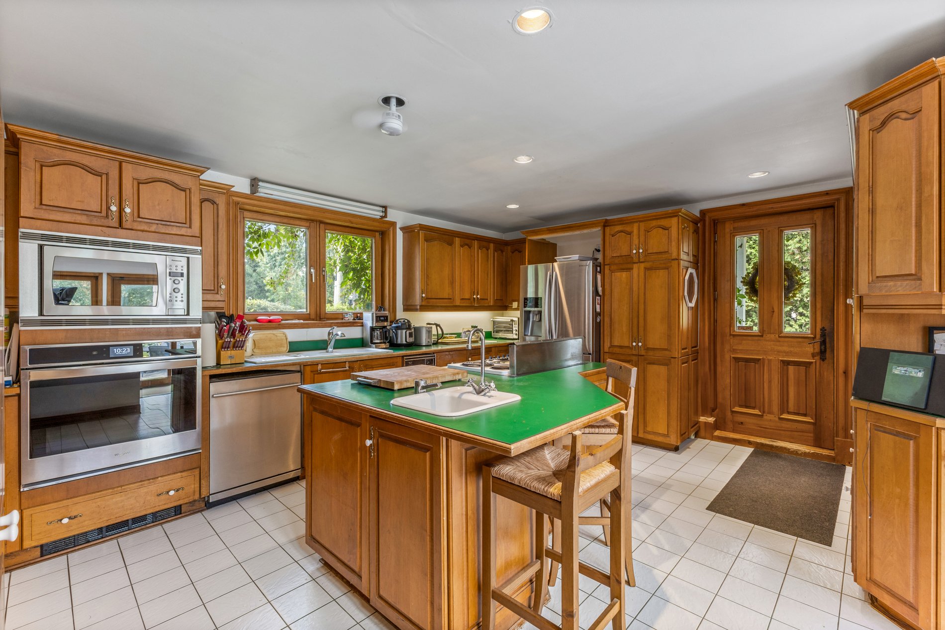 * Cuisine avec accès direct à l'extérieur et solarium attenant donnant sur la cour paysagée, parfait pour en profiter toute l'année.