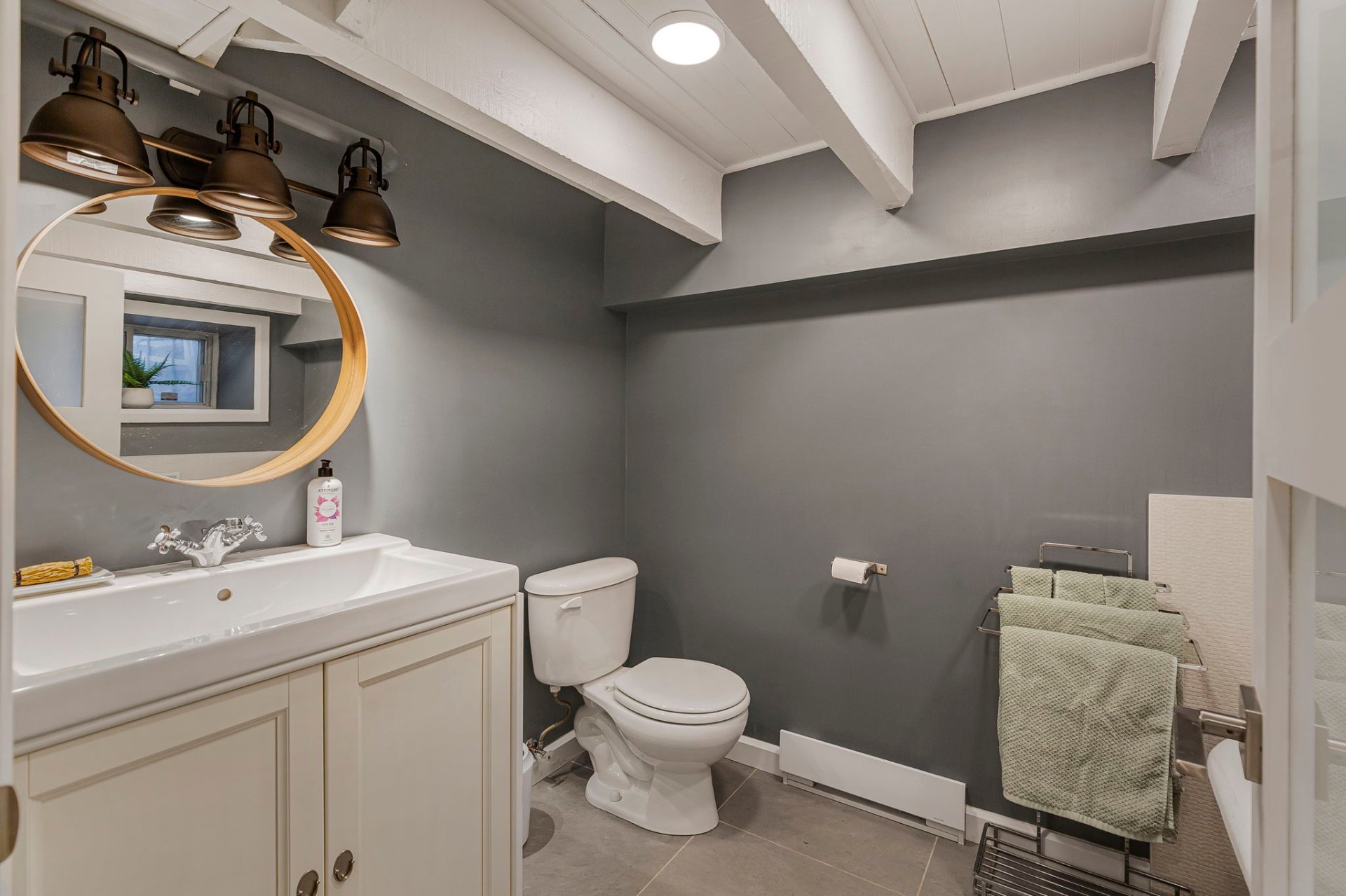 Il y a deux accès au sous-sol à partir du RDC, un par la 3e chambre et l'autre par le mud room derrière la cuisine.