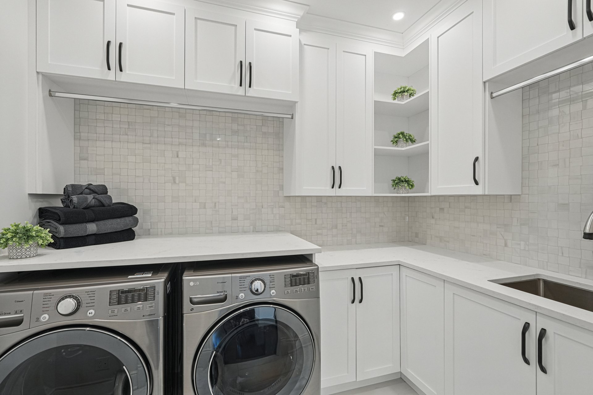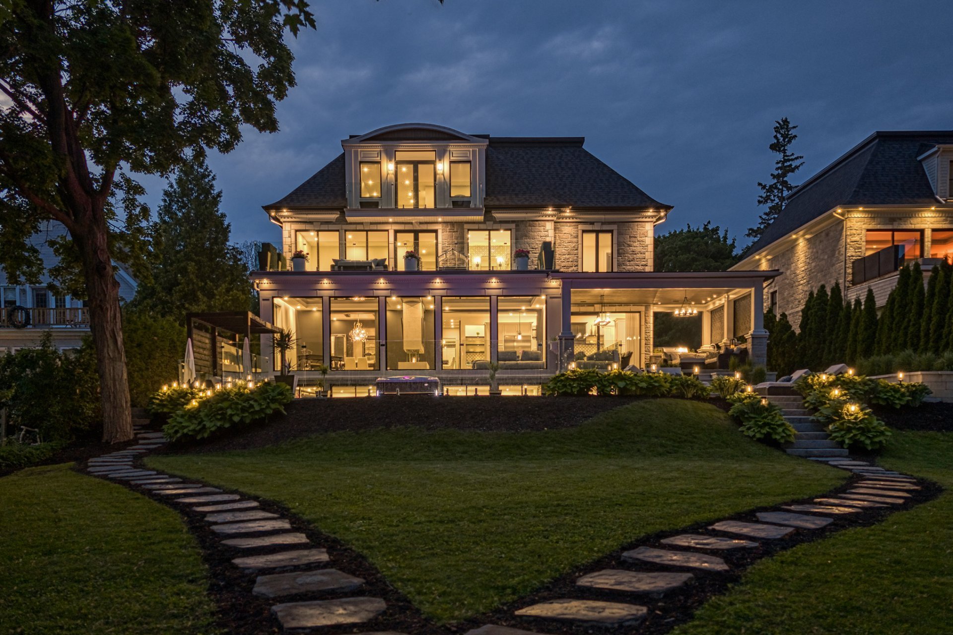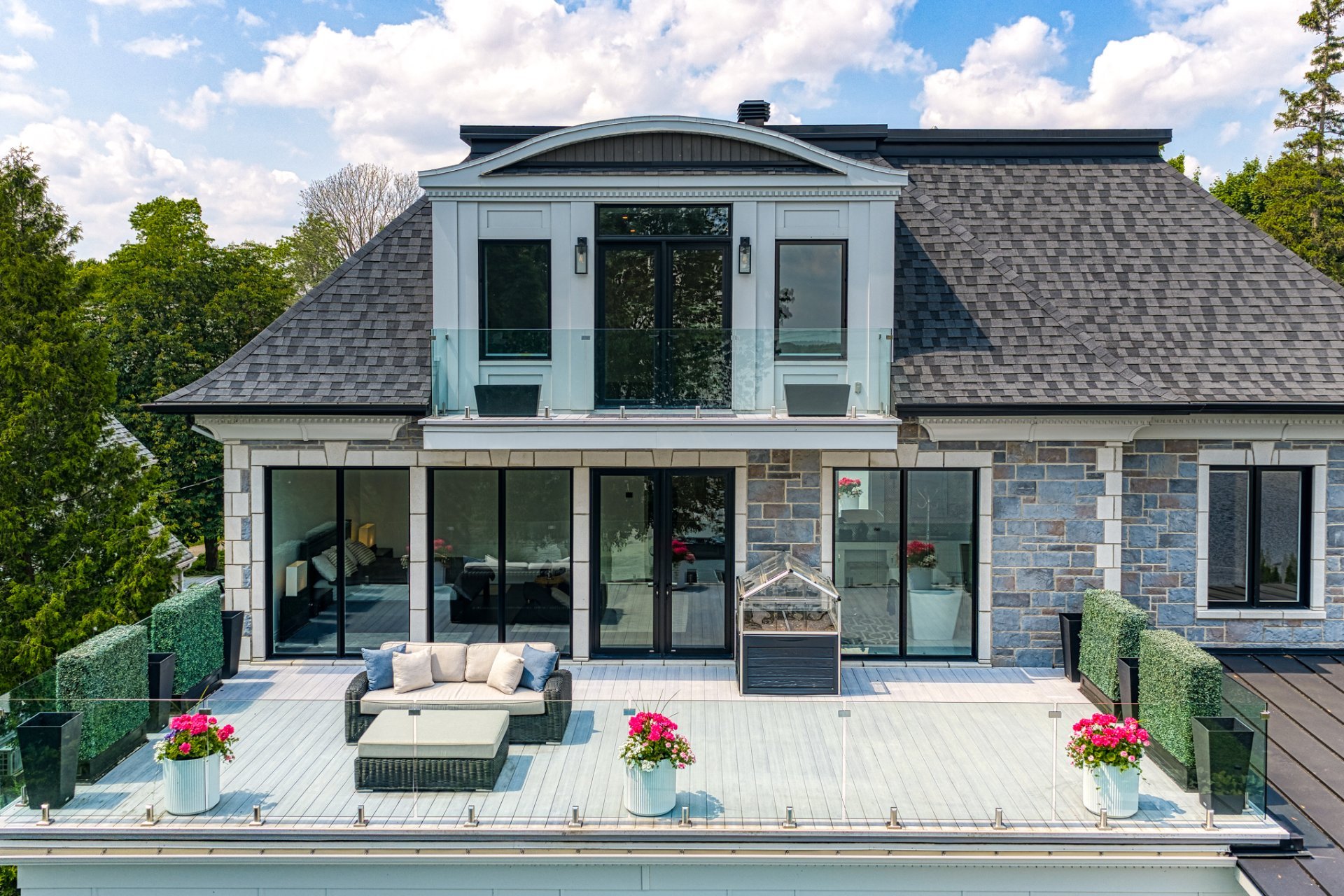 - Électros Miele (2 lave-vaisselles, fours, plaque, frigo/congélo), laveuse/sécheuse LG, éclairage Lutron, Sonos multi-zones, cuisine extérieure Delta Heat, 4 bornes Tesla, miroirs intégrés, spa Jacuzzi, alarme Qolsys + détection d'eau Nowa360, balayeuse centrale CycloVac, cellier à gravité, stores/toiles motorisées Somfy, luminaires, quai, piscine au sel avec robot Beatbot + thermopompe Thermeau, réseau et caméras Unifi + Nest.