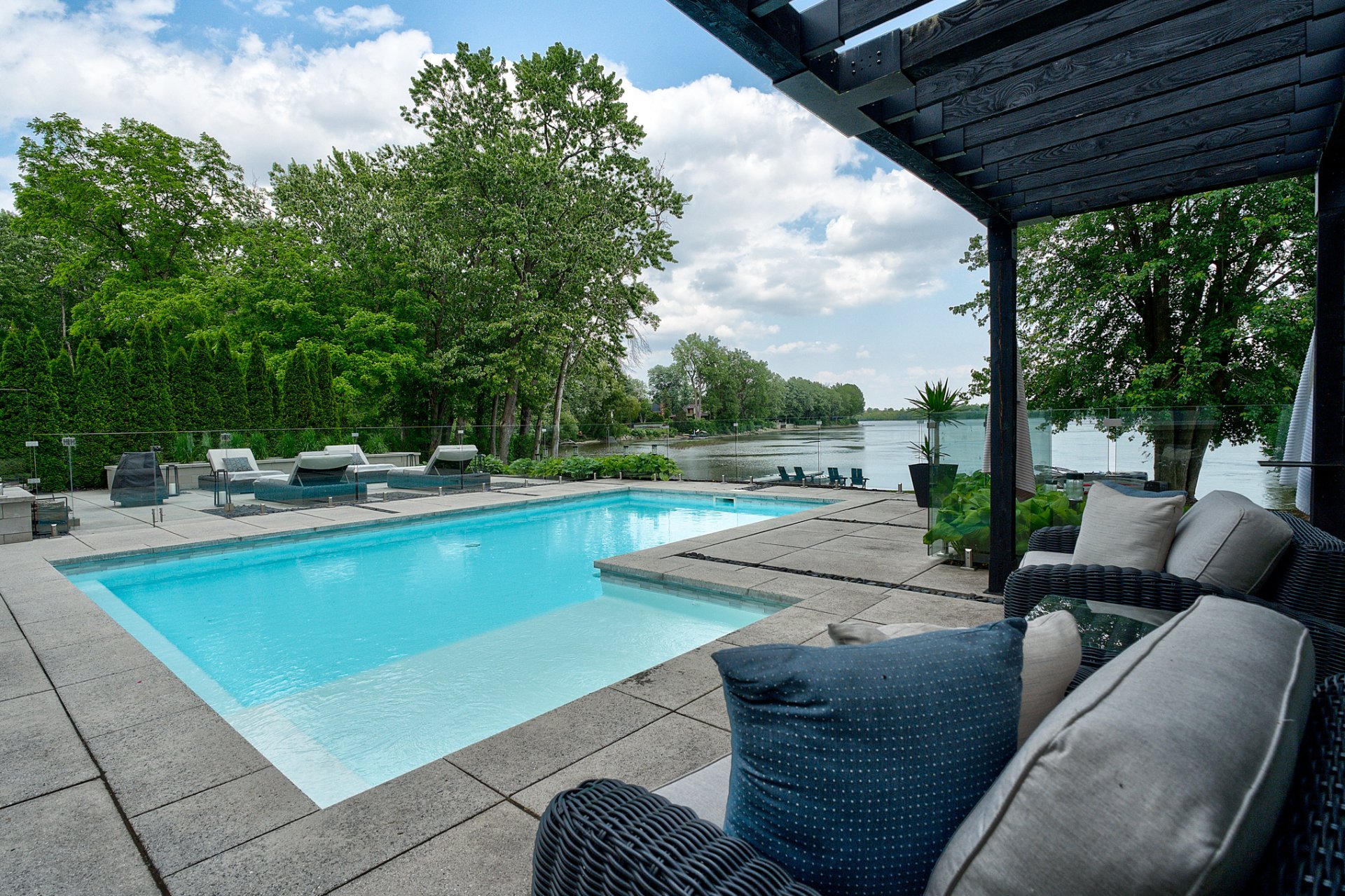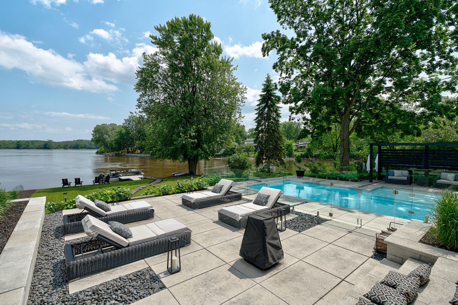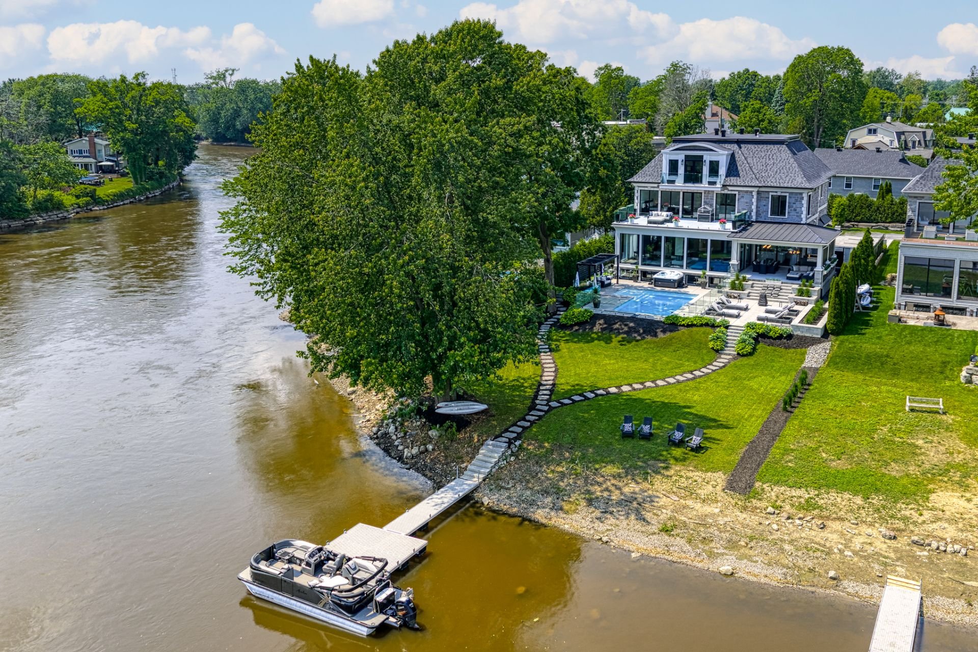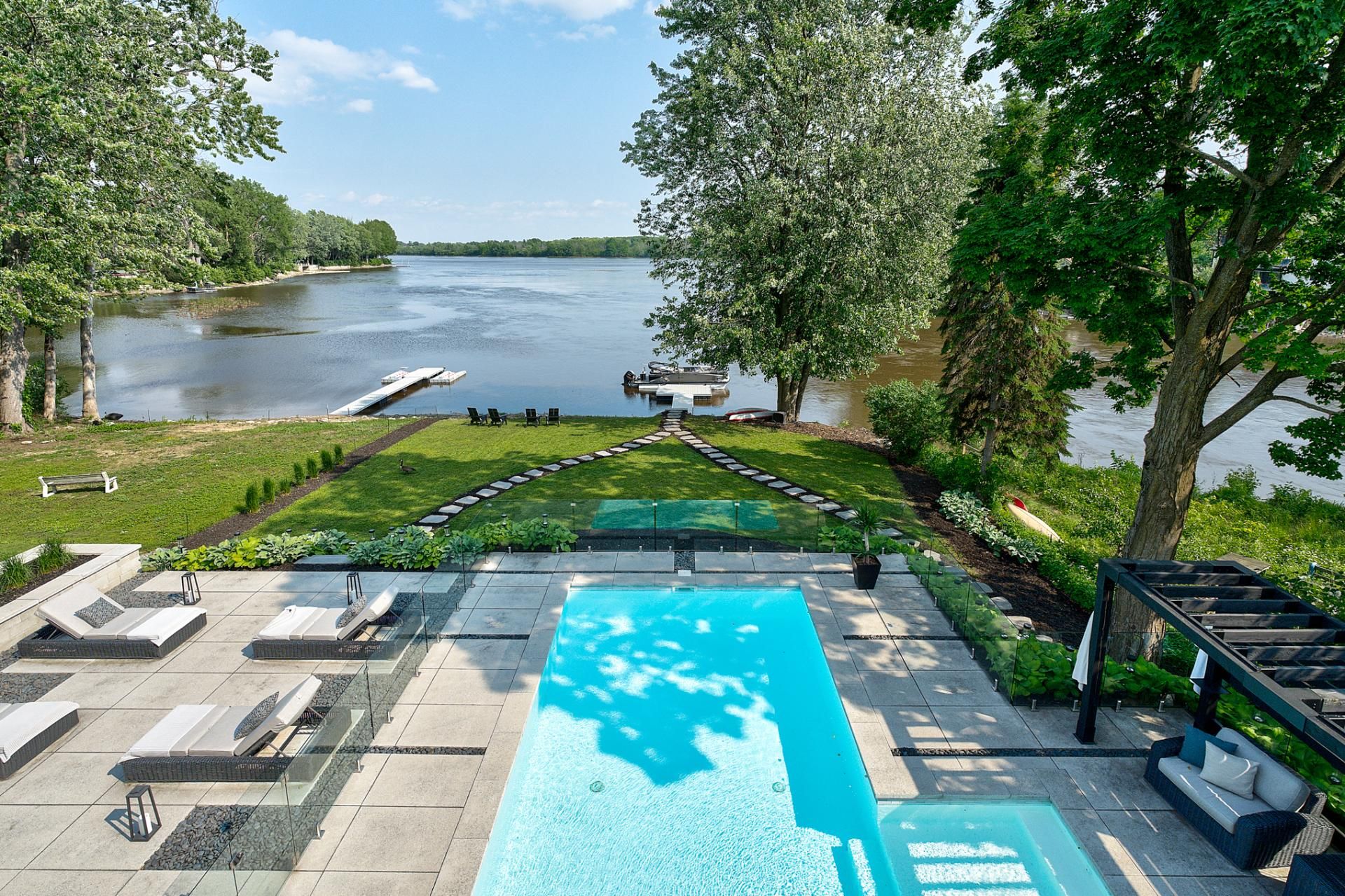 Majestueuse propriété d'exception offrant plus de 6500 pc hors sol au 10 Jardin Islemère, offrant un cadre de vie prestigieux en bordure de la rivière. Vues exceptionnelles vers l'eau. Architecture remarquable, volumes grandioses, 6 chambres, 4 salles de bains, gym, cellier vitré. Terrain paysager avec terrasse élégante incluant une cuisine et salon extérieurs, piscine creusée chauffée, spa et quai privé. Finitions haut de gamme, lumière abondante, garage double. Un lieu unique alliant luxe, calme et distinction. Visites privées sur rendez-vous.