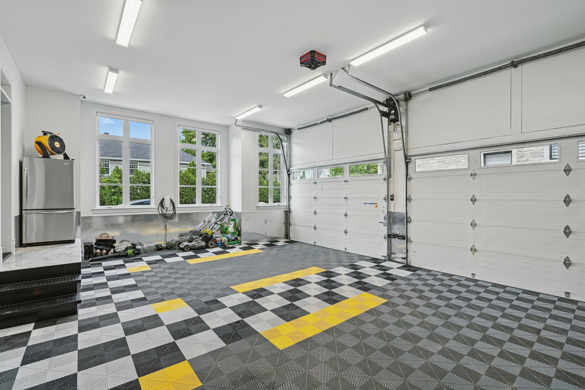 Garage double intégré avec revêtement sur mesure et rangement