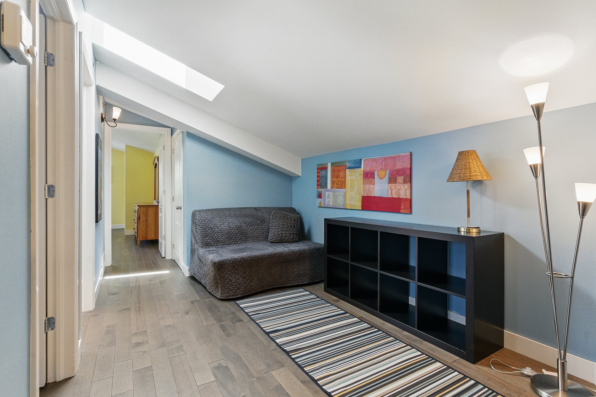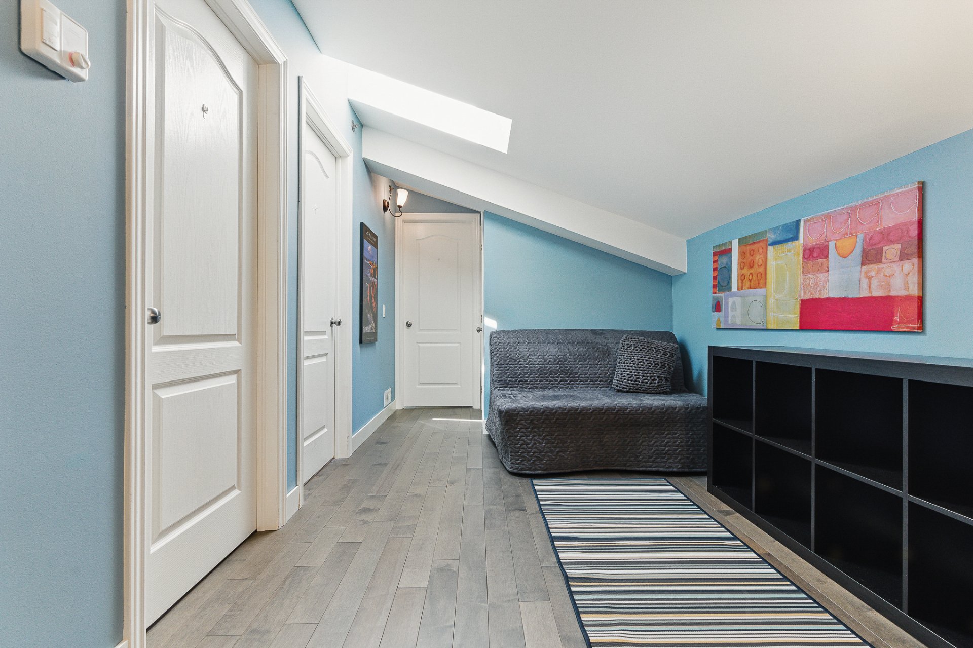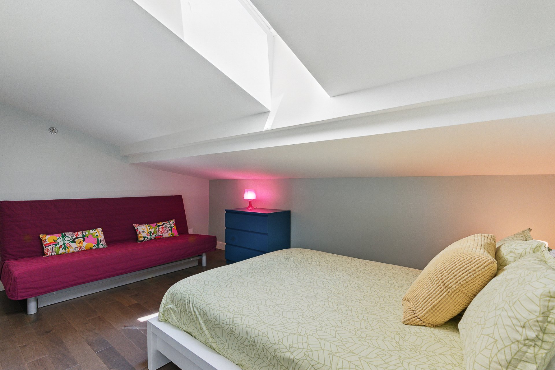 À l'étage supérieur, la suite principale constitue un véritable sanctuaire avec sa décoration douce et ses couleurs apaisantes. Une vaste salle de bain adjacente, équipée d'une baignoire, d'une douche indépendante et de finitions raffinées, complète cet espace intime. Deux autres chambres à coucher lumineuses s'ajoutent à ce niveau, dont une particulièrement charmante avec son puits de lumière, idéale comme chambre d'invités ou bureau inspirant. Le 3ème étage est complété par l'espace boudoir, agréable et polyvalent, qui peut être transformer aisément en coin lecture, bureau à domicile ou espace de détente.