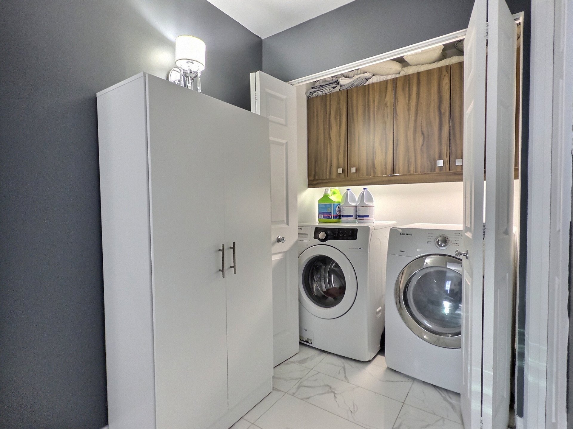 - Luminaires, persiennes, lave-vaisselle, aspirateur central et accessoires, miroir dans la cuisine et miroir dans la salle de bain.