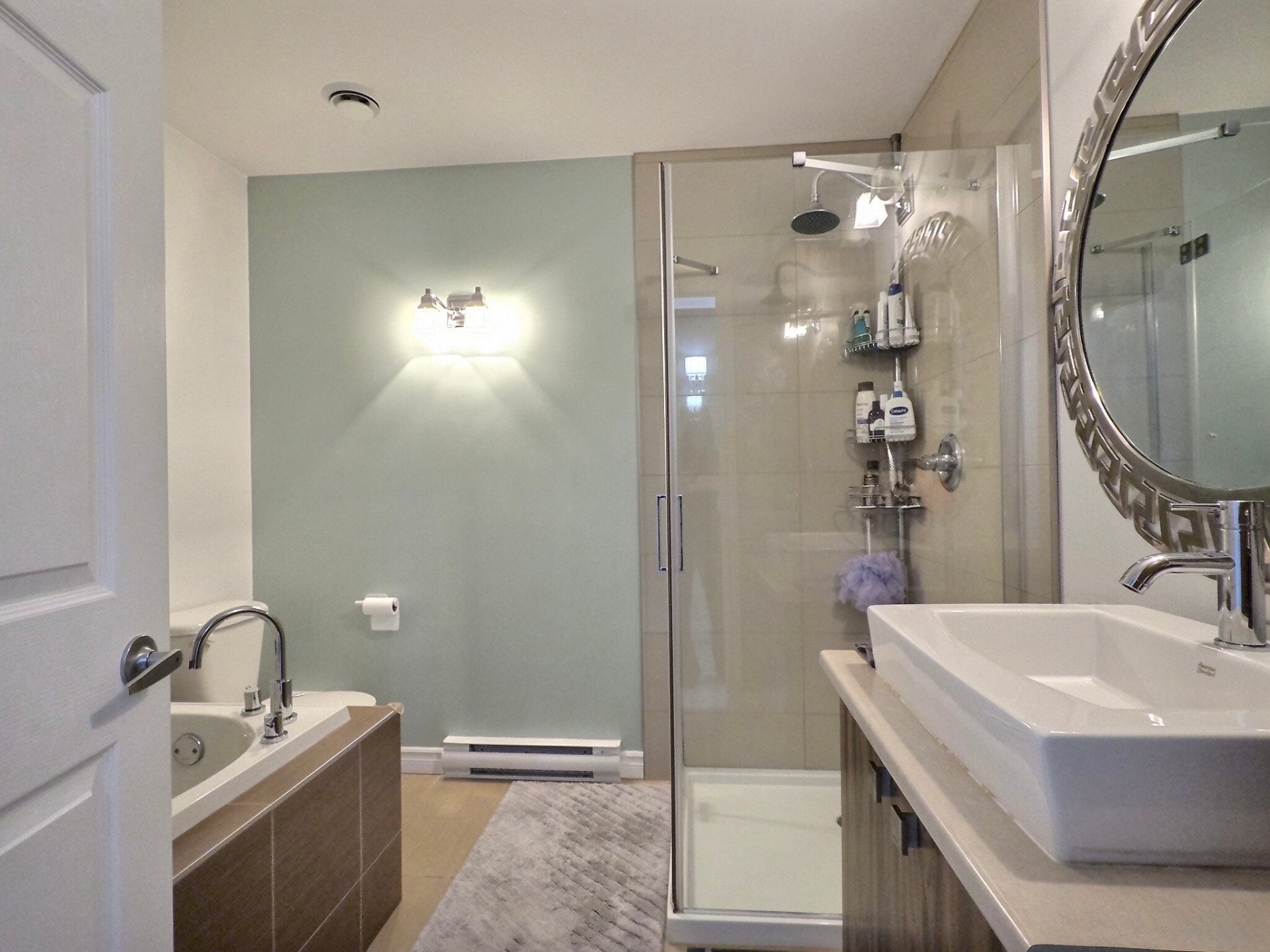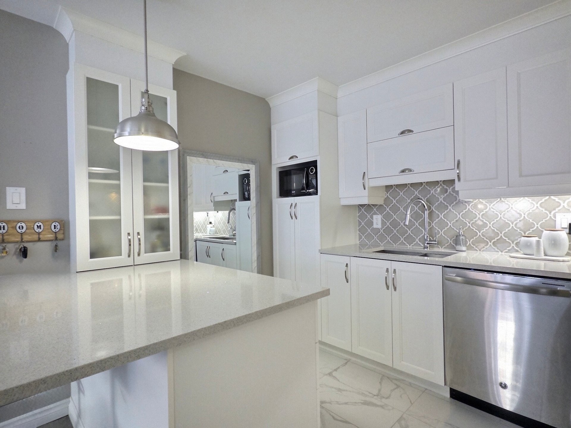 Élégant condo de deux chambres situé au rez-de-chaussée, offrant une harmonie parfaite entre style, confort et fonctionnalité. La cuisine rénovée avec soin se distingue par son superbe îlot de quartz, véritable pièce maîtresse de l'espace de vie.L'unité inclut un stationnement, avec en plus la possibilité de stationner facilement des véhicules devant le condo en tout temps. Les persiennes présentes dans chaque fenêtre ajoutent une touche d'élégance tout en assurant l'intimité.Emplacement stratégique près de tous les services, dont une épicerie à quelques pas dans un secteur recherché et facile d'accès.Occupation en juin.