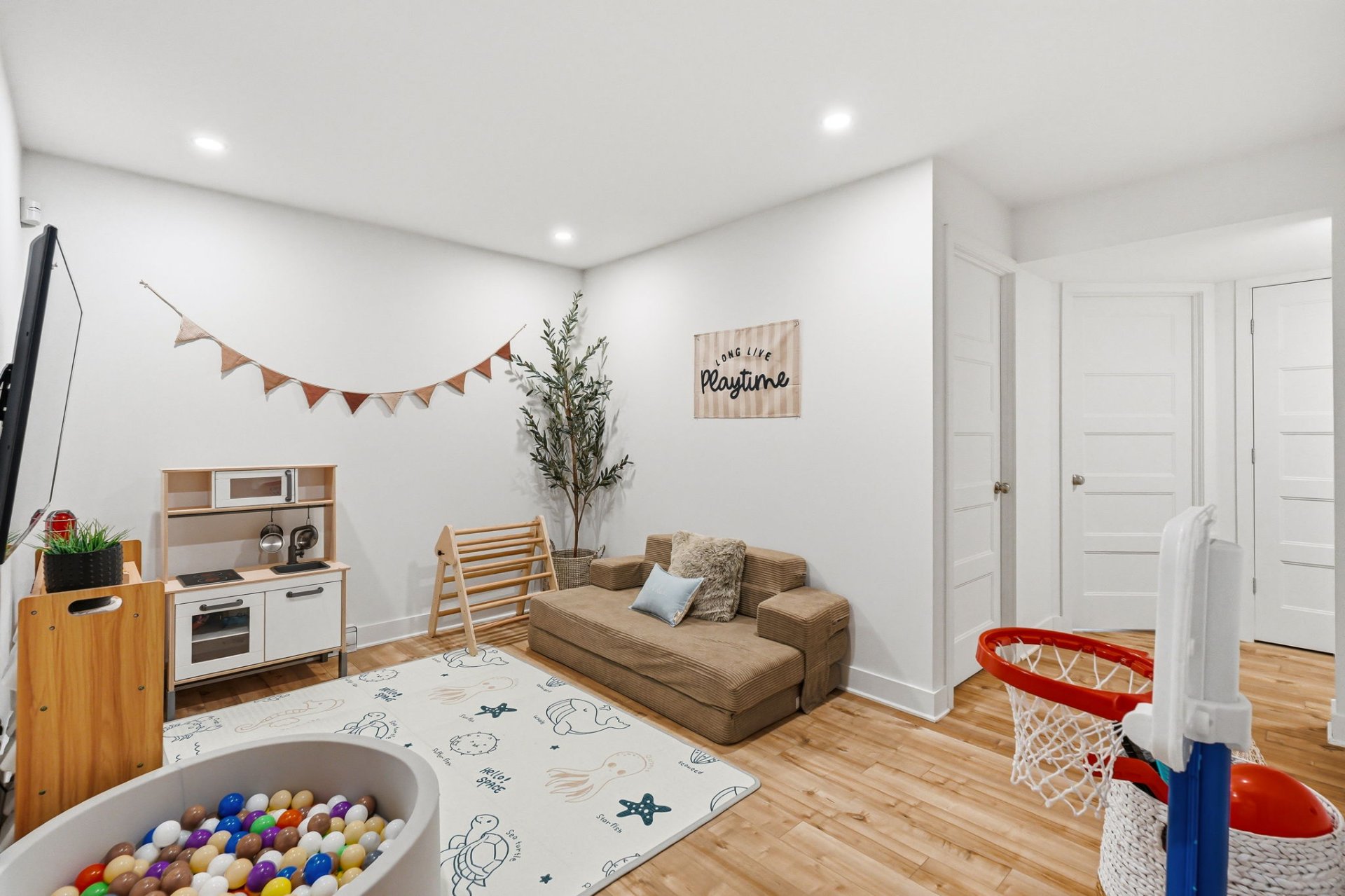 Le sous-sol offre un bel espace familial pouvant s'adapter à vos besoins, en plus de deux chambres supplémentaires et d'une salle de bains.