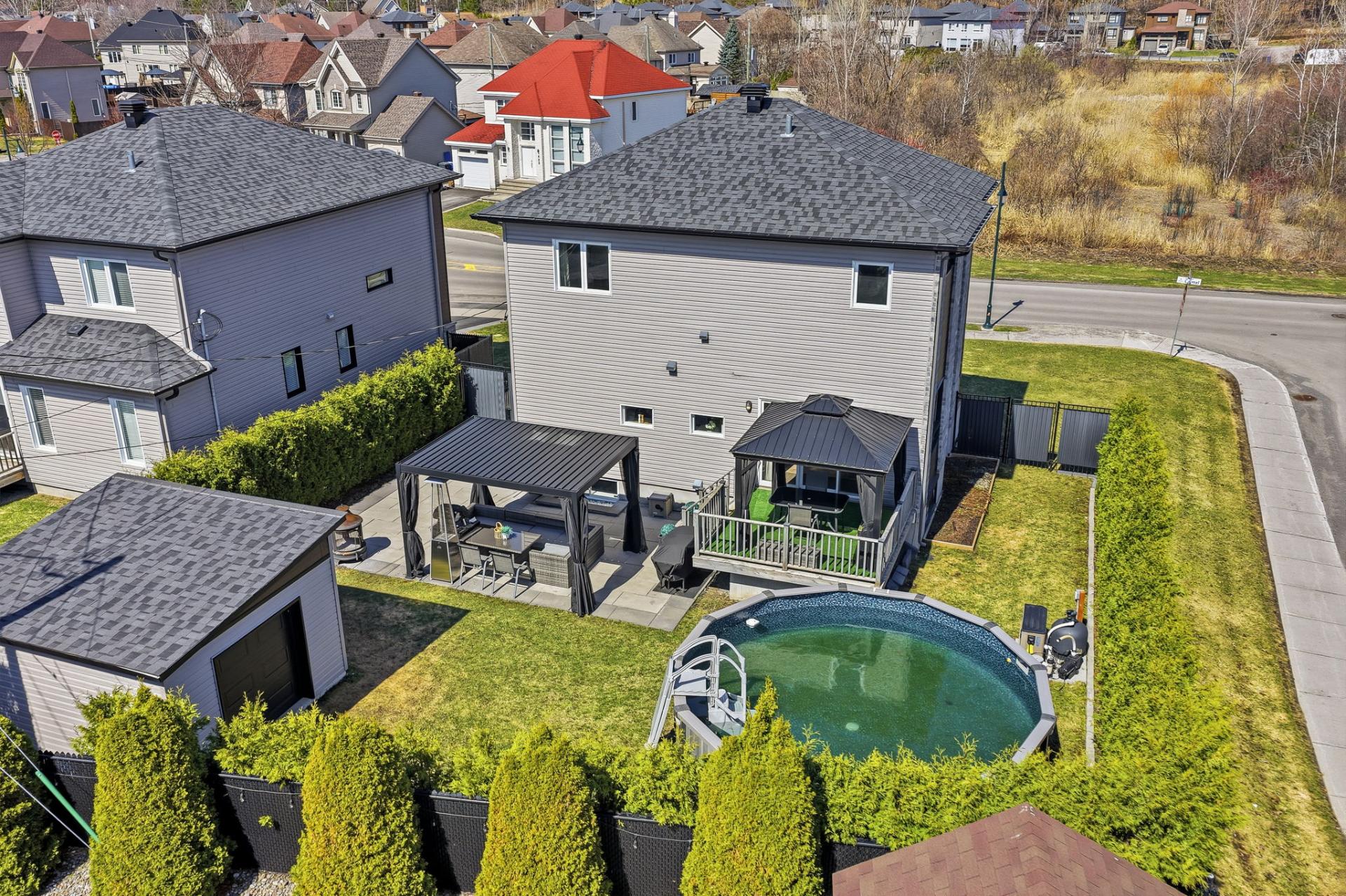 Située sur un coin de rue dans un secteur familial de Terrebonne, cette propriété au style actuel offre des espaces bien pensés. Le rez-de-chaussée à aire ouverte est baigné de lumière grâce à une grande fenestration, regroupant salon, salle à manger et cuisine, avec une salle d'eau pratique. À l'étage, trois chambres, salle de bains et salle de lavage. Le sous-sol propose une salle familiale, deux chambres et une salle de bains. Cour aménagée avec piscine, gazebo, pergola, cabanon et garage intégré.