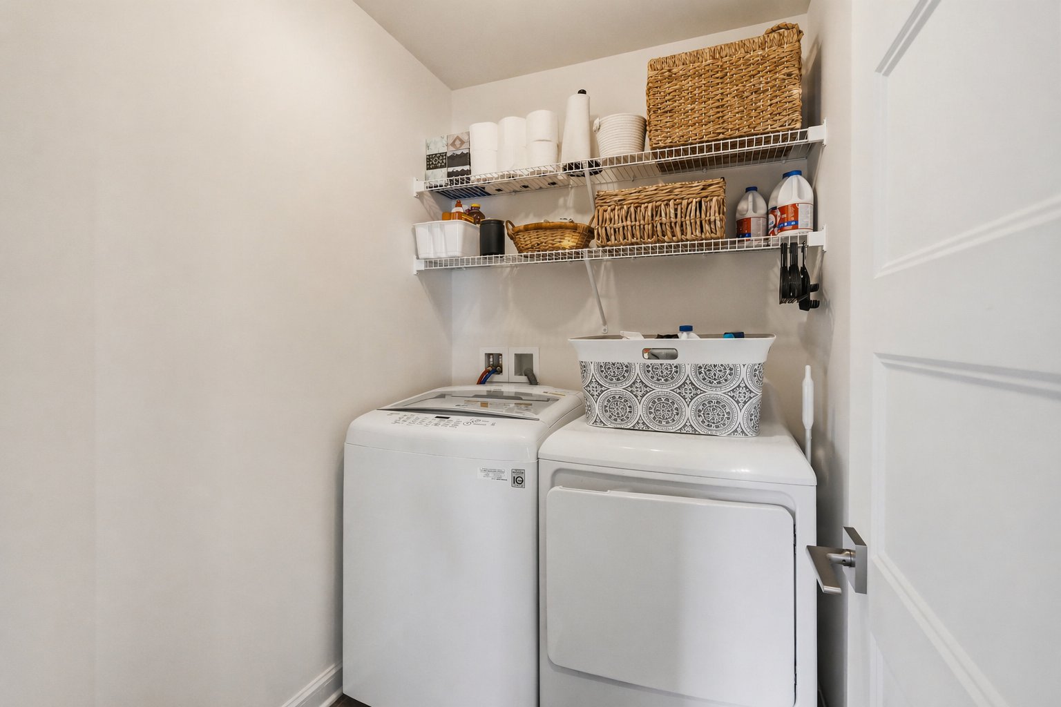 À l'étage, on retrouve trois chambres, une salle de bains ainsi qu'une salle de lavage indépendante.