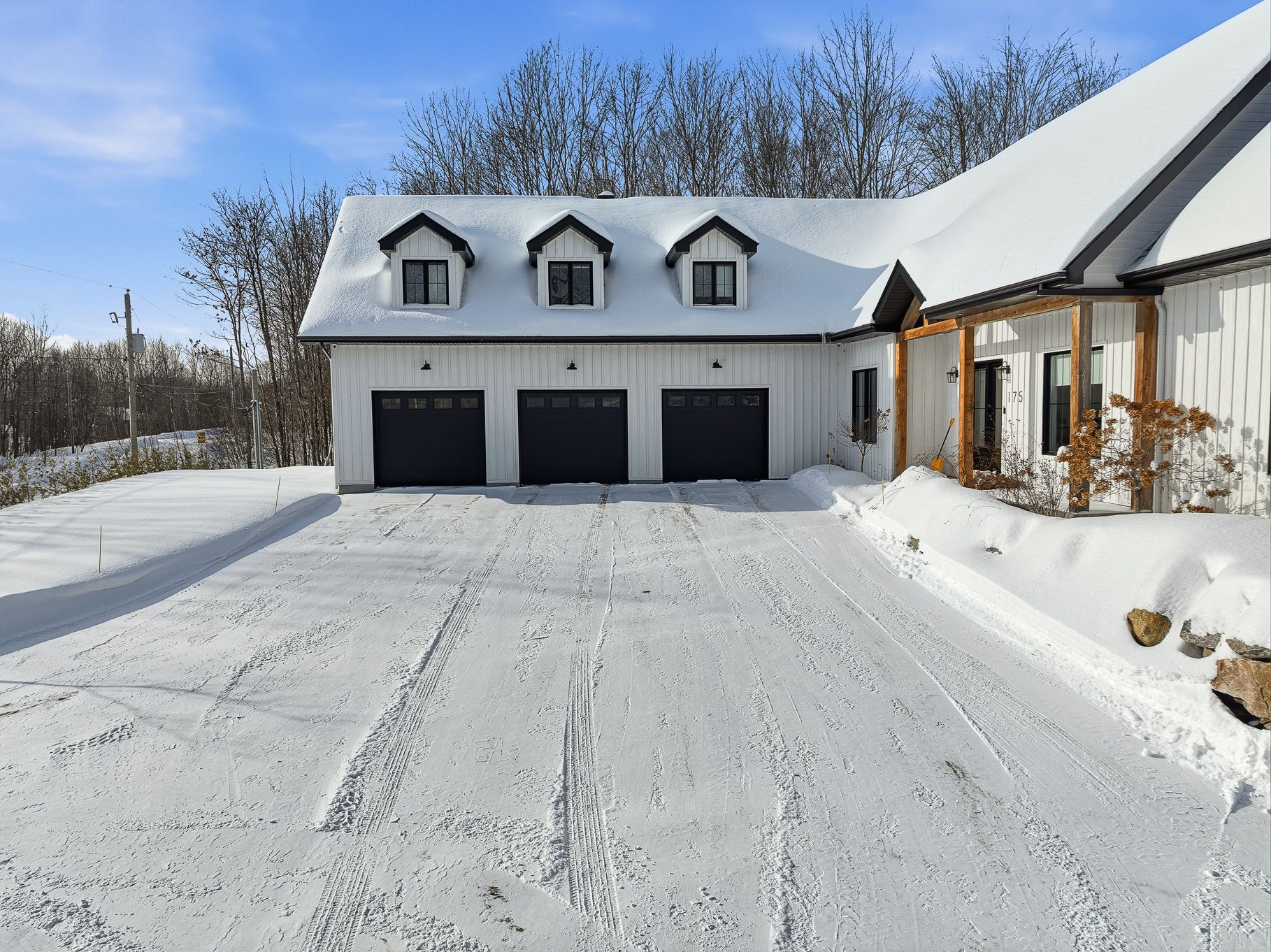 -Le garage équipé de trois portes pouvant y accueillir plusieurs véhicules, avec de l'espace bien optimisée pouvant servir d'atelier ou de rangement supplémentaire.