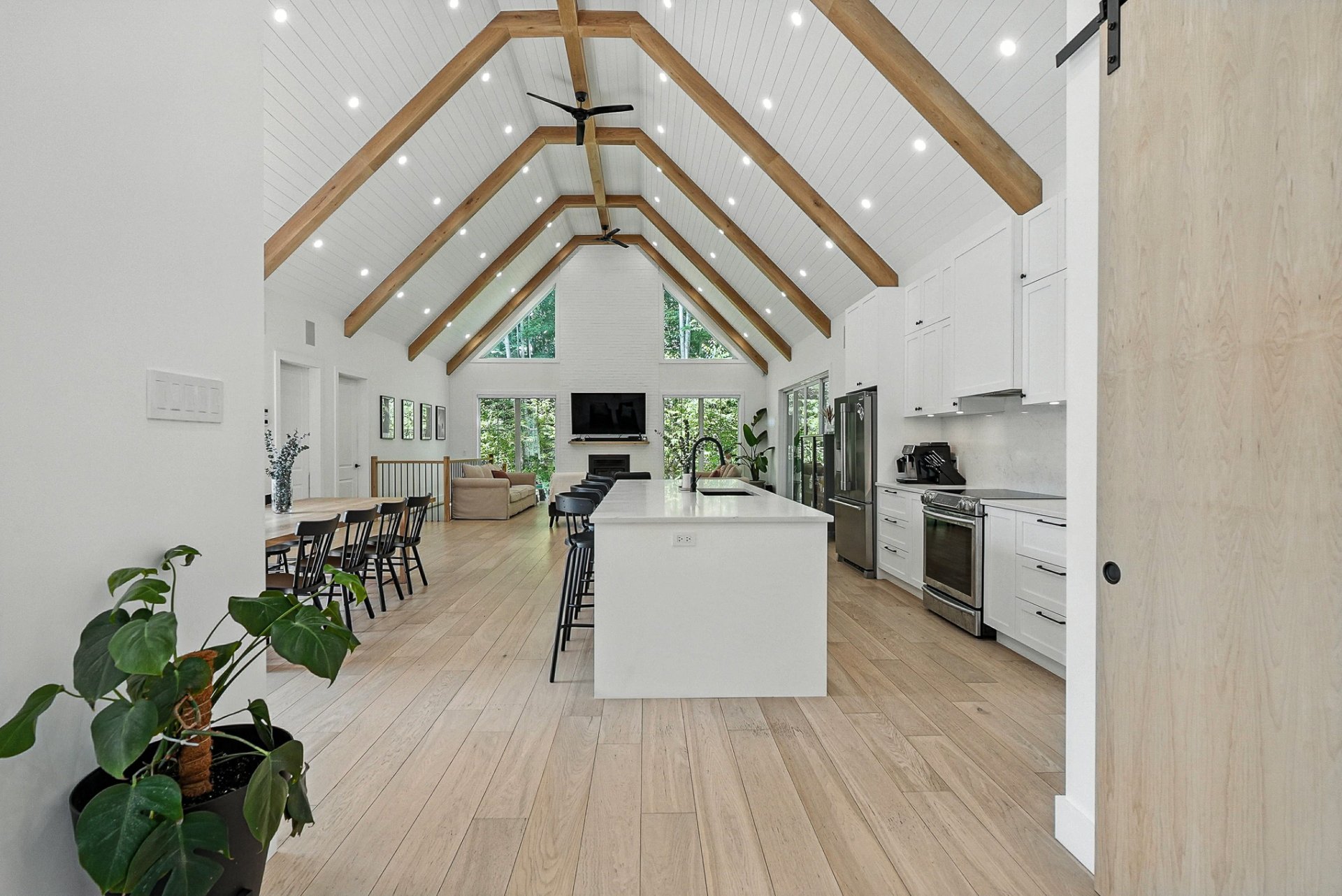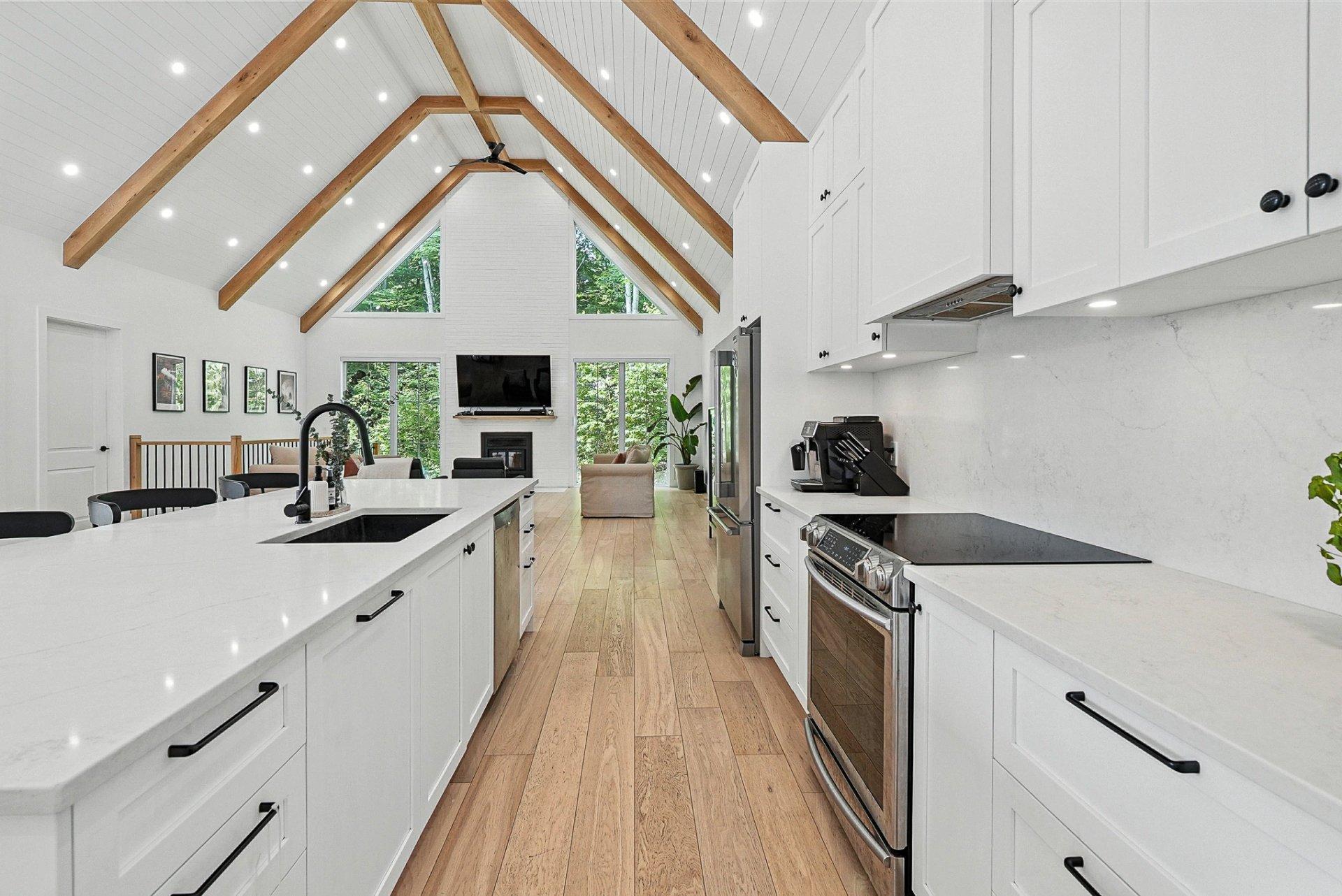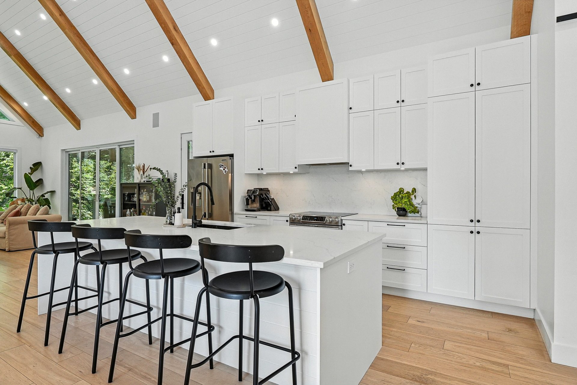 -La cuisine, équipée d'un espace cellier indépendant, d'un grand garde-manger (walk-in) et d'un grand îlot central offrant un espace fonctionnel et convivial pour la préparation des repas.