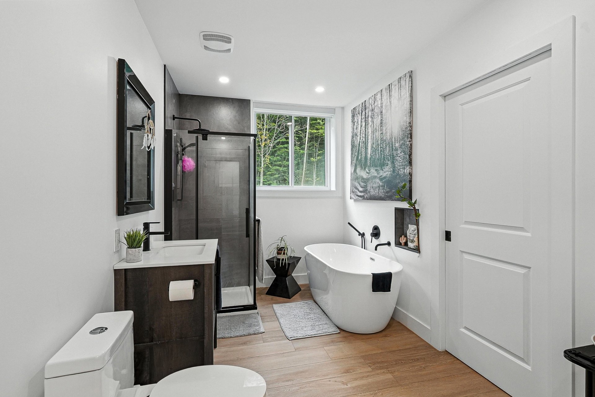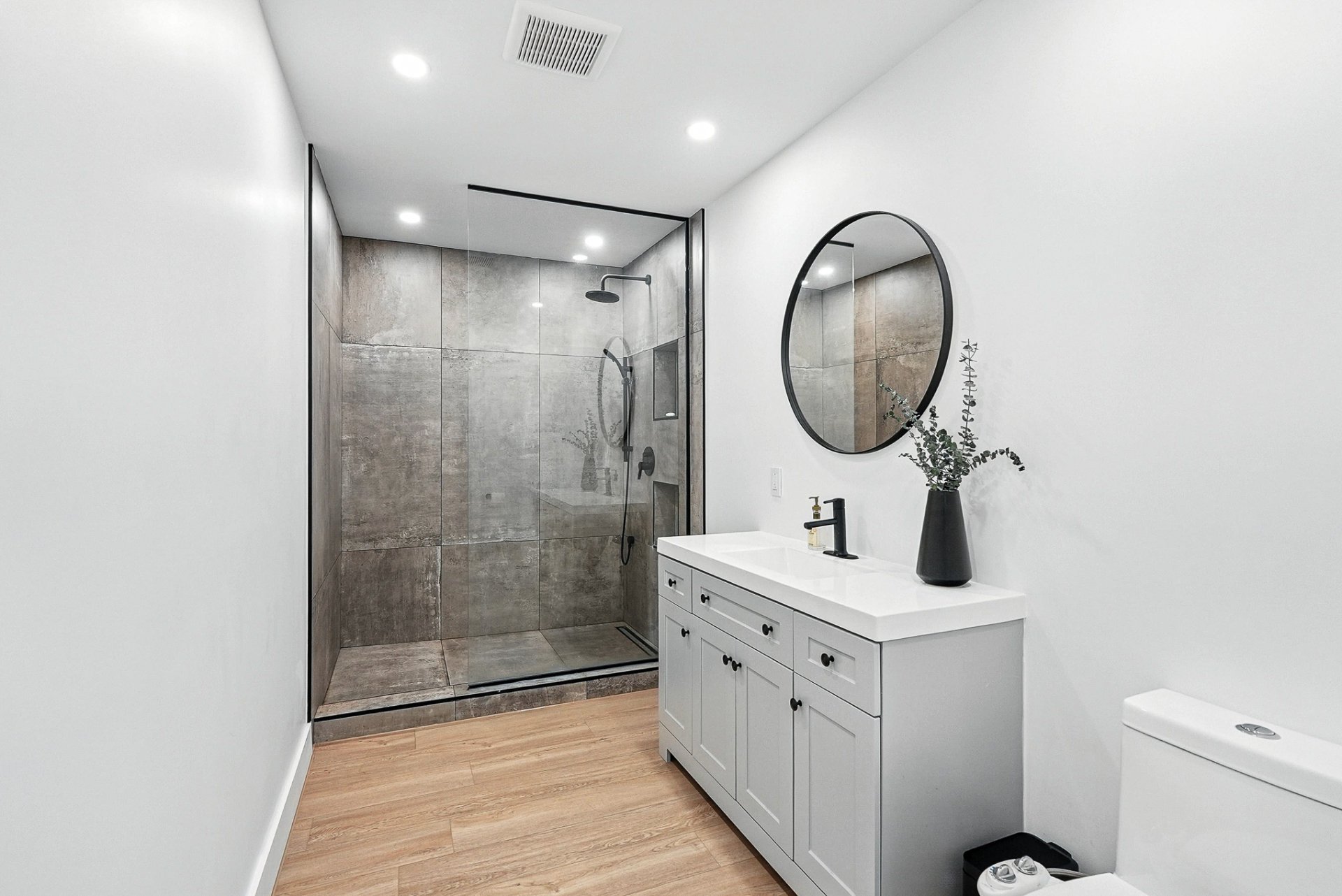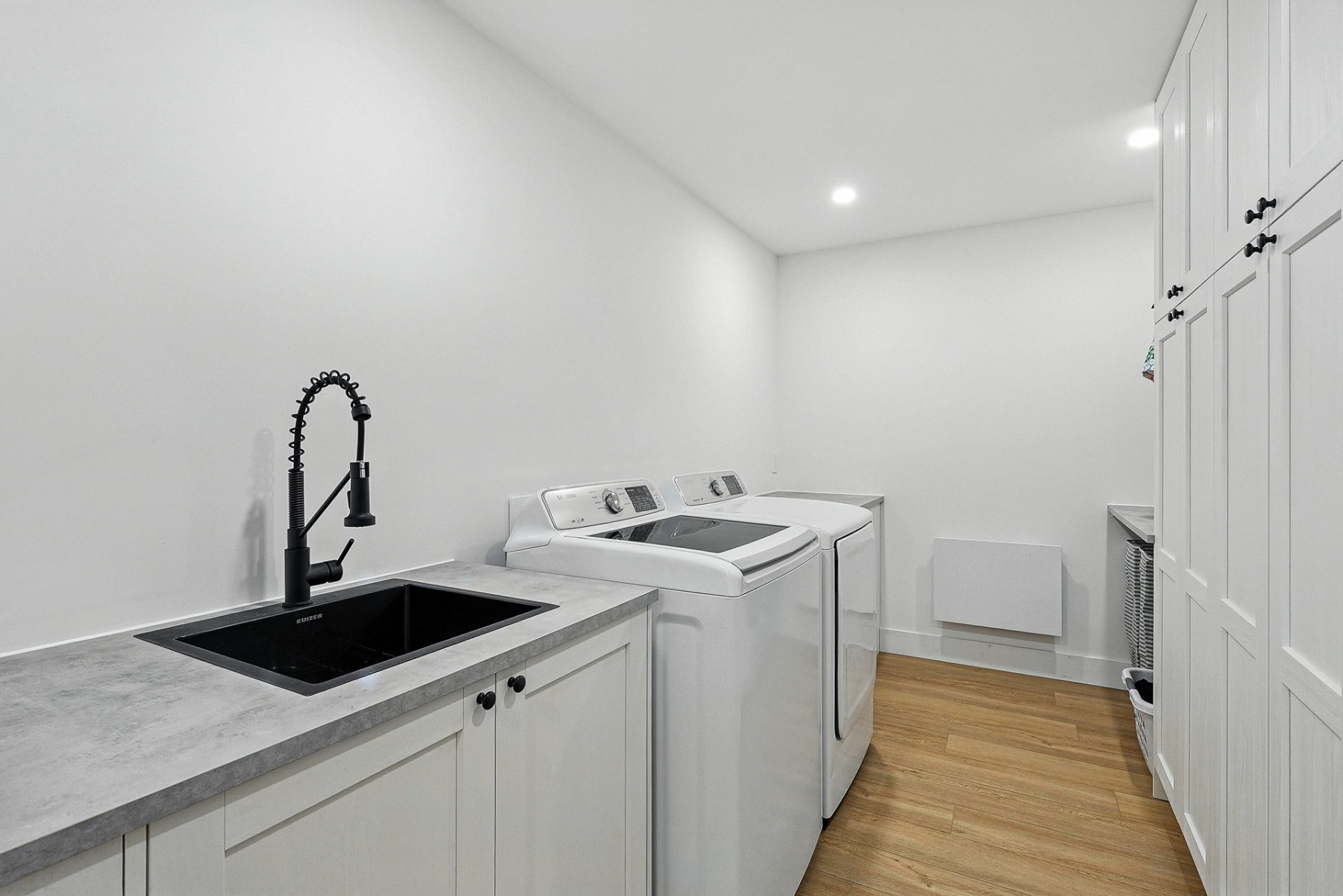 -La salle de lavage, la salle familiale, une chambre et une salle de bains pratique complètent le sous-sol de la partie principale.