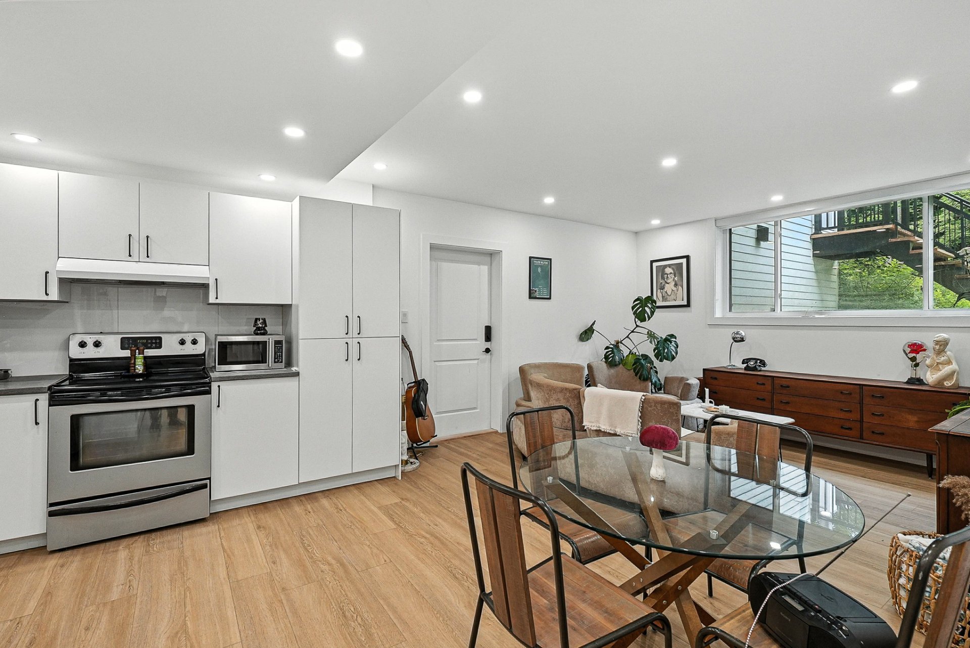 Le logement lumineux se trouvant au sous-sol offre entre autres une chambre à coucher spacieuse, une cuisine avec îlot et une salle de bain pouvant générer un revenu additionnel.