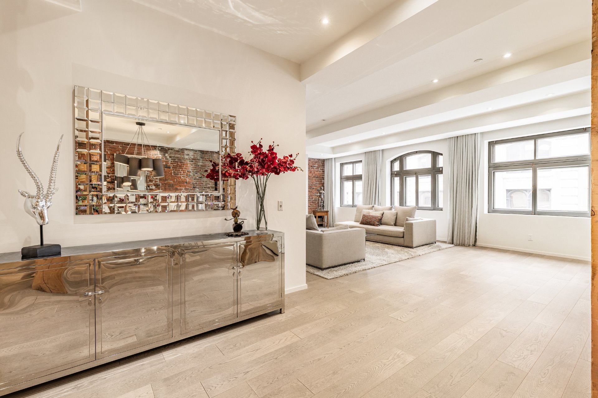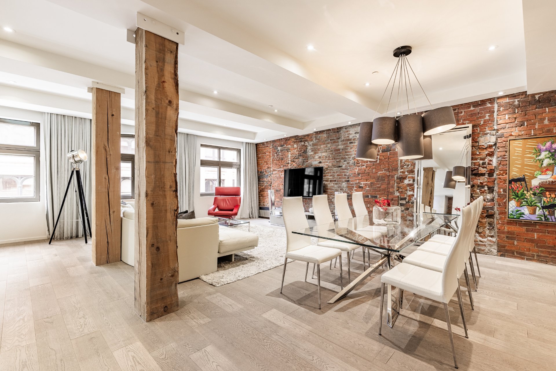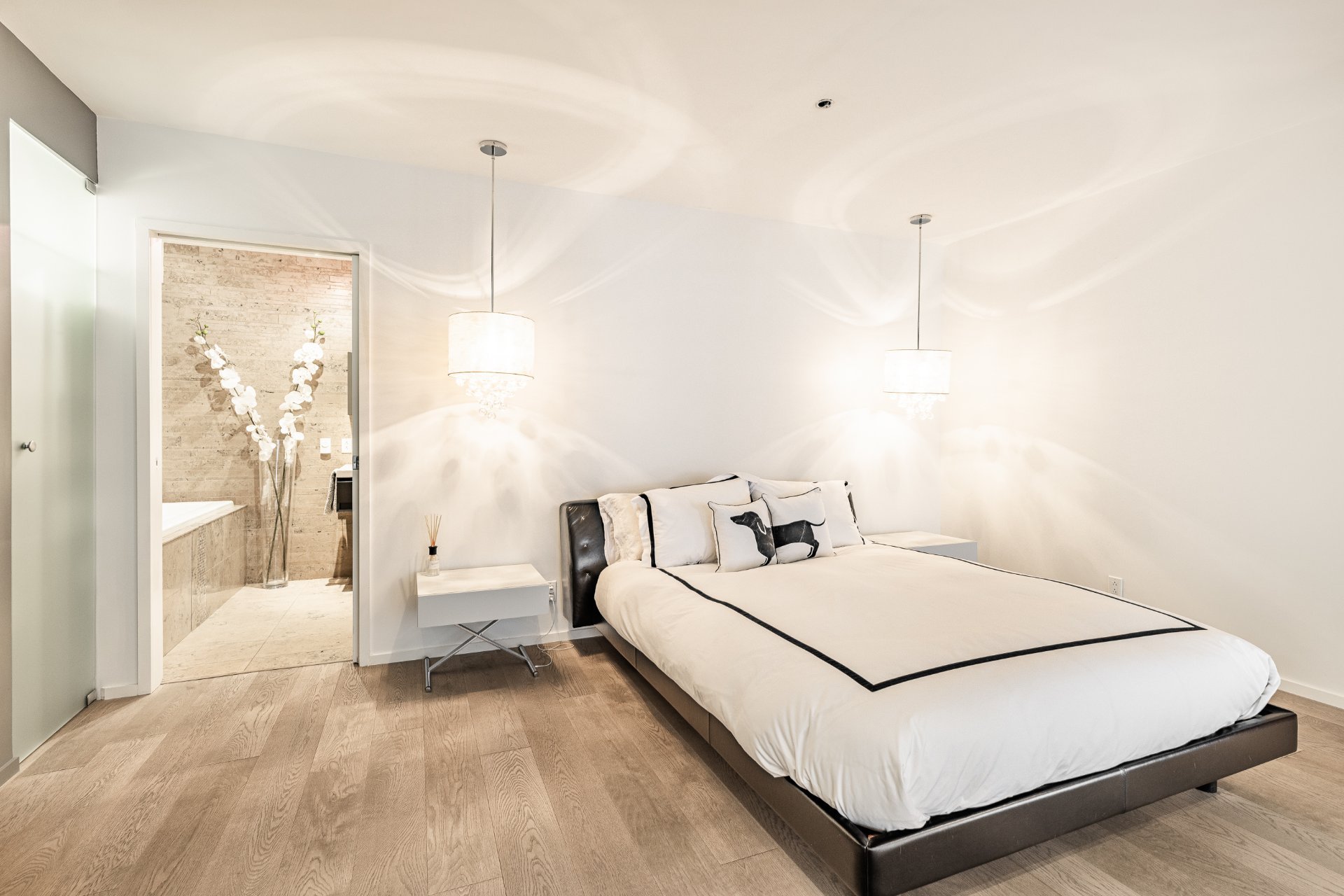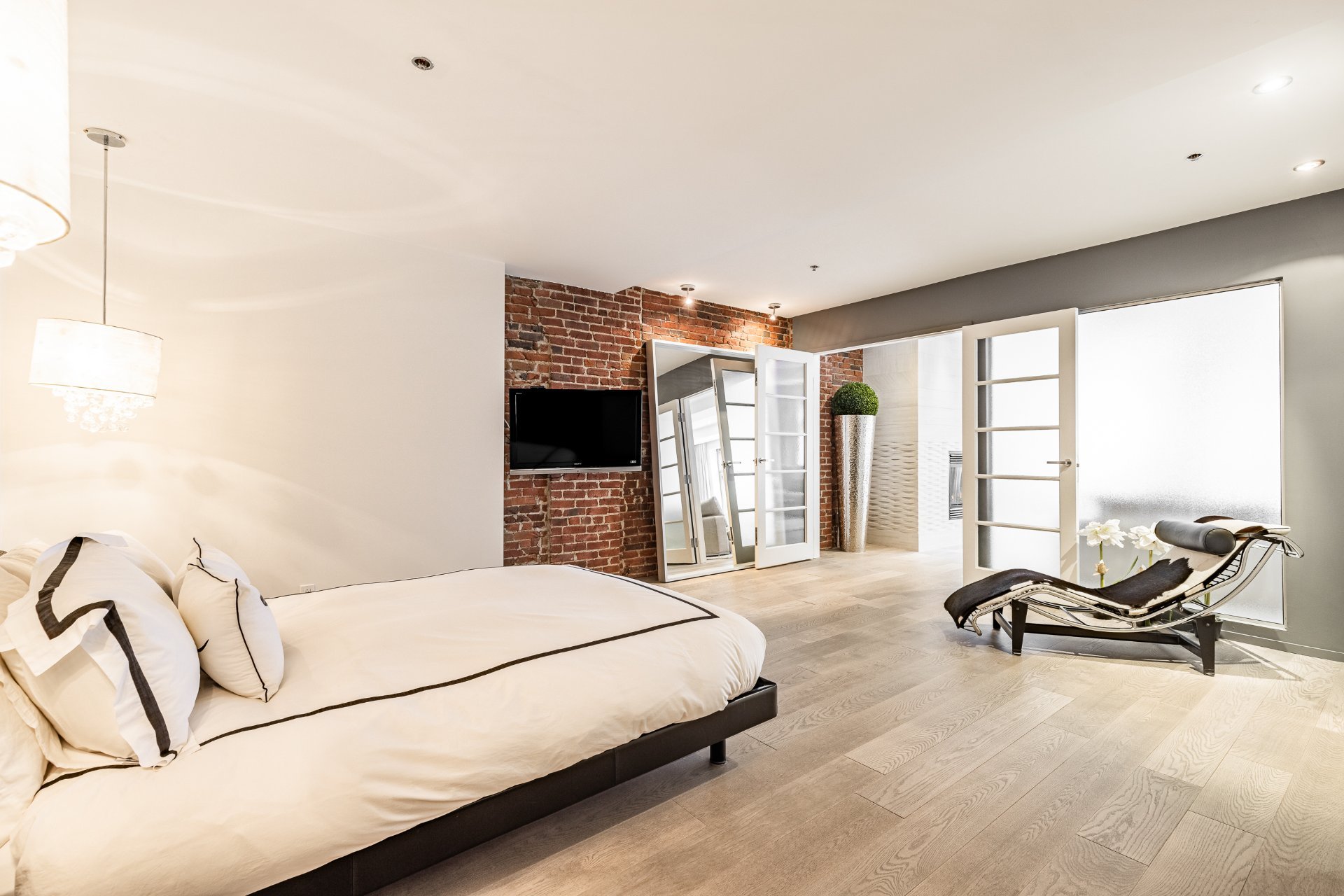 Cette unité d'exception à la Cité Nouveau Monde offre un espace de vie ouvert et spectaculaire, rehaussé par une fenestration hors du commun sur la rue St-Paul.