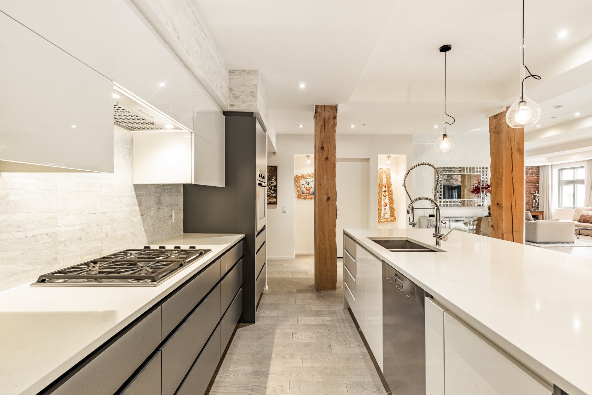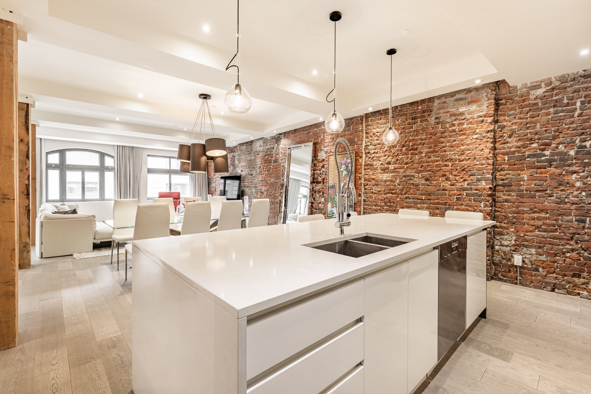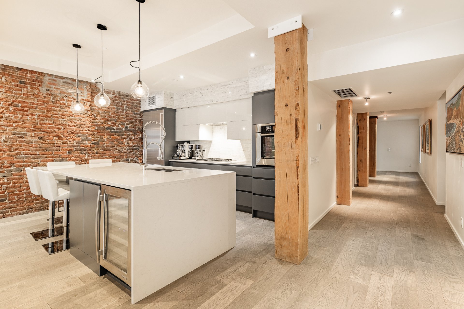 Condo d'exception de plus de 2 600 pi² au coeur du Vieux Montréal, dans la prestigieuse Cité Nouveau Monde. Aire de vie ouverte spectaculaire avec fenestration sur la rue St-Paul, murs de briques, colonnes de bois originales, planchers de bois francs et plafonds rehaussés. Cuisine gastronomique sur mesure avec cuisson au gaz et vaste îlot en quartz. 2 chambres + grand bureau (ou 3e chambre). Suite principale avec SDB attenante, plancher chauffant, douche et baignoire séparées. 2 garages, rangement, terrasse commune sur le toit, accès intérieur au Spa Scandinave. Emplacement AAA près du fleuve, restos, boutiques, métro.