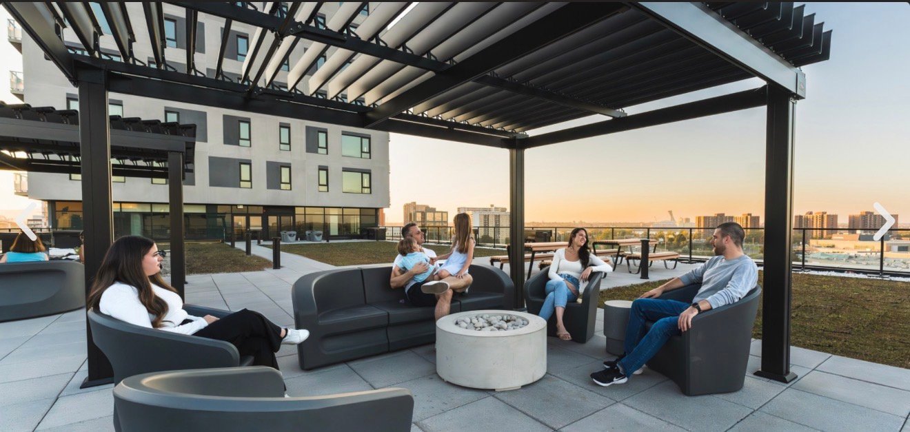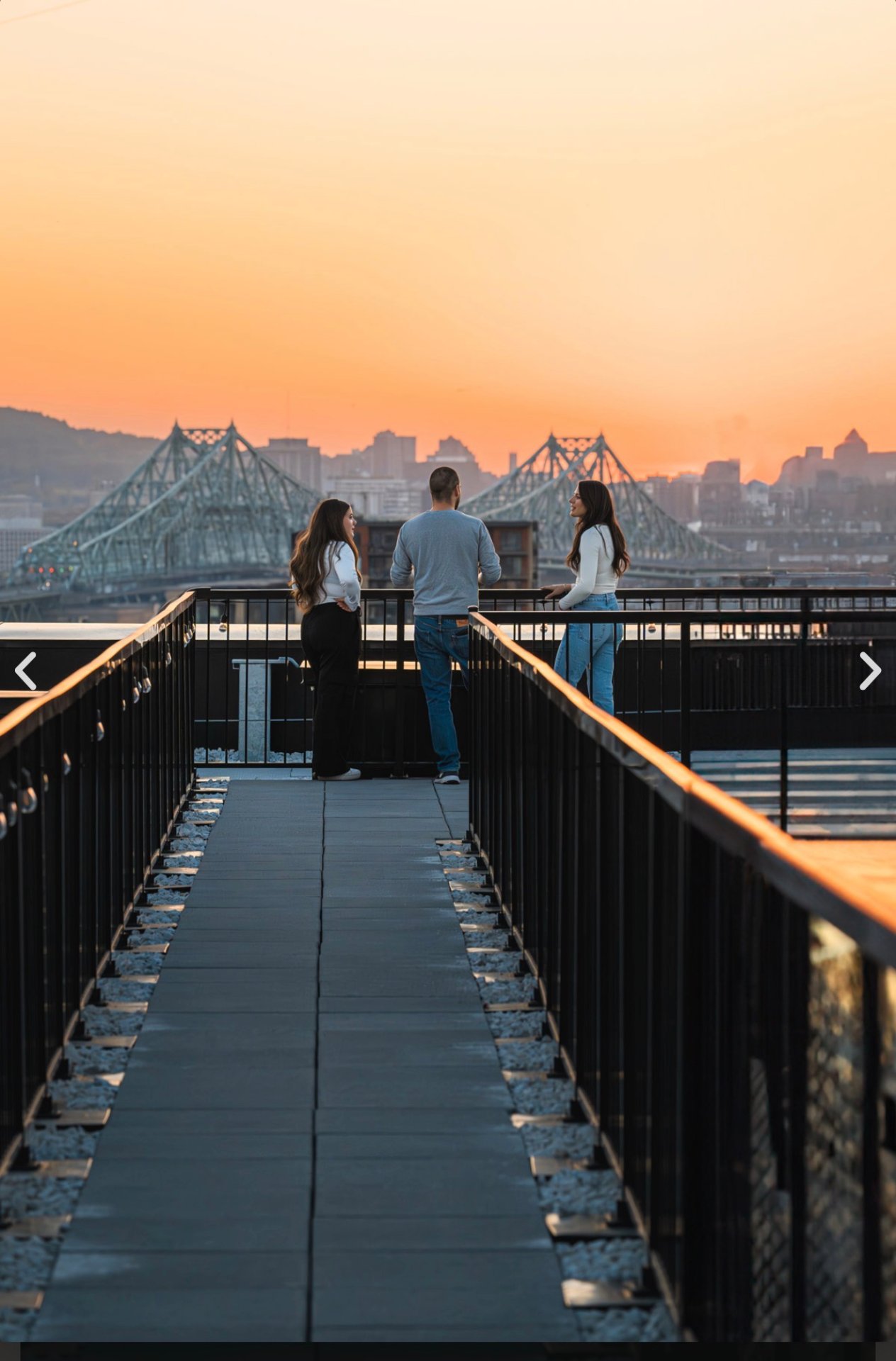 Terrasse sur le toit avec vue panoramique sur Montréal et le fleuve