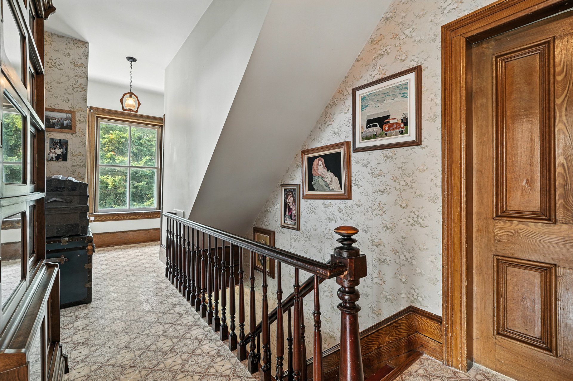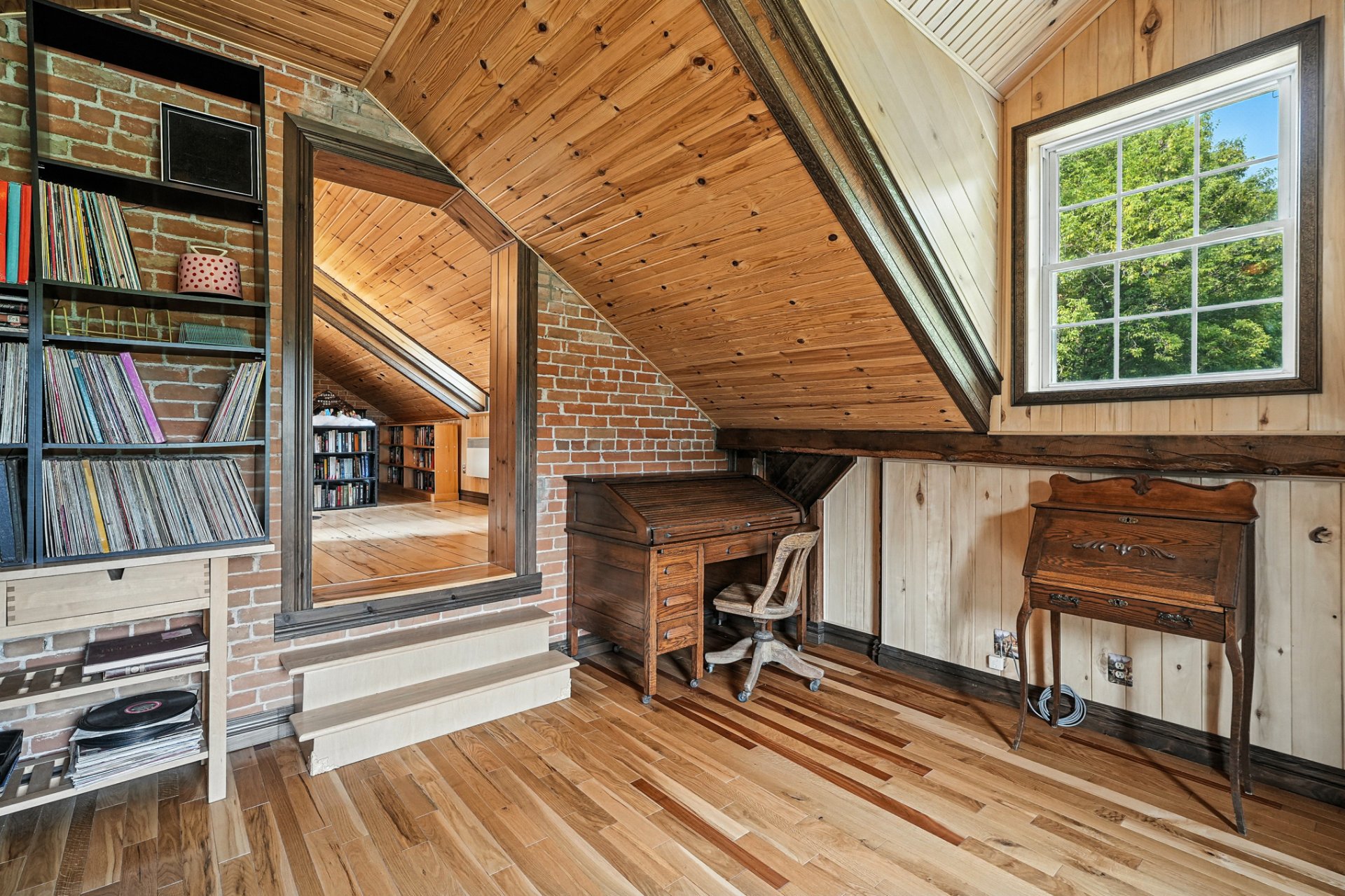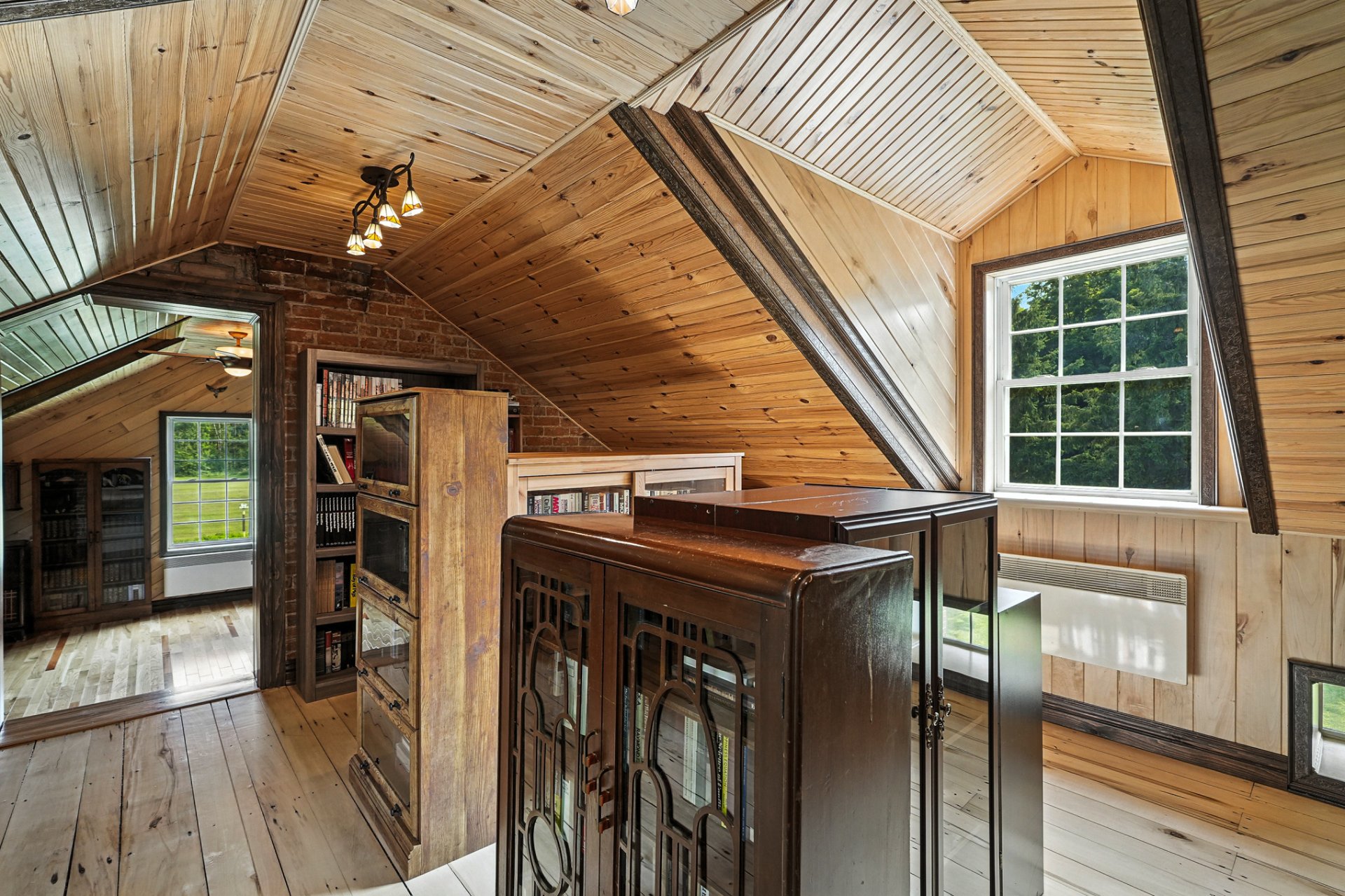 À l'intérieur, la maison affiche un caractère d'époque avec ses parquets, ses murs en briques apparentes, ses hauts plafonds et ses détails architecturaux d'antan. Les vastes espaces de vie comprennent plusieurs salons avec foyer, une salle à manger formelle, une cuisine lumineuse et des chambres accueillantes baignées de lumière naturelle. Une bibliothèque et un bureau à l'étage supérieur offrent des espaces de travail ou de lecture sereins dans un grenier aménagé, tandis que le vaste terrain invite à profiter sans fin des joies du plein air.