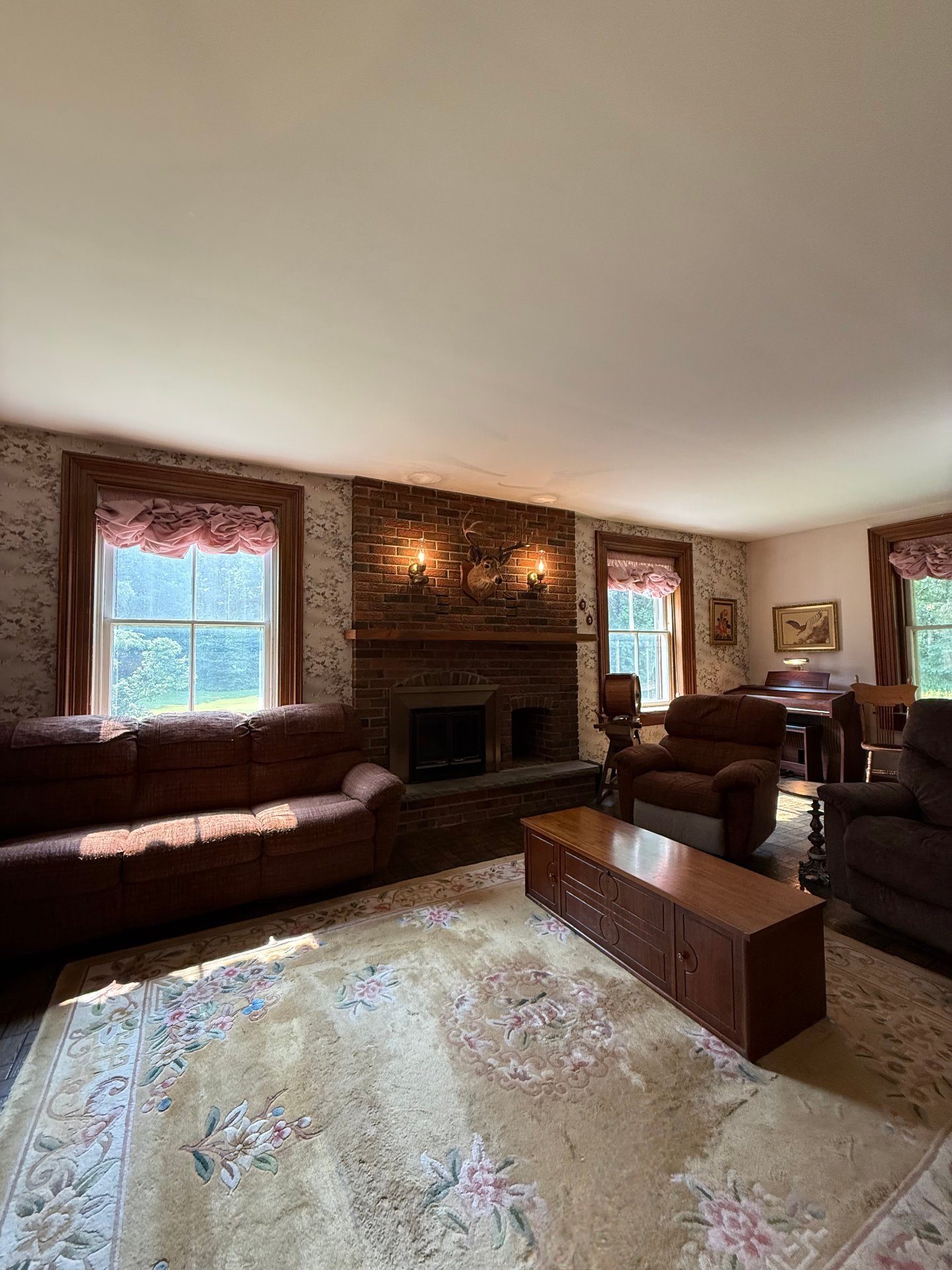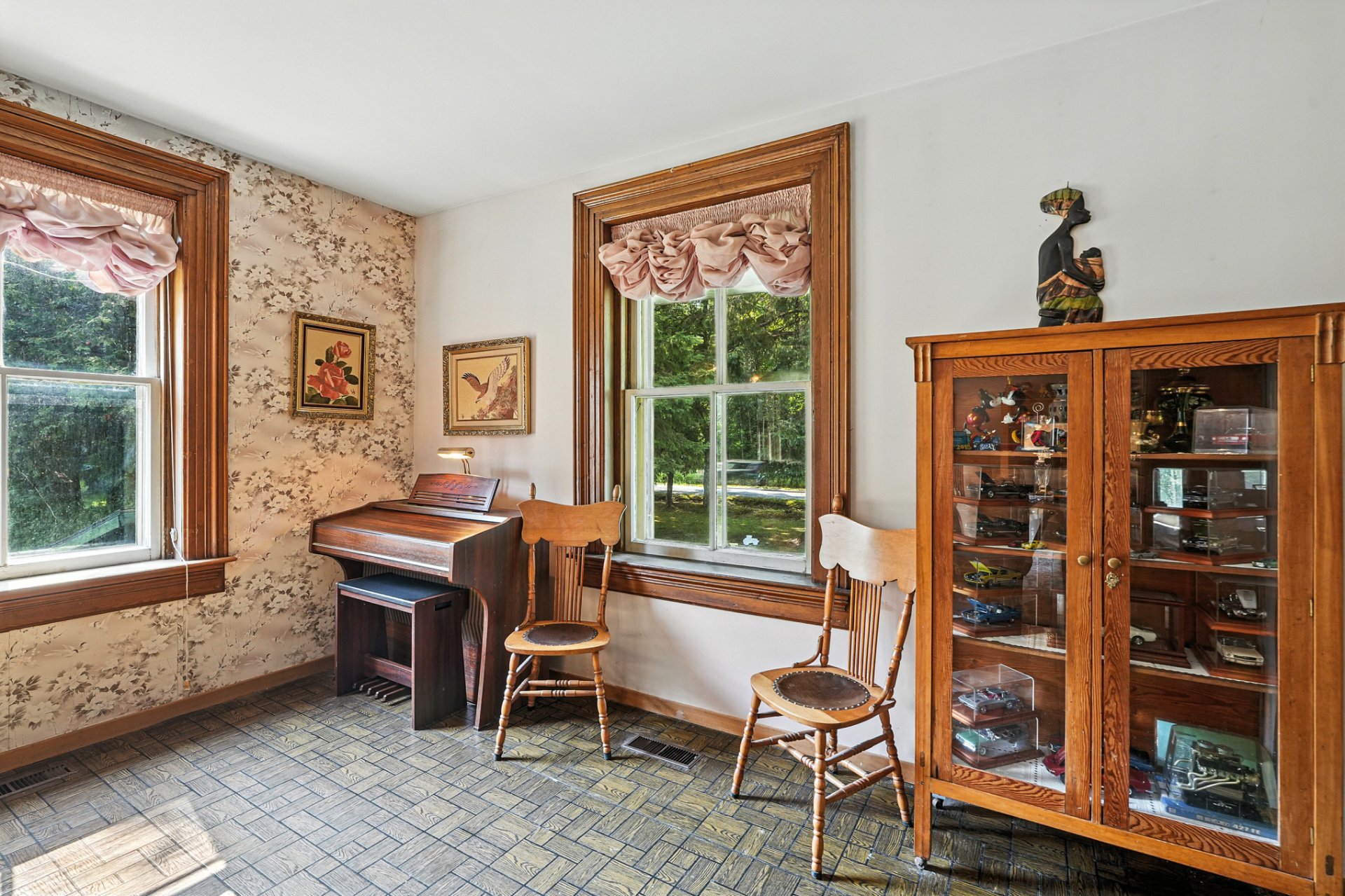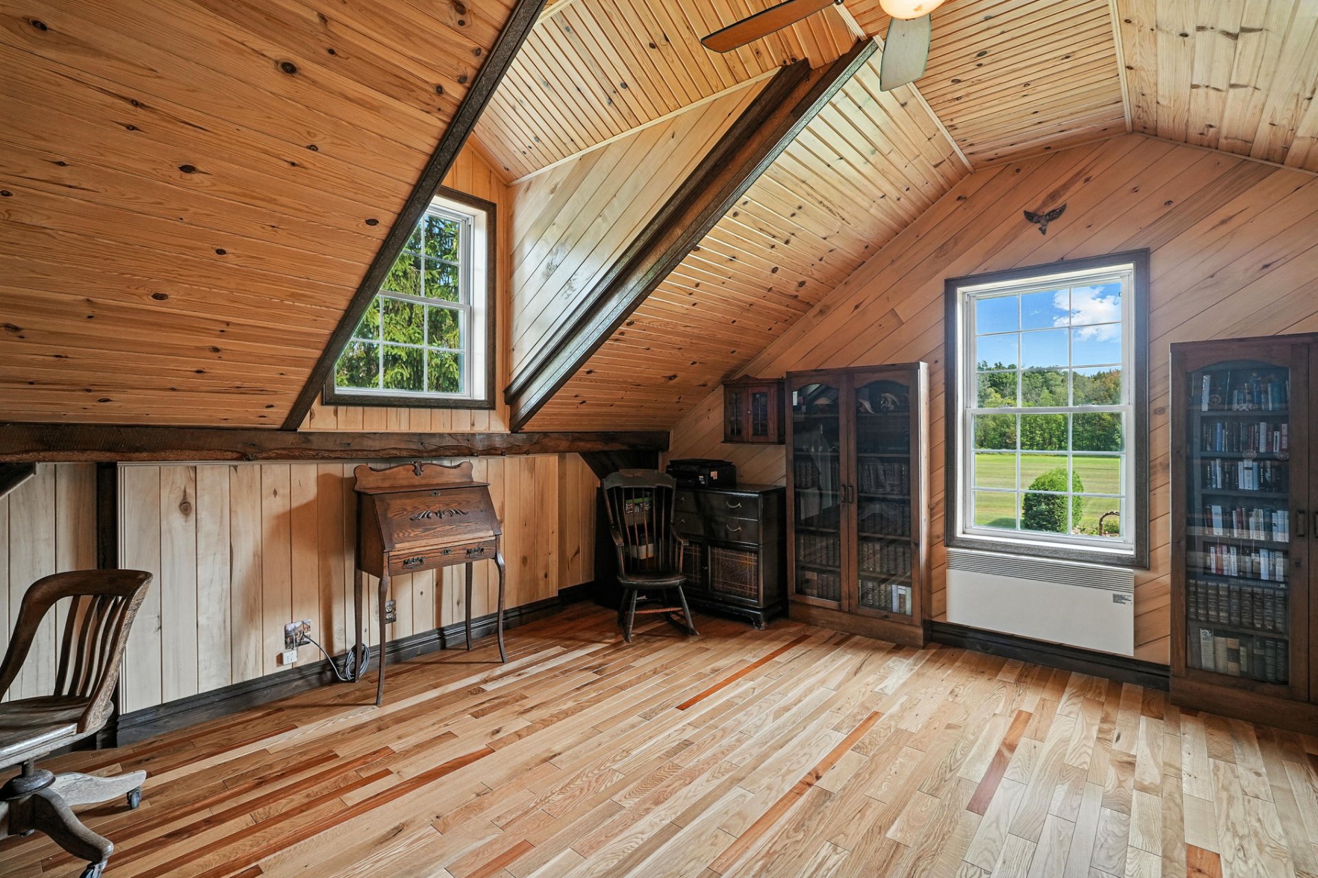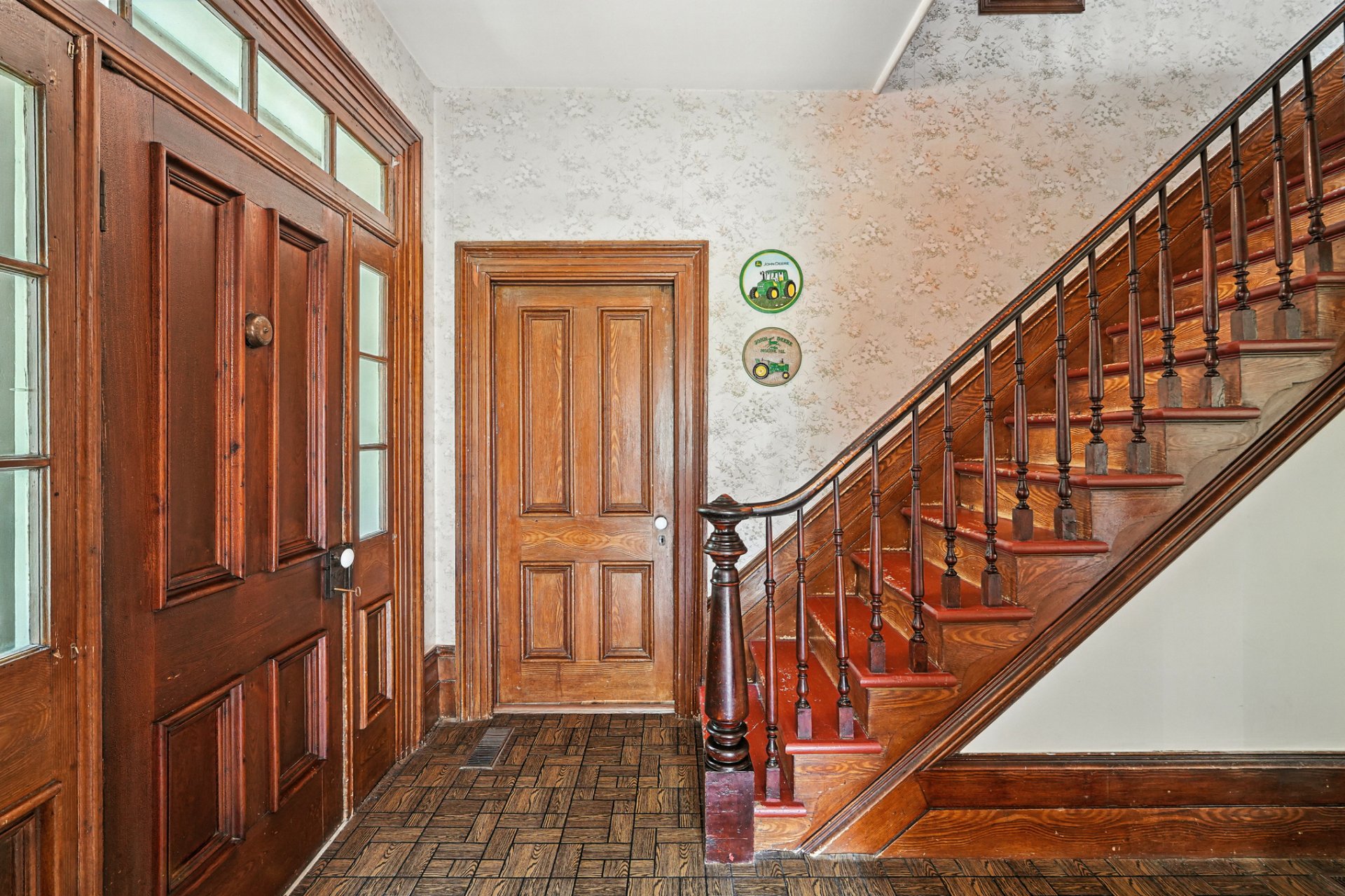 À l'intérieur, la maison affiche un caractère d'époque avec ses parquets, ses murs en briques apparentes, ses hauts plafonds et ses détails architecturaux d'antan. Les vastes espaces de vie comprennent plusieurs salons avec foyer, une salle à manger formelle, une cuisine lumineuse et des chambres accueillantes baignées de lumière naturelle. Une bibliothèque et un bureau à l'étage supérieur offrent des espaces de travail ou de lecture sereins dans un grenier aménagé, tandis que le vaste terrain invite à profiter sans fin des joies du plein air.