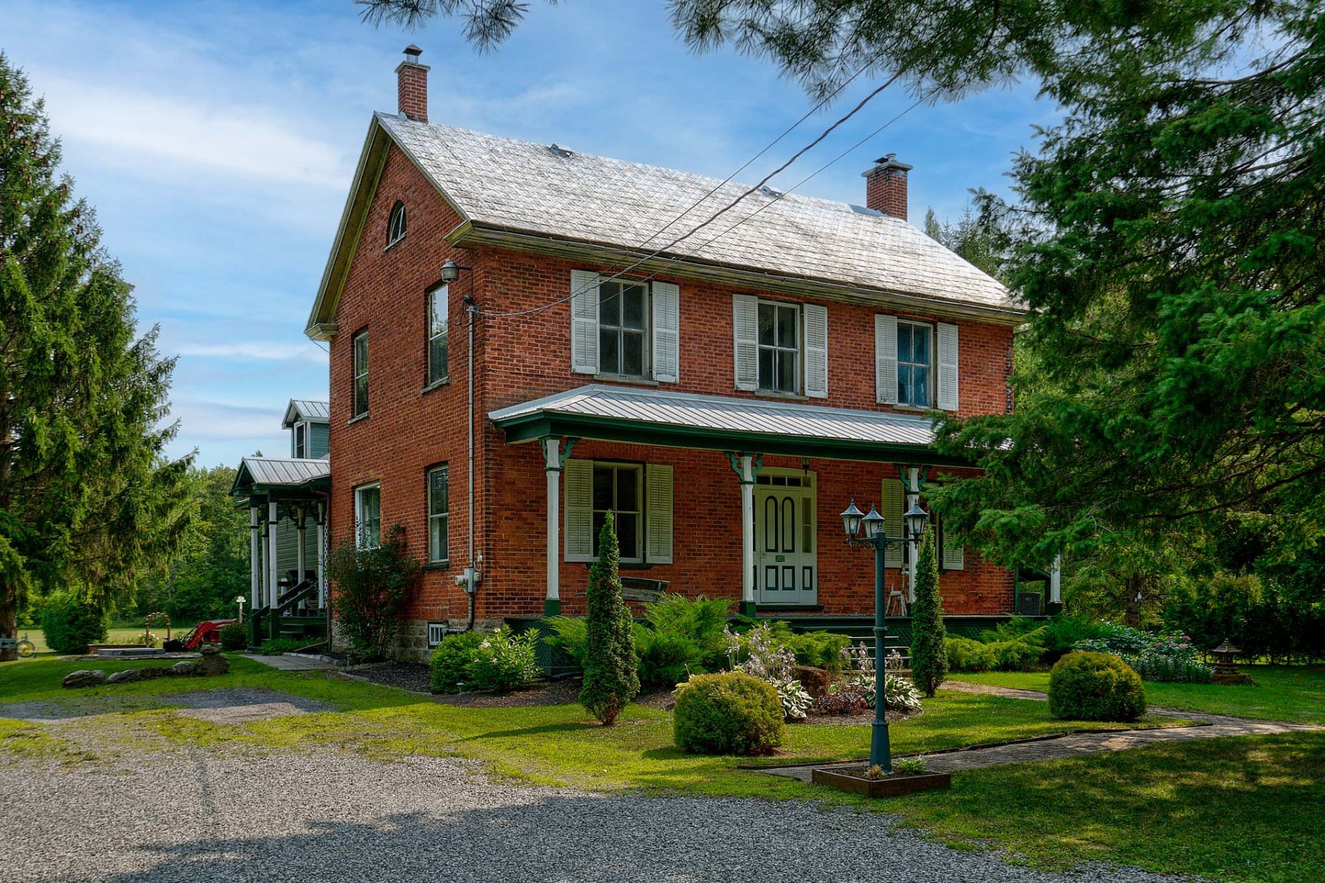 Cette résidence en briques centenaire est une propriété à caractère patrimonial en cours de révision en phase 2 par la MRC, qui offre une combinaison rare d'histoire et de cadre enchanteur avec ses arbres matures et ses saules pleureurs. Située sur 99,45 acres de campagne, la propriété comprend des champs, des forêts, une érablière, des jardins soignés, des granges centenaires et une piscine creusée. Une retraite idyllique pour ceux qui recherchent l'intimité et l'espace dans une nature luxuriante.