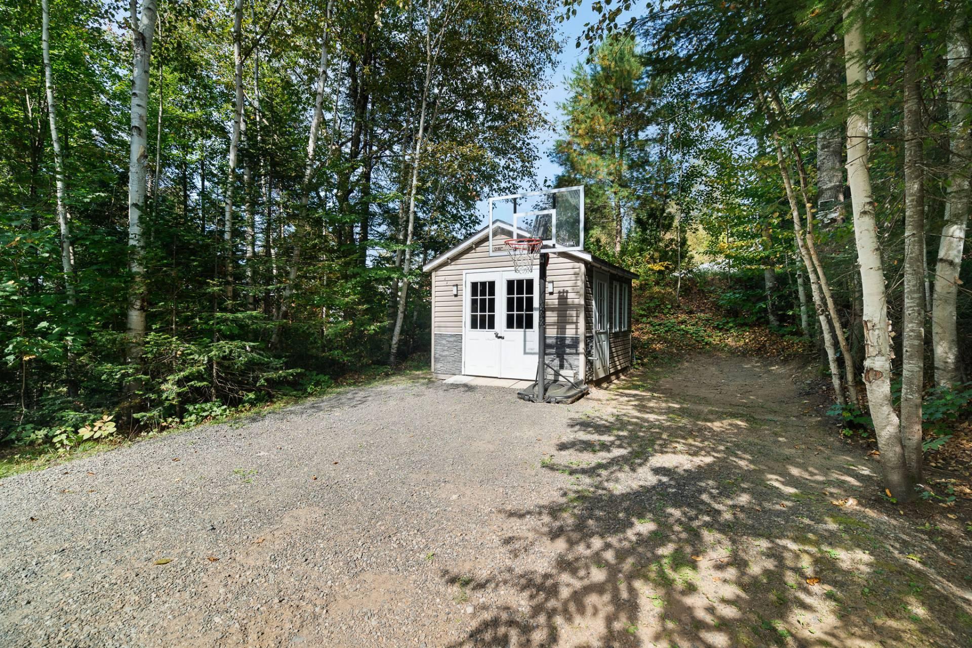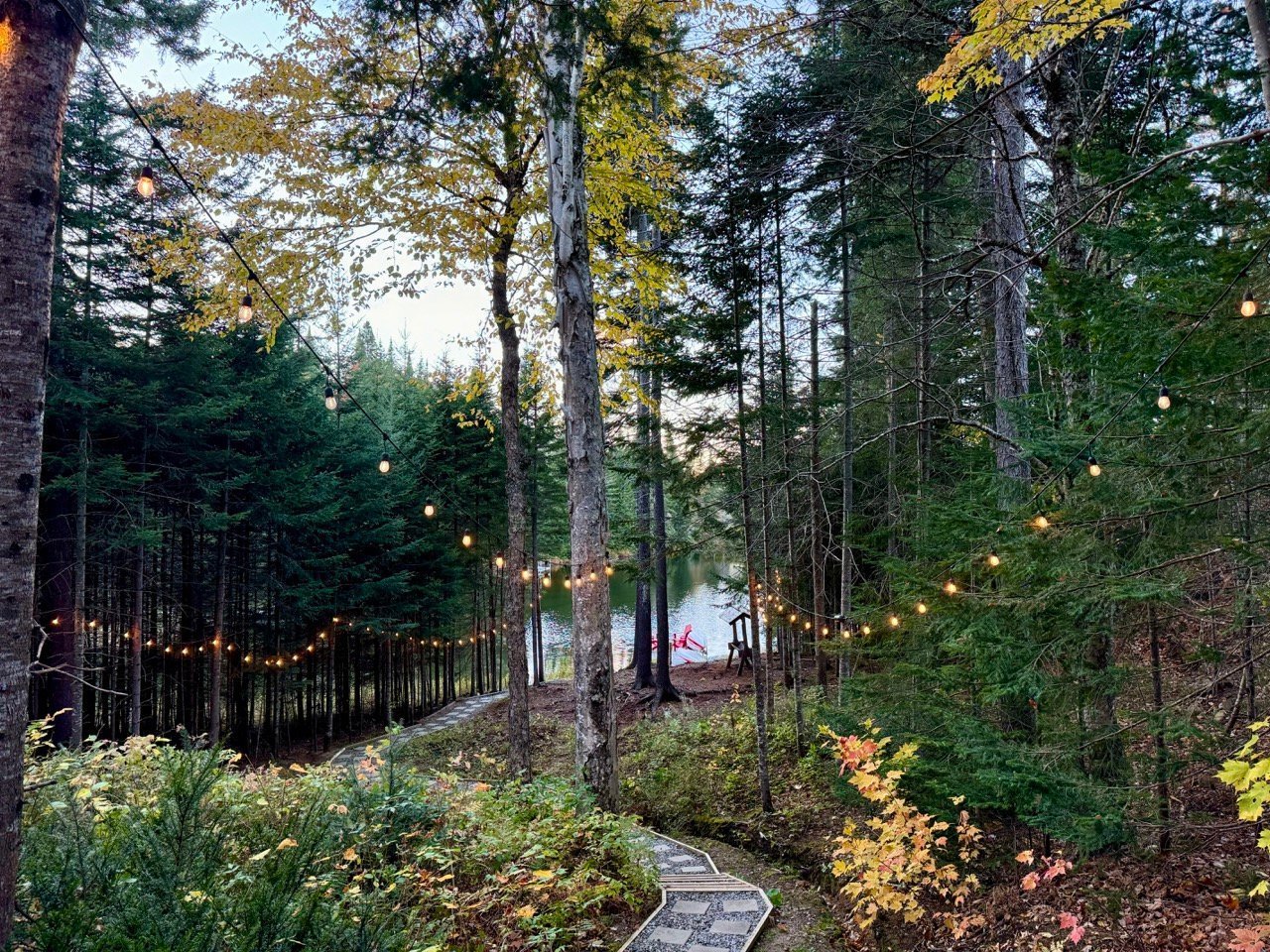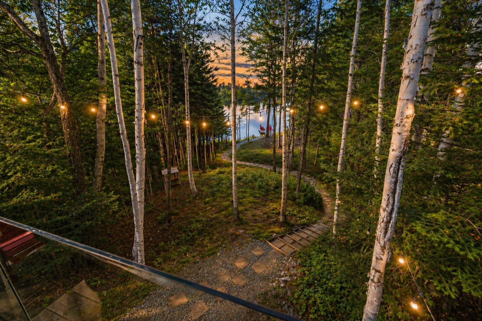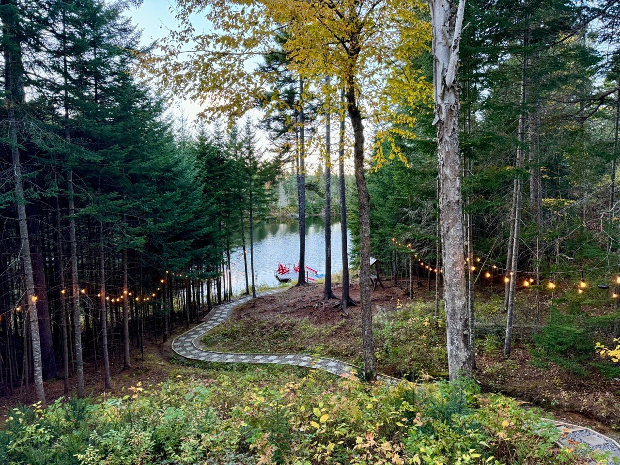 Le grand terrain intime dispose d'un chemin éclairé menant au lac et au quai Lafantesie. Bien que le lac soit non navigable et tranquille, vous bénéficierez d'un accès notarié pour la descente d'embarcations au Lac Ouareau, situé à seulement quelques minutes.
