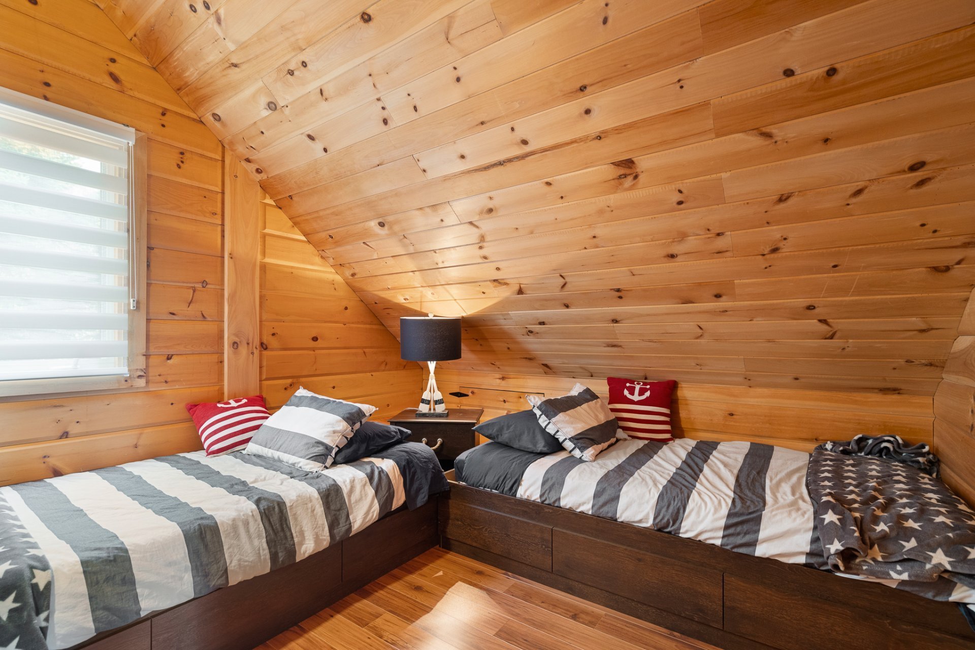 Magnifique chalet TimberBlock situé au bord du Lac Leguerrier, adjacent au Lac Ouareau ! Profitez d'une fenestration abondante, d'un plafond cathédrale de 20 pieds et d'un foyer au bois dans un espace à aire ouverte. La propriété comprend 4 chambres (2 à l'étage, 1 au rez-de-chaussée et 1 au sous-sol), 3 salles de bains, un garage et un spa. ** Le meilleur des deux mondes** Située au bord d'un lac tranquille et non navigable, à quelques minutes du Lac Ouareau où votre embarcation vous attend. Accès notarié pour la descente d'embarcations au Lac Ouareau. De nombreuses améliorations depuis 2020, voir addenda...