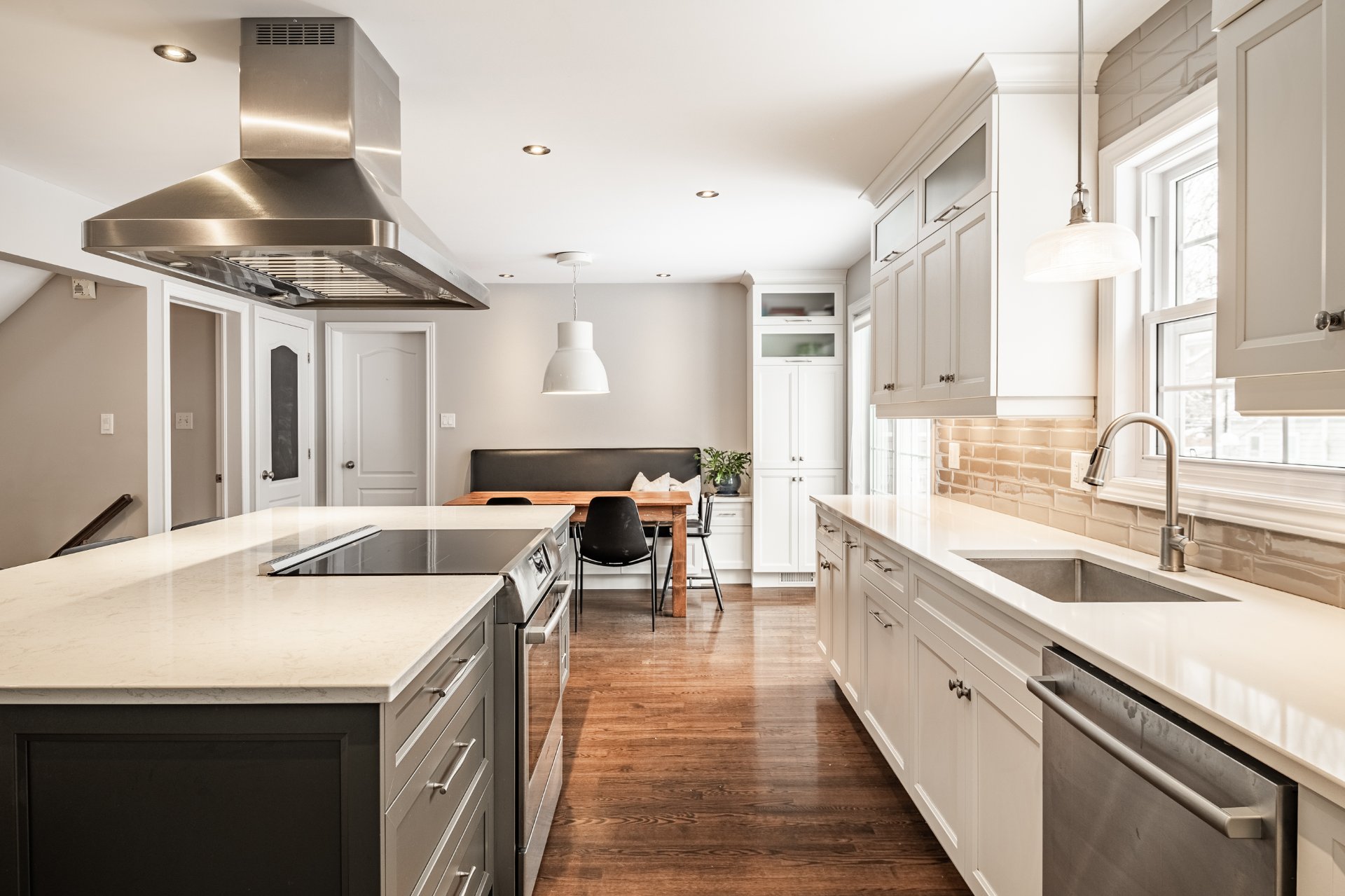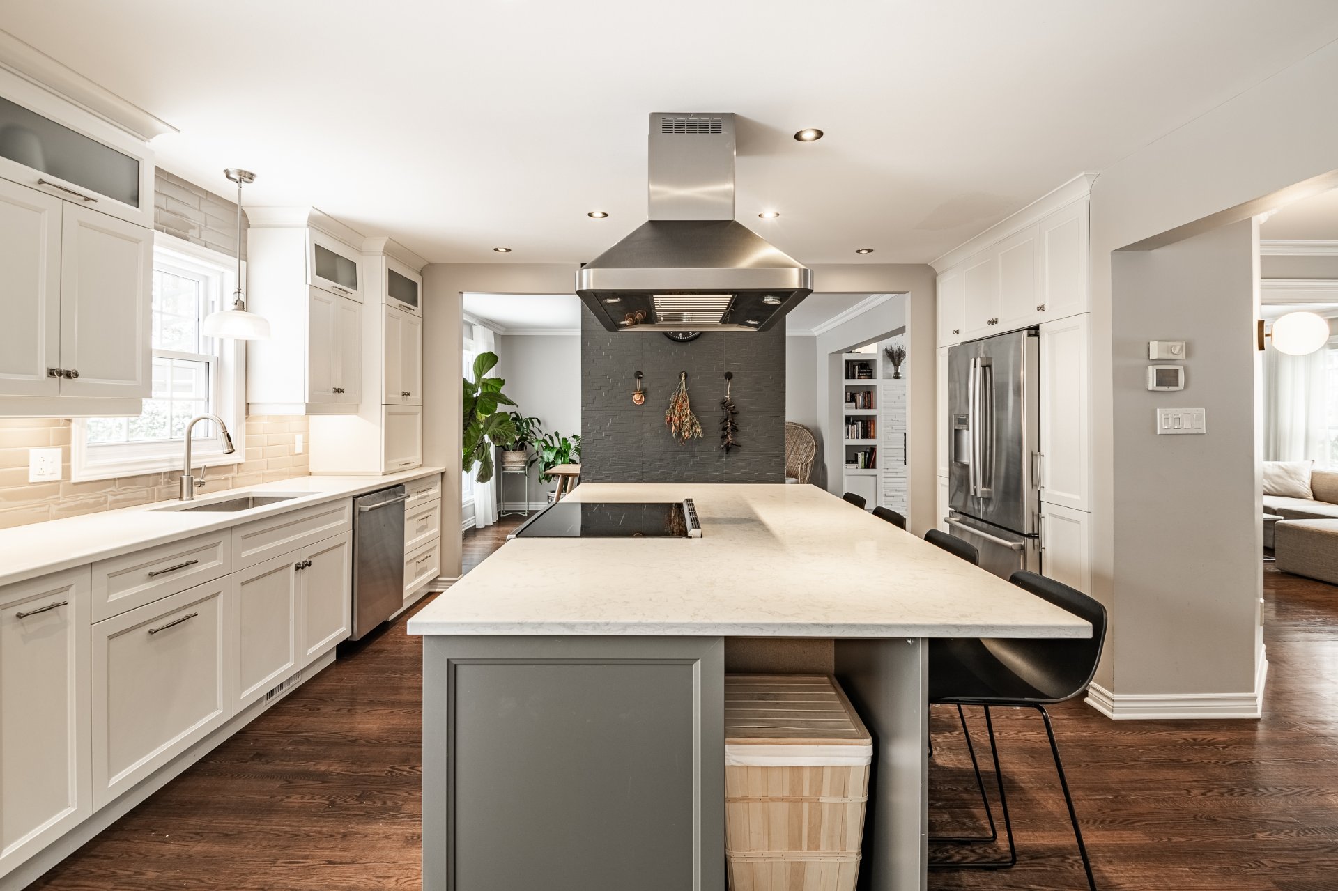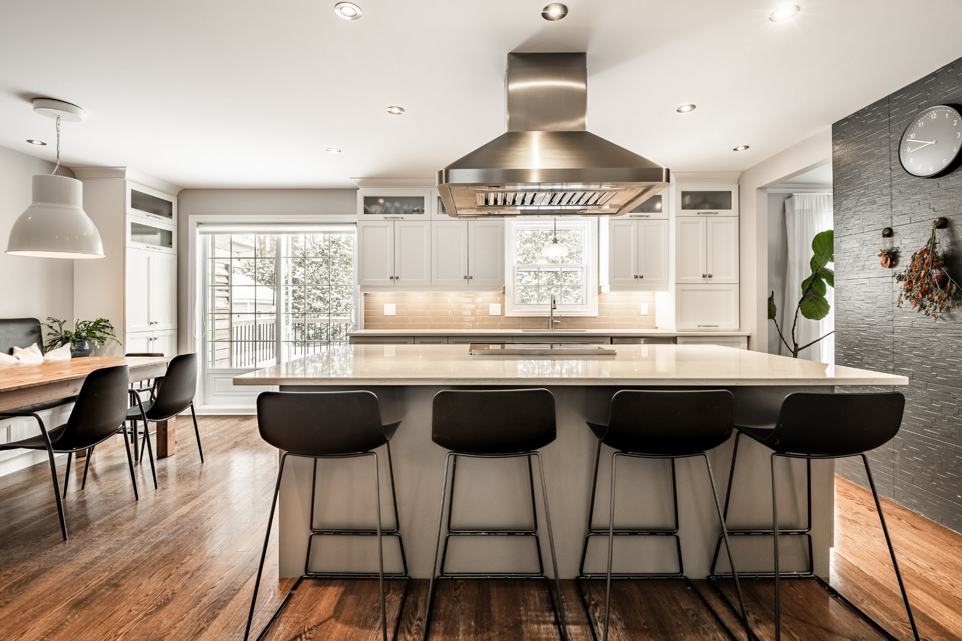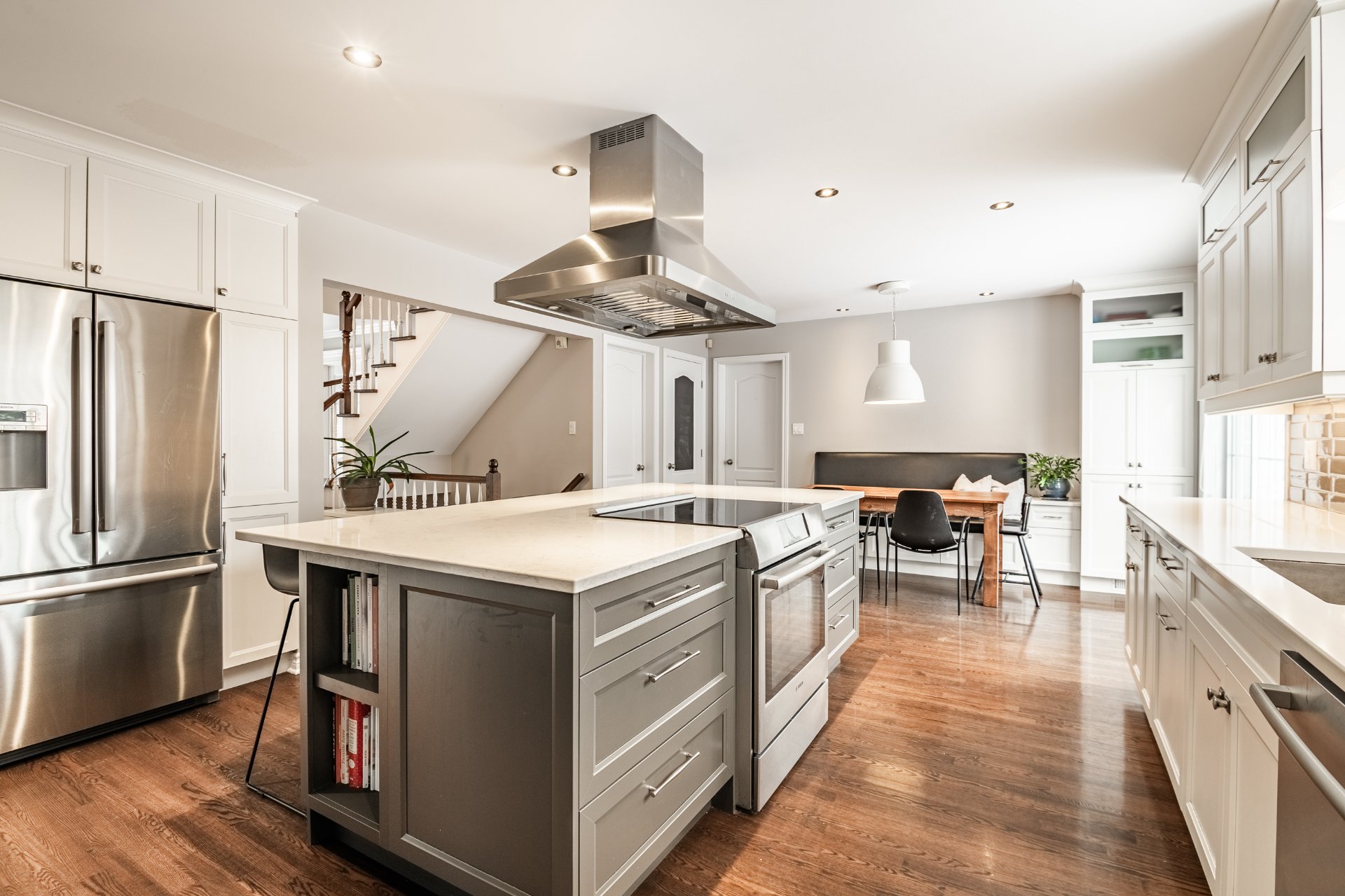 * Spacieuse cuisine au style moderne avec immense îlot central;